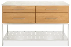 - Construction: direction of wood grain follows table depth