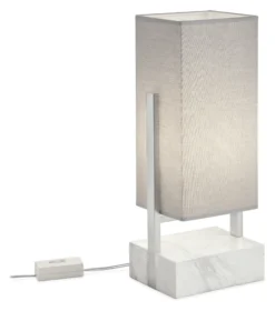The Adwell table lamp unites the timeless sophistication of marble with a modern silhouette. Brushed nickel arms elevate the cotton shade, casting light down upon the marble base and up to the ceiling.