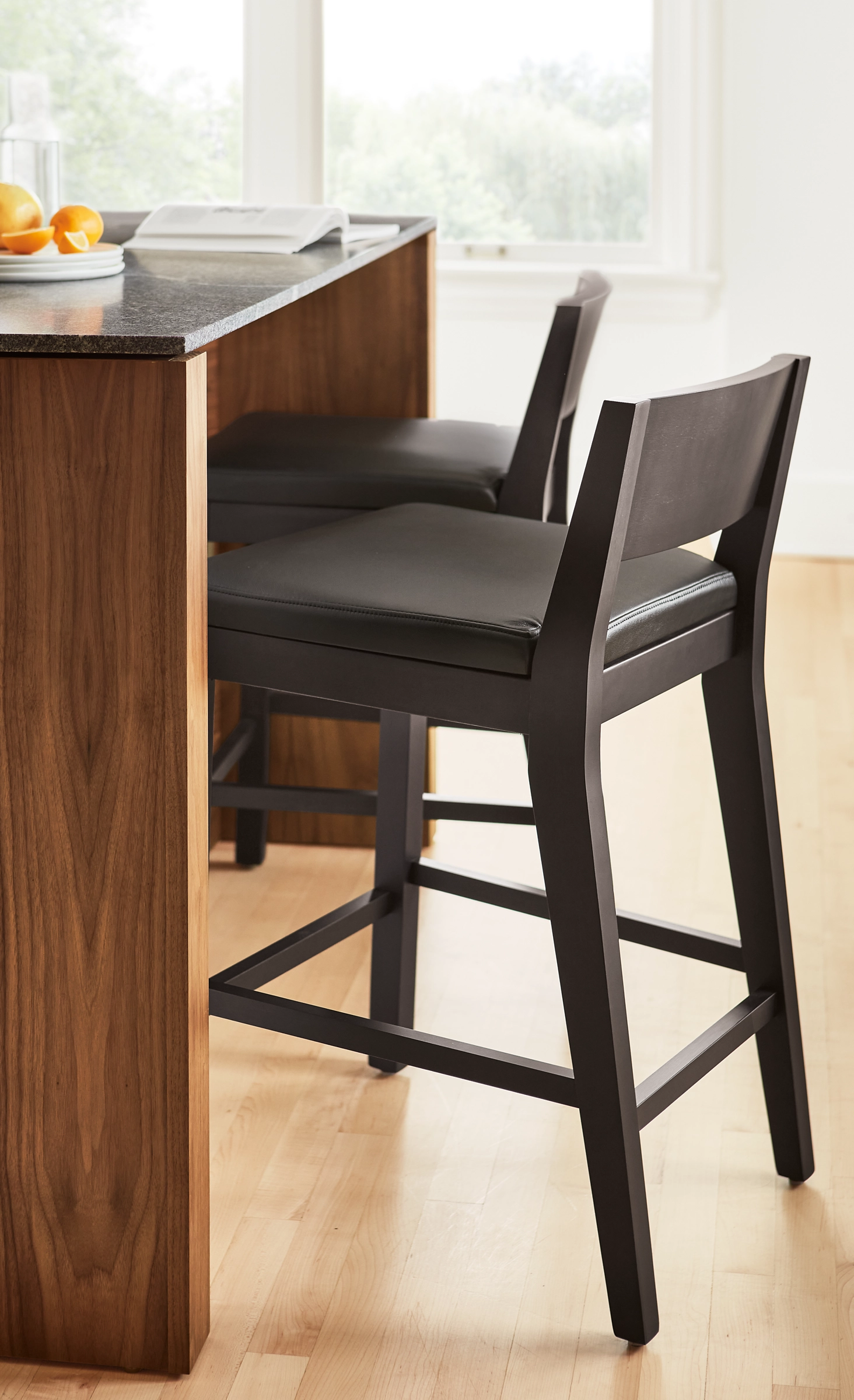 A Room & Board classic, the Afton stool features a clean, modern look due to its crisp lines and the precision craftsmanship of Vermont woodworkers. A versatile style, it’s designed for comfort with upholstered seats.