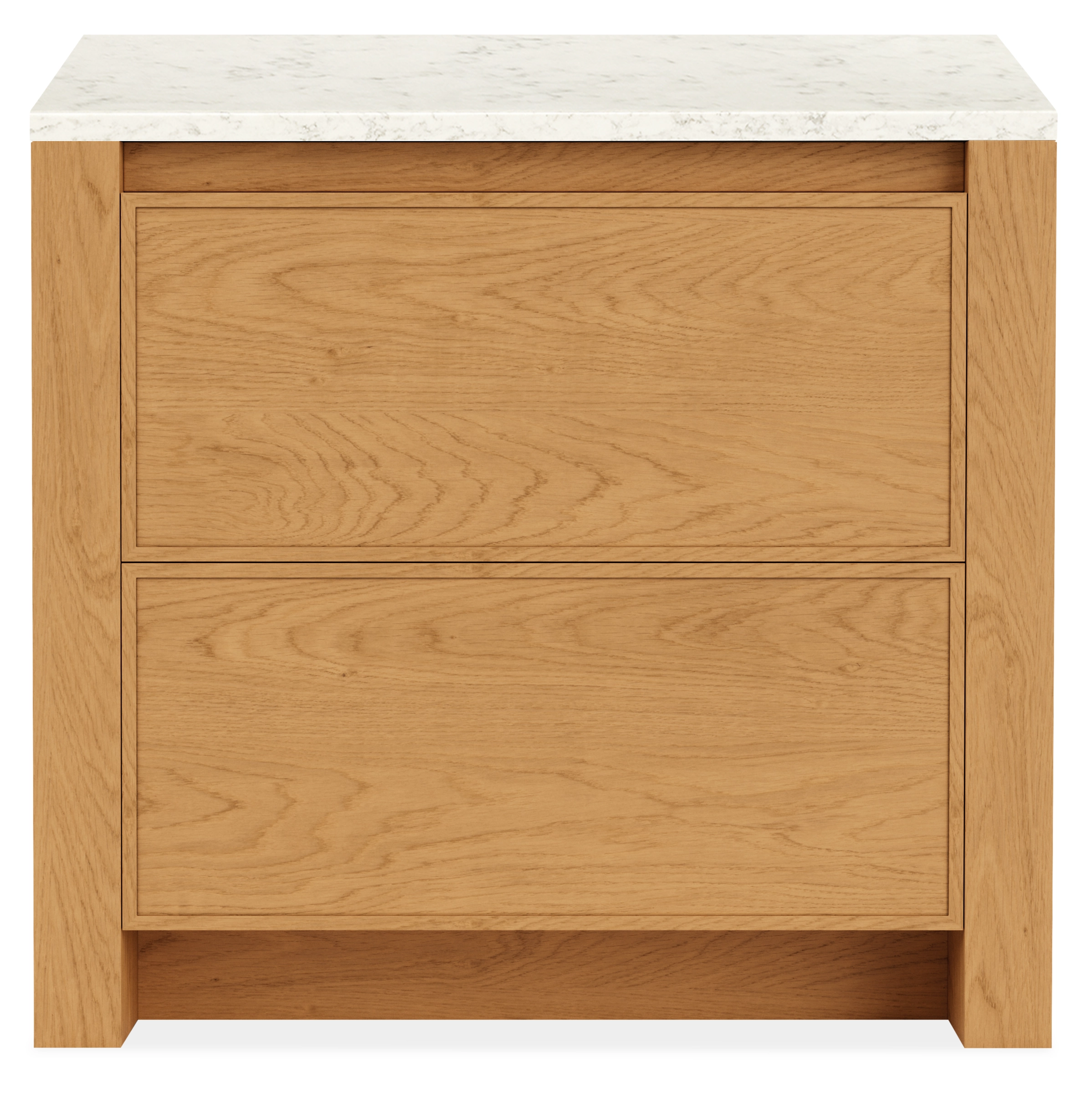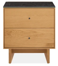 Our Amherst nightstand unites luxury and function all within one piece. The refined design and clean lines highlight Amherst’s modern style, so it looks right at home in any bedroom. Beneath the stone top and wood case, this artisan-crafted nightstand houses smooth, push-to-open drawers, providing you with plenty of storage.