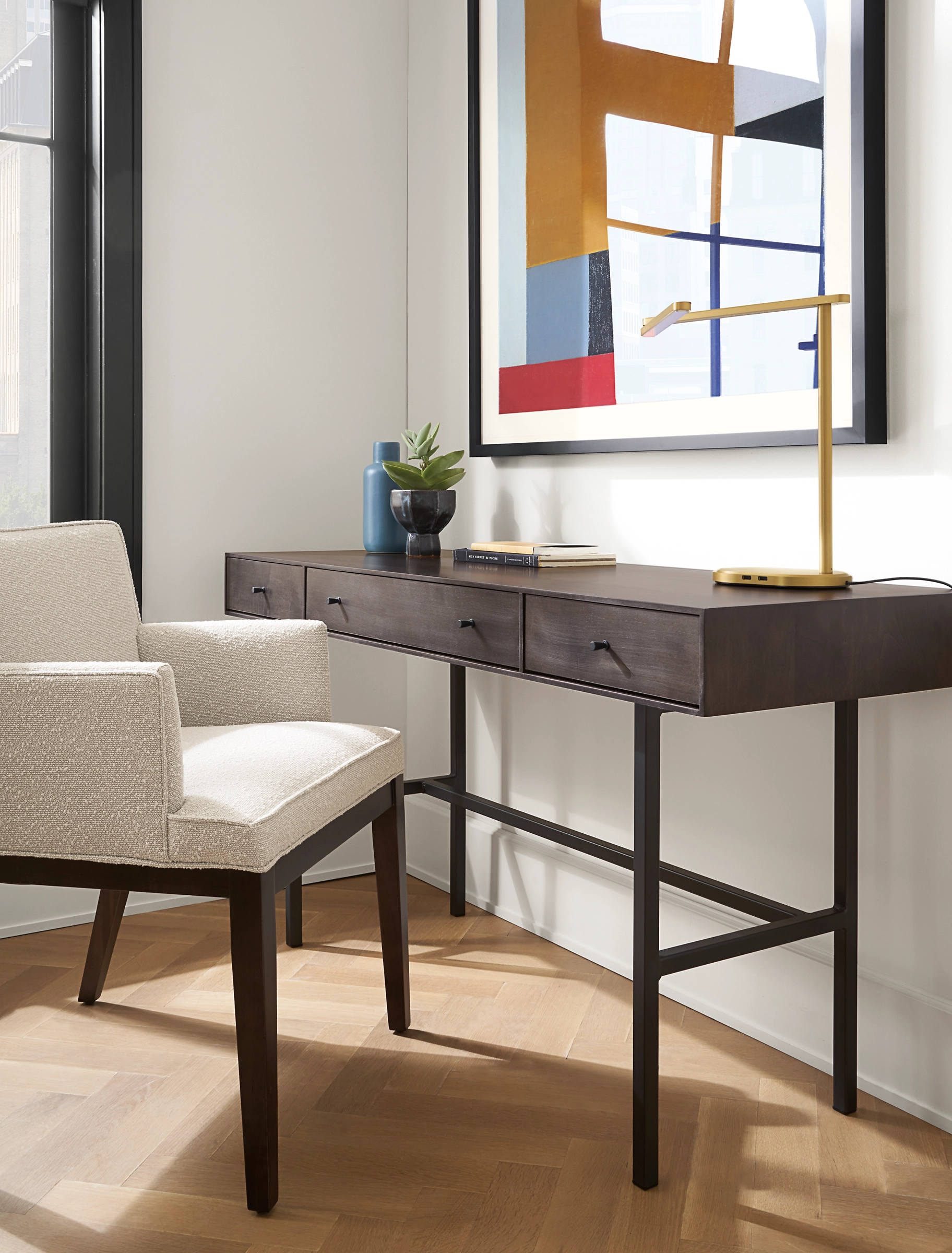 The Ansel upholstered chair is a versatile, modern dining chair with crisply tailored lines and a comfortable seat you can relax in long after the meal is over.