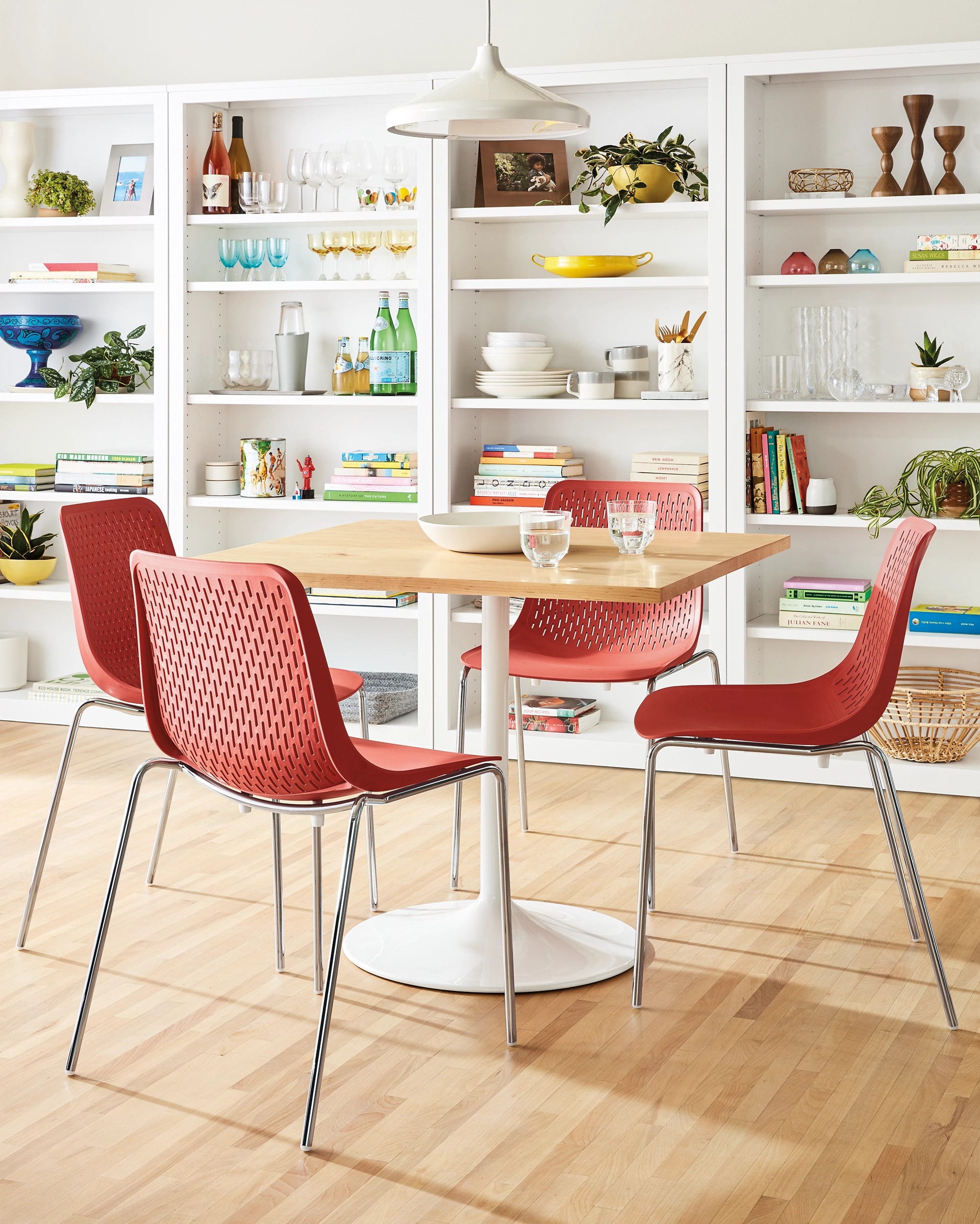 Simple and elegant, our mid-century-inspired Aria dining table is handmade in Wisconsin. The pedestal is crafted from one piece of spun steel, so there are no seams or joints to spoil the look. Plus, the pedestal maximizes seating and frees up leg space, especially important in small spaces. With a wide range of top and size options to choose from, Aria is a modern dining table you can personalize for your needs. Please note: overall height may vary slightly depending on the top material you select.