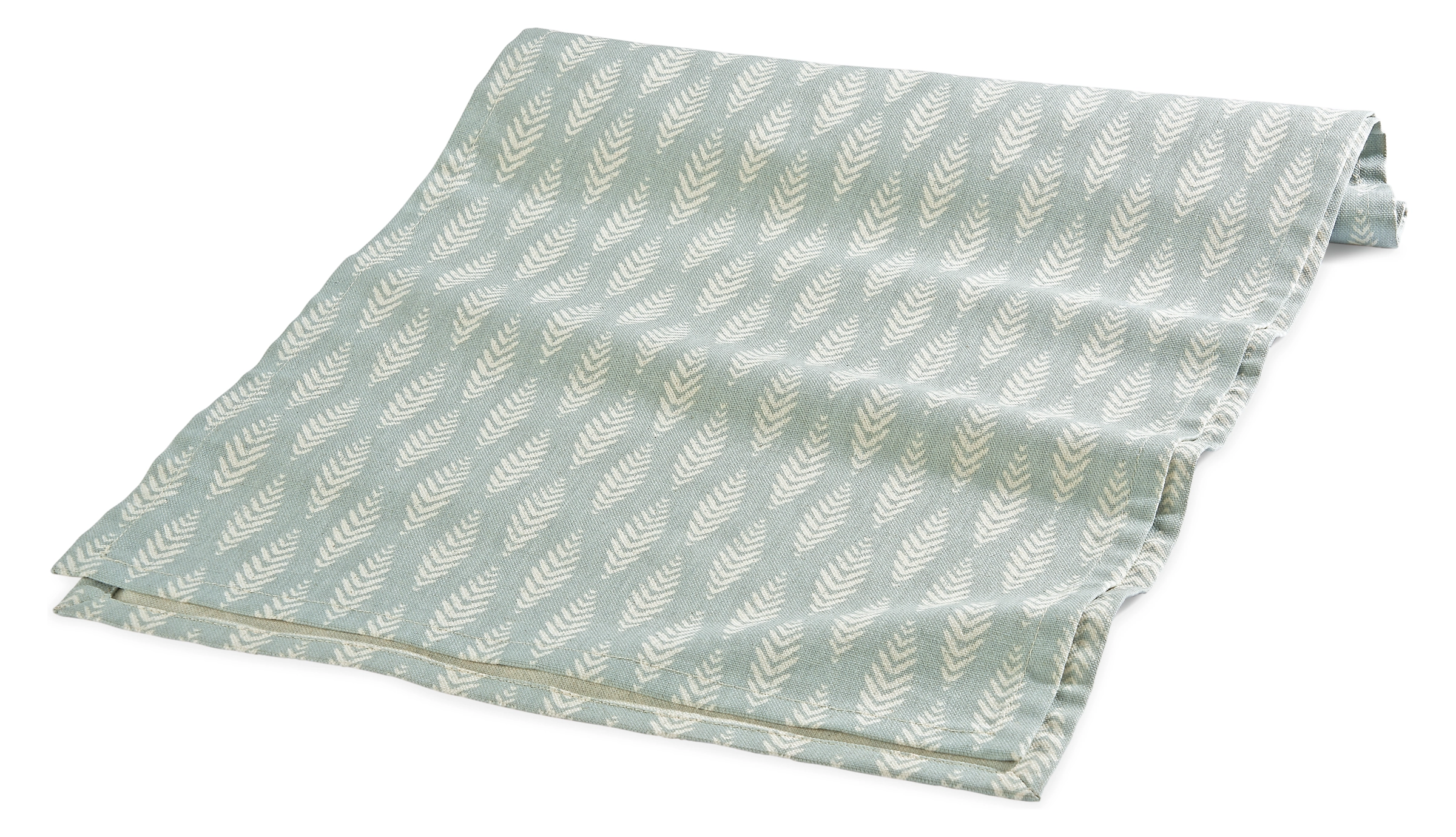 These modern table runners feature a delicate leaf design on a cotton-linen blend fabric. Made in the U.S., they are a lovely landing for your table decor. There are matching placemats, too.