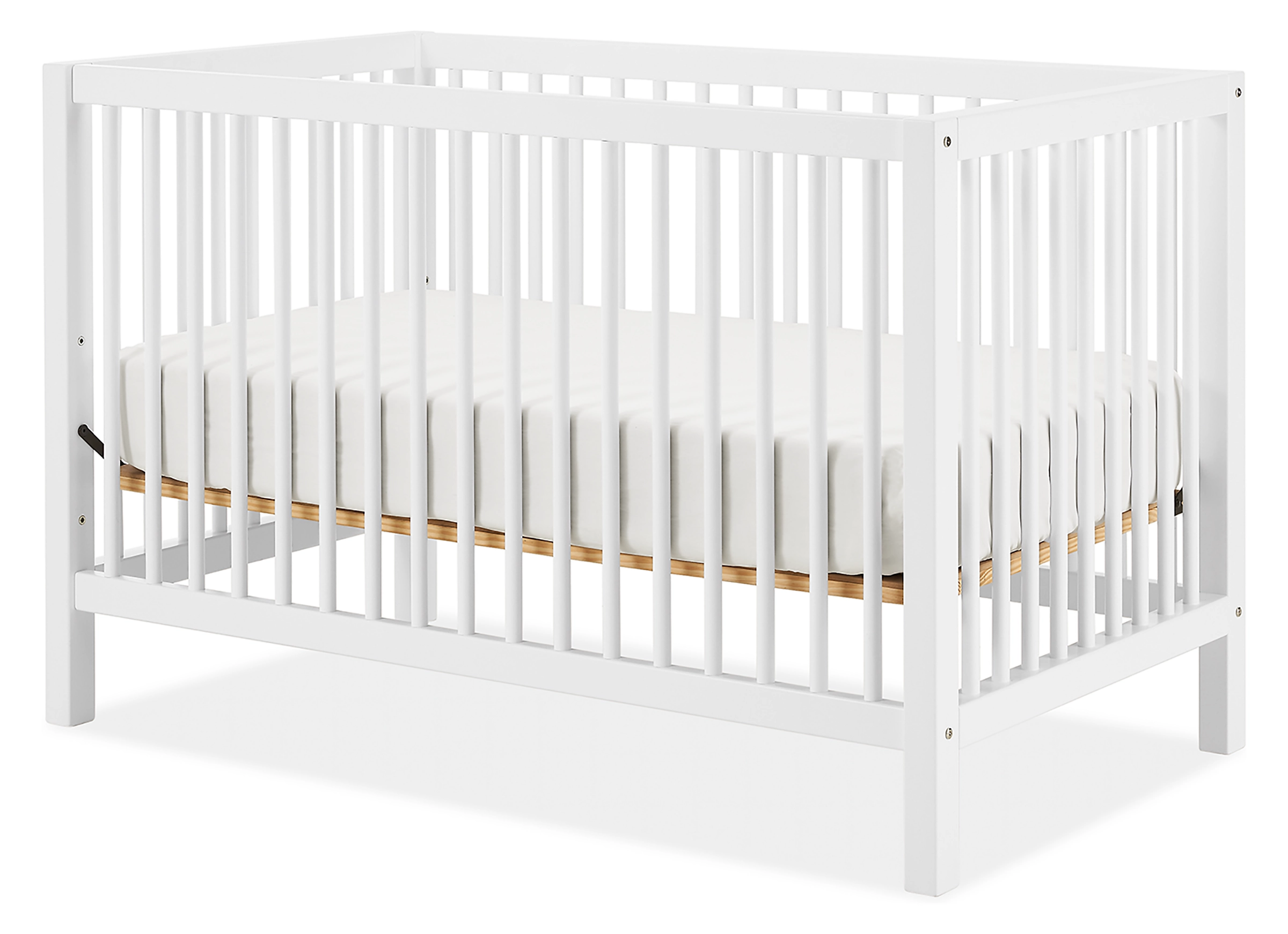 - Includes: complete crib frame and mattress support; mattress not included