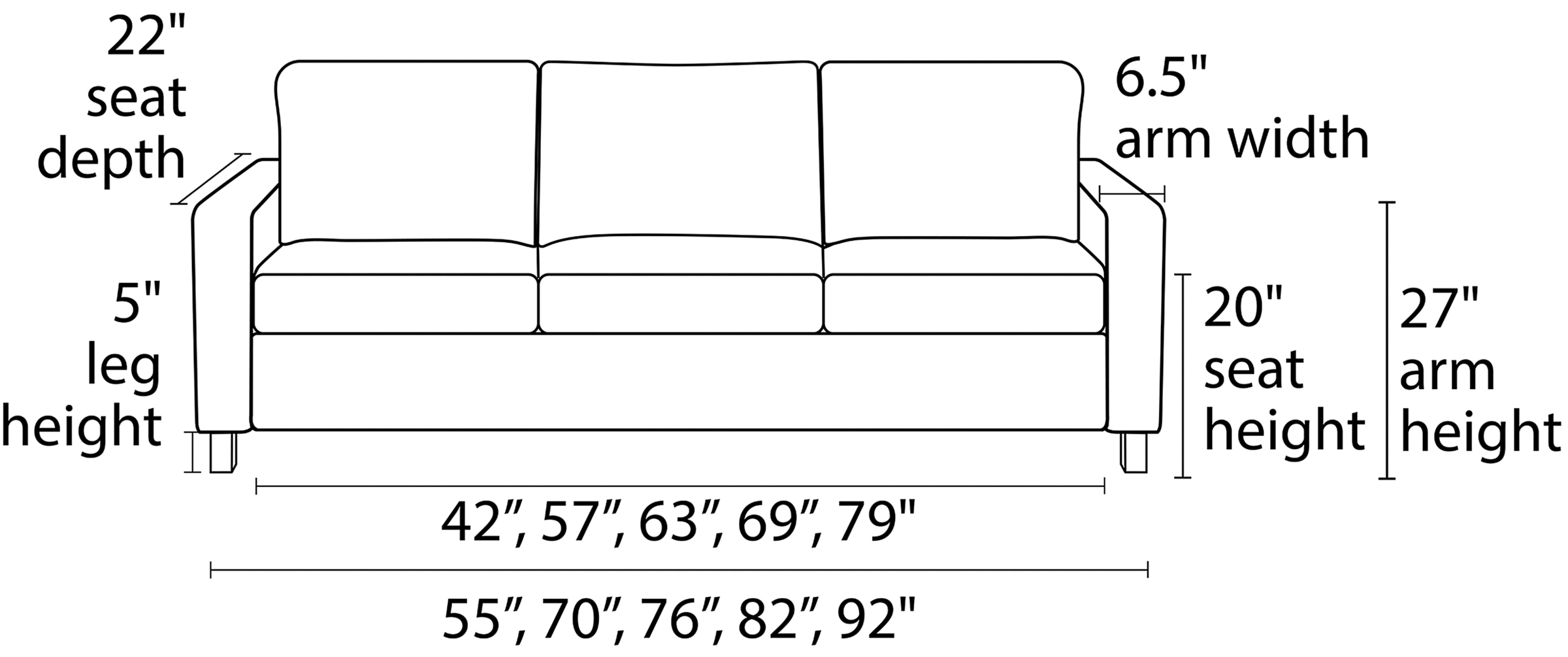 - Cushion Characteristics: supportive comfort with a tailored appearance; will soften with use but designed to retain shape