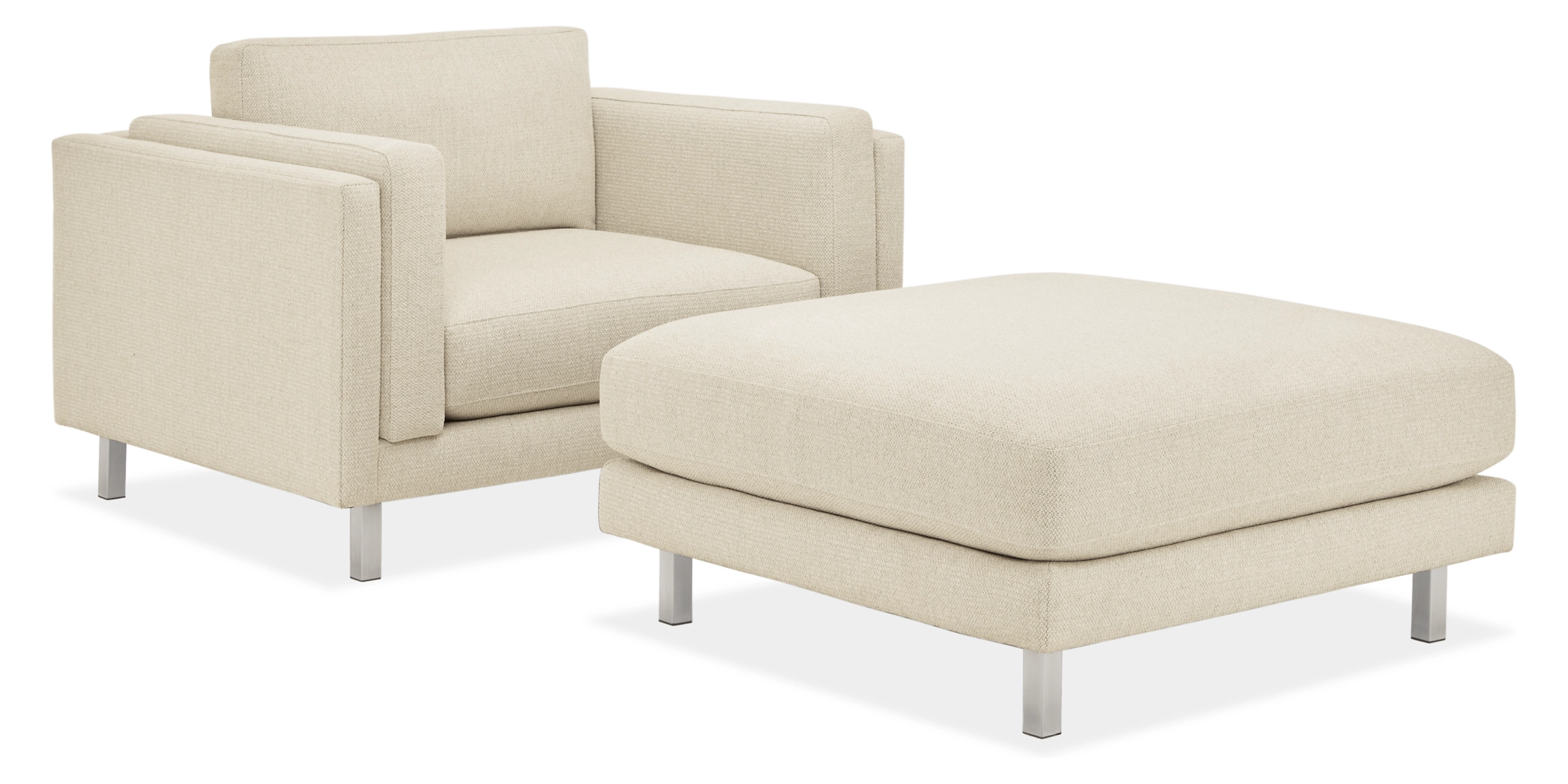 A modern design with classic details, the Cade ottoman lets you lounge with a refined look. Tall square legs give this ottoman a light presence you’ll love.