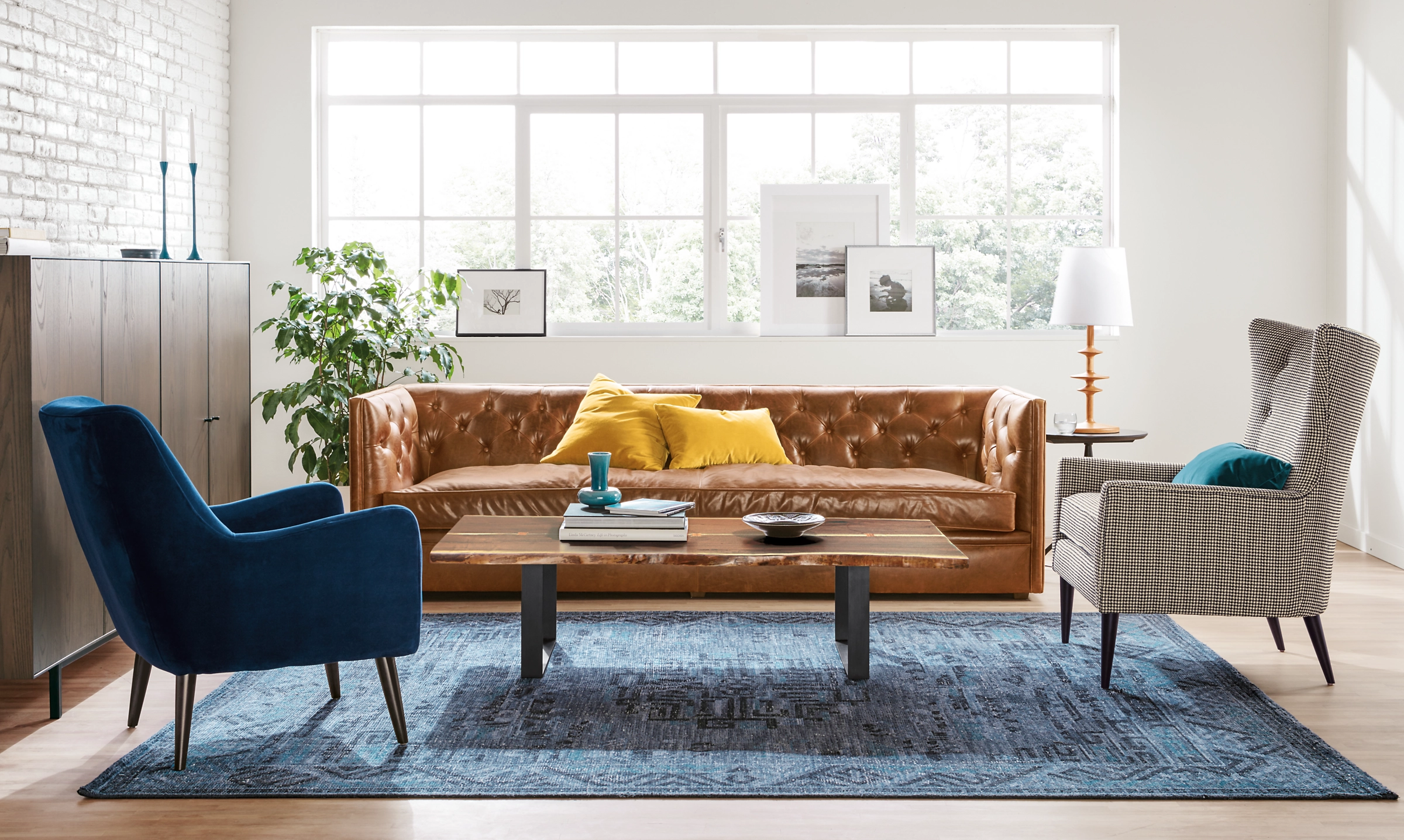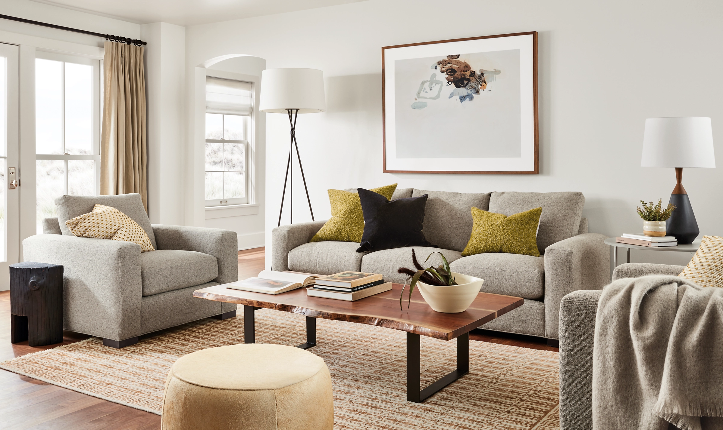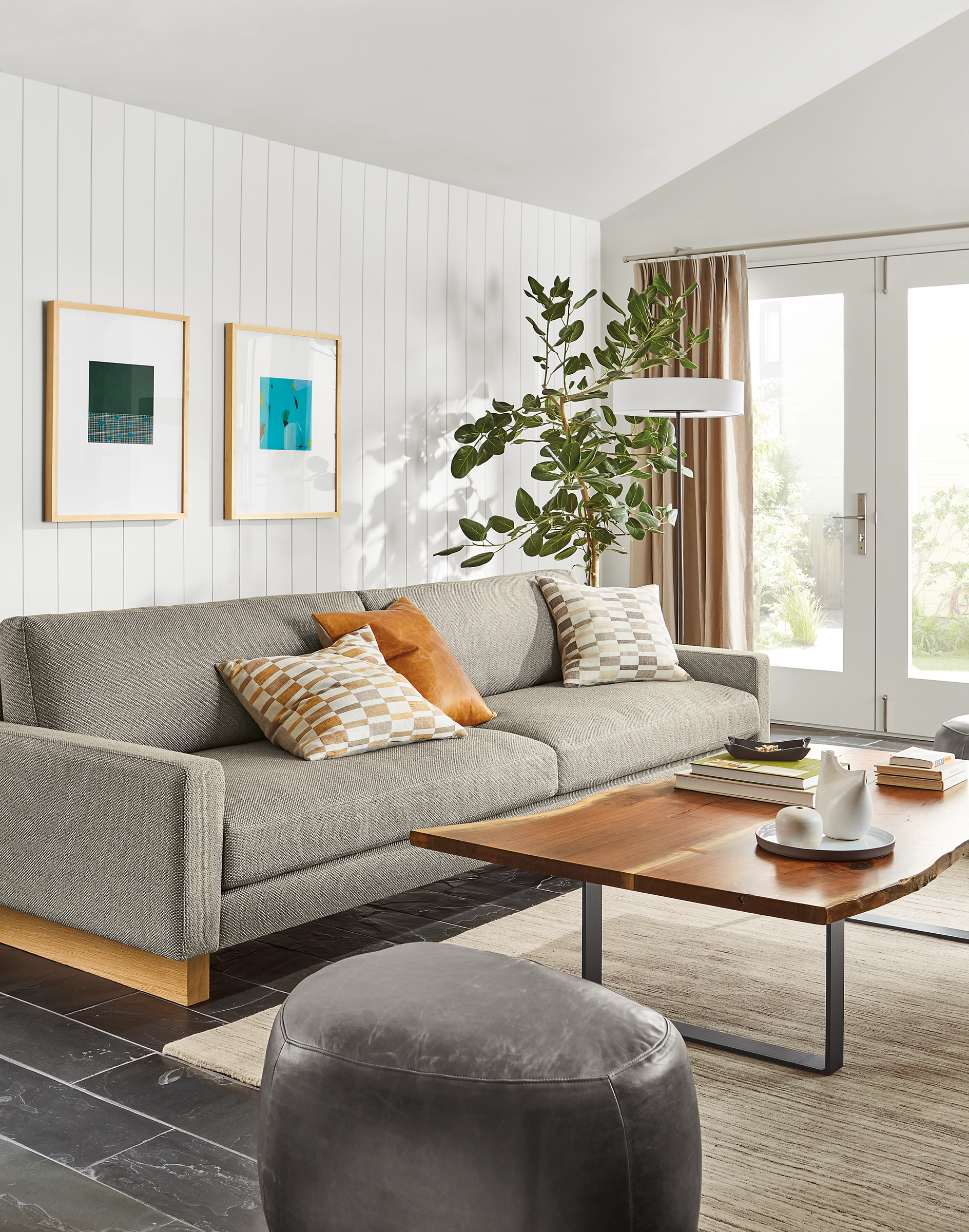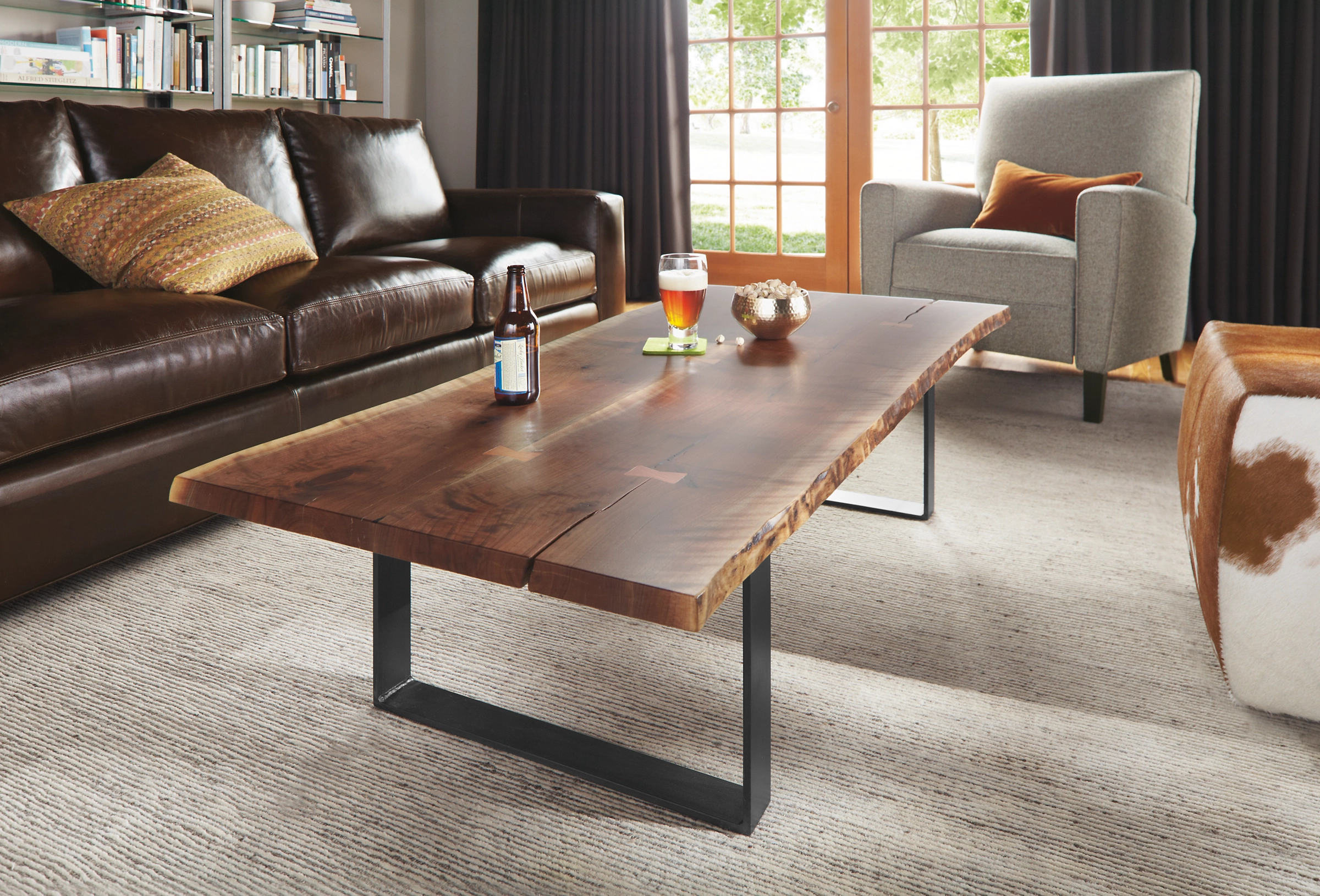 Each Chilton coffee table features a shape and grain as unique as the tree it came from. A solid slab of wood is sanded and finished, braced with butterfly joints in any areas requiring extra support, and secured to a hand-welded natural steel base. The best part? You can choose the exact top that you like best, for a one-of-a-kind look.
