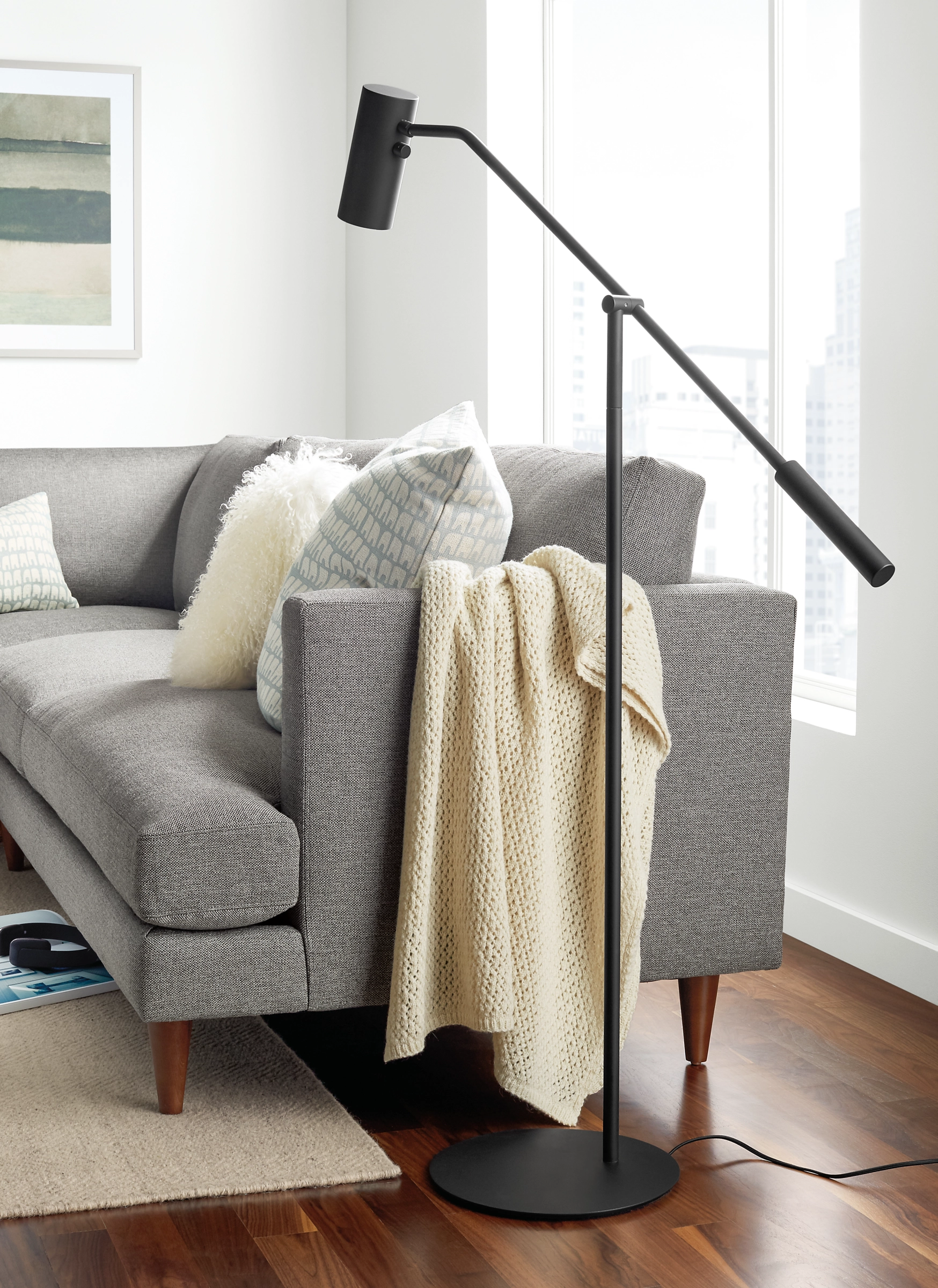 Drawing on vintage lamp style, Coda features a counterbalanced design that allows smooth, one-handed adjustment of the lamp’s position. The head pivots to focus light where it’s needed, and a dimmer lets you adjust the level of illumination. An energy-efficient LED bulb is included.