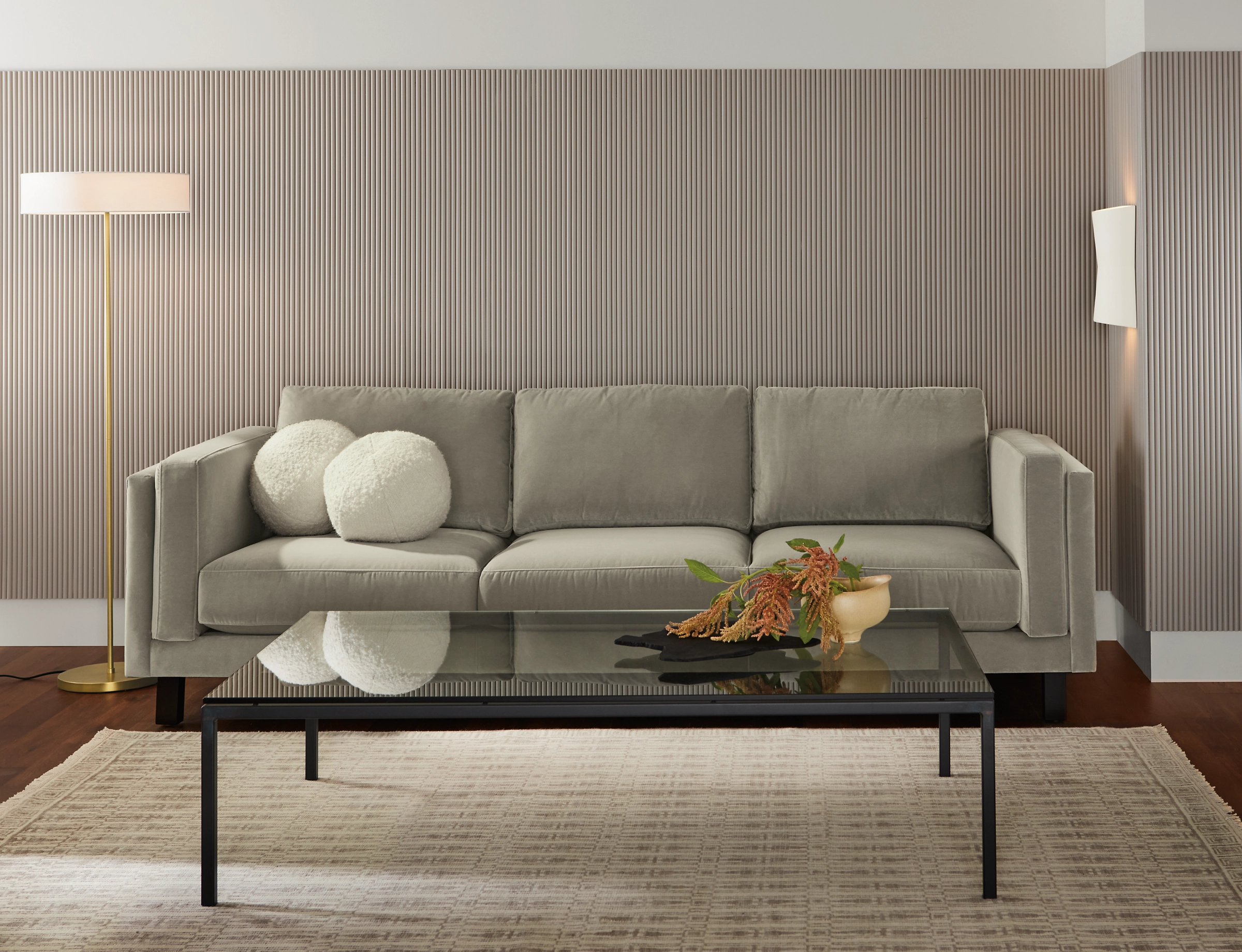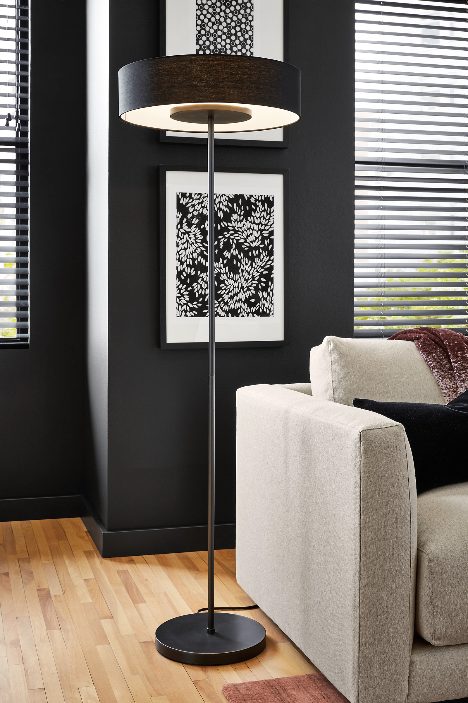 Sleek and modern, our Cohen floor lamp has a unique design where the LED reflects within the enclosed shade, preventing any bright spots—this makes it ideal for rooms with low seating. Cohen also has dimming functionality, a switch on the fabric cord and an integrated solid-state LED bulb.