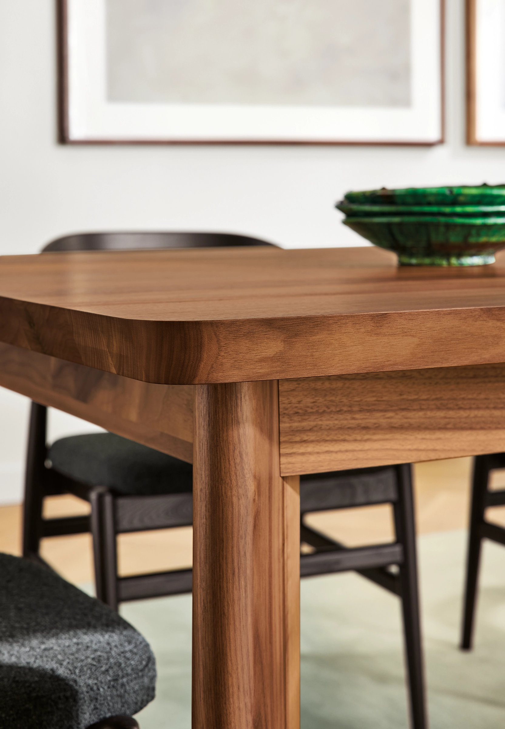 This substantial modern dining table is made from solid wood in Vermont by skilled craftspeople. Ideal for large spaces, Colby features thick slabs of sustainably sourced wood and strong lines, creating a bold visual statement in any room. Choose your ideal wood and size, then enjoy this dining table for a lifetime.