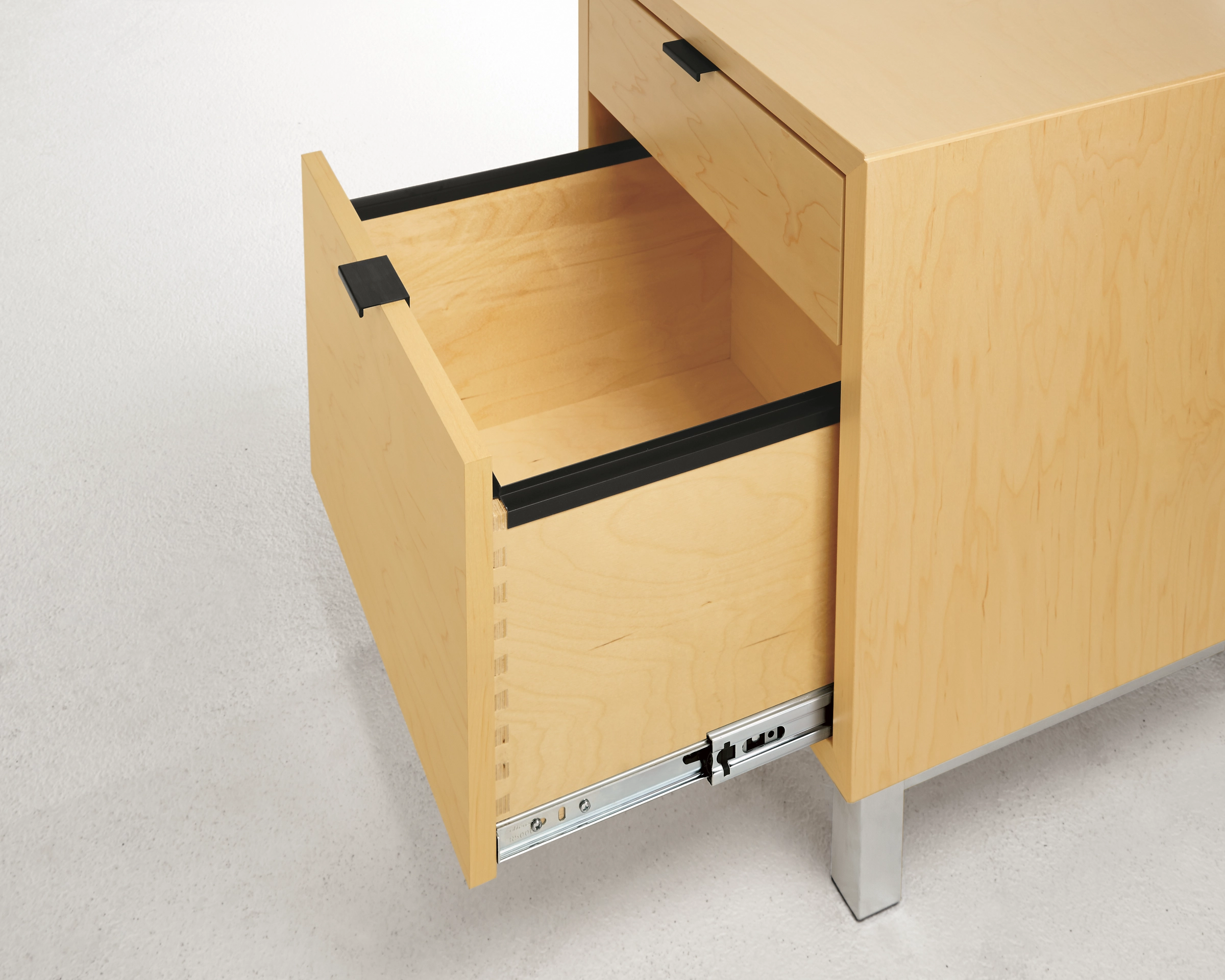 - Drawer Construction: wood veneer or low-emission MDF front; Baltic birch plywood sides; dovetail joinery; wood veneer bottom