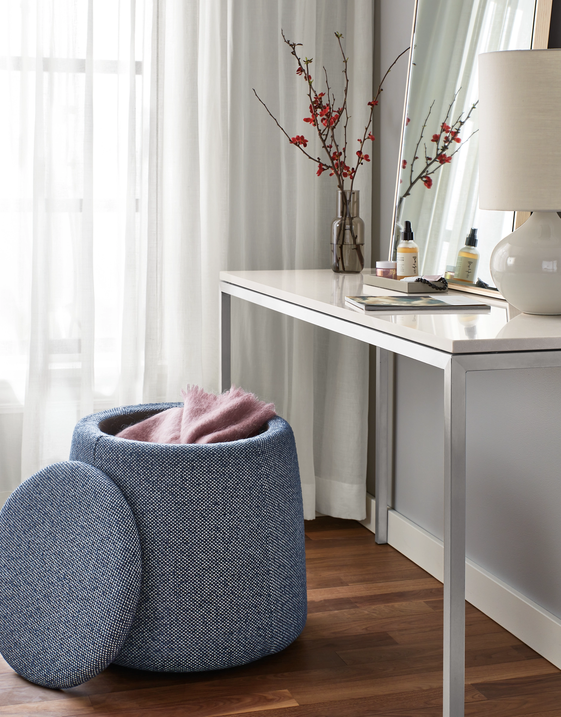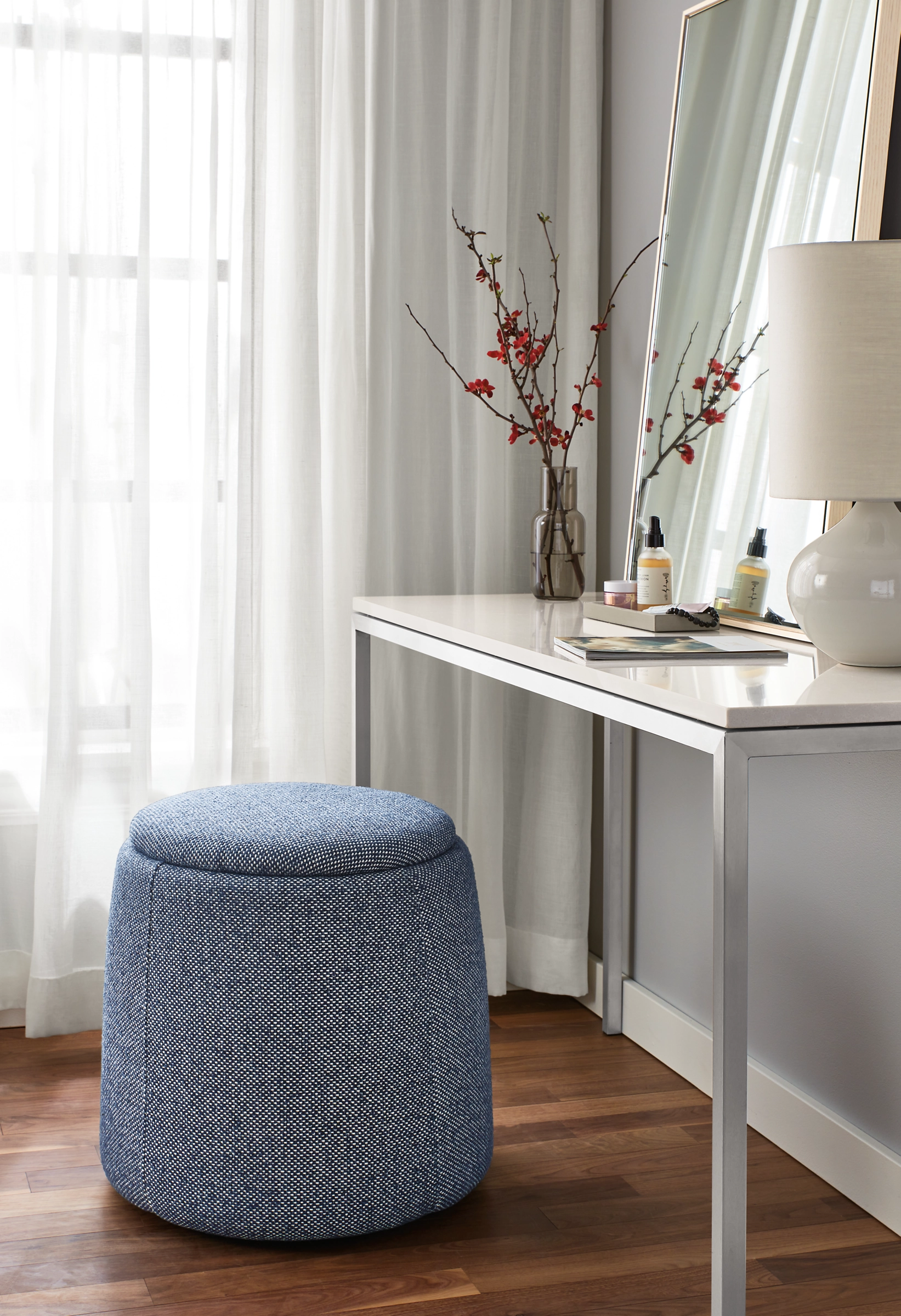 With its unique tapered shape, ample storage and comfortable upholstery, Dodd is the perfect modern ottoman. Dodd’s durability and flexibility means it can seamlessly transition between being a seat, a foot rest or a table—or all three! The hollow center provides ample storage.
