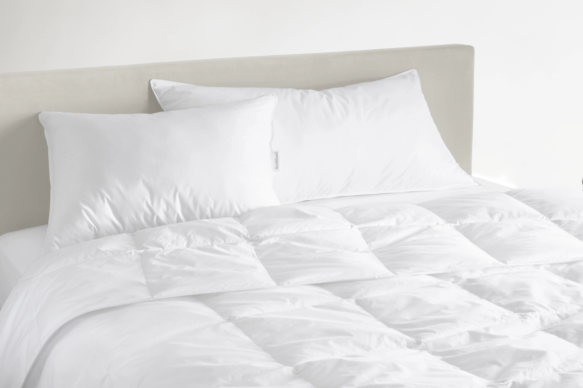 Our down-alternative duvet inserts are made with a long-lasting polyester fill that mimics the fluff of down. They’re covered in 230-threadcount cambric cotton with sewn-through box-stitch construction to keep the fill in place. Choose from three different fill levels to tailor the warmth to your comfort.