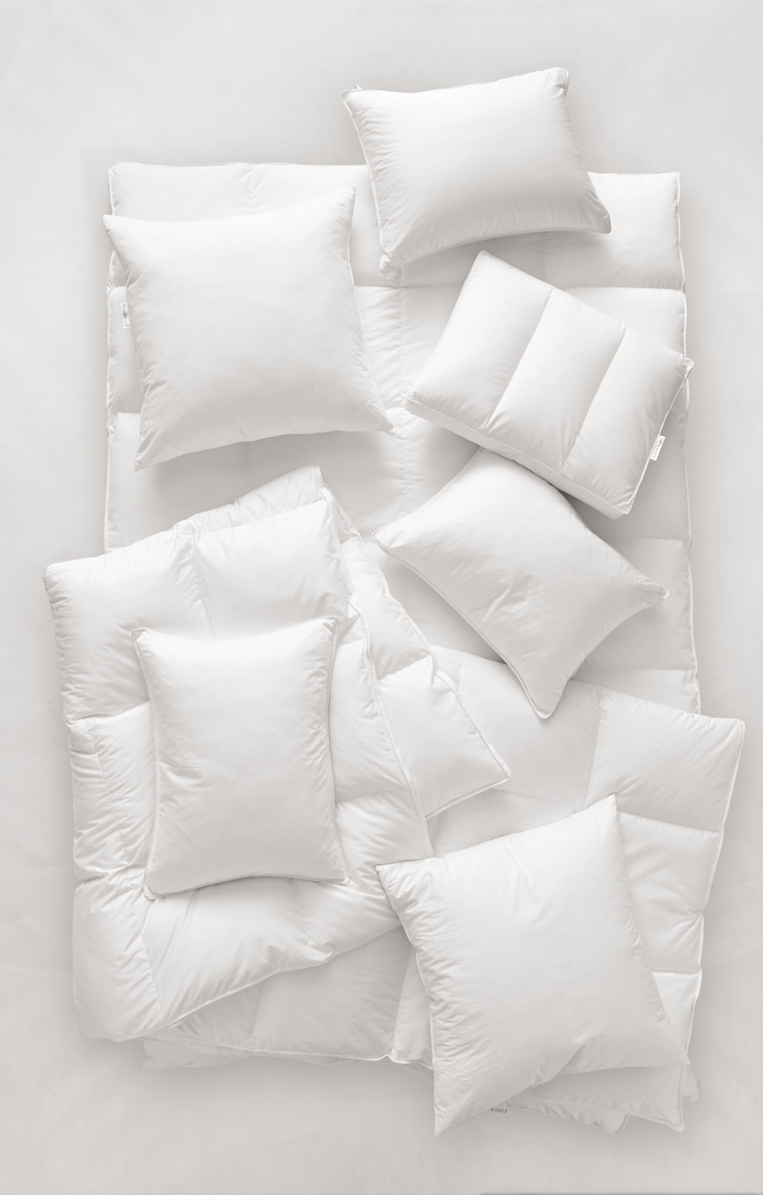 Our premium snow-white down duvet inserts are covered in 230-threadcount cambric cotton. Reinforced seams and baffle boxstitch construction keeps the down evenly distributed. These warm duvet inserts come in three different fill levels so you can pick the best one for the season.