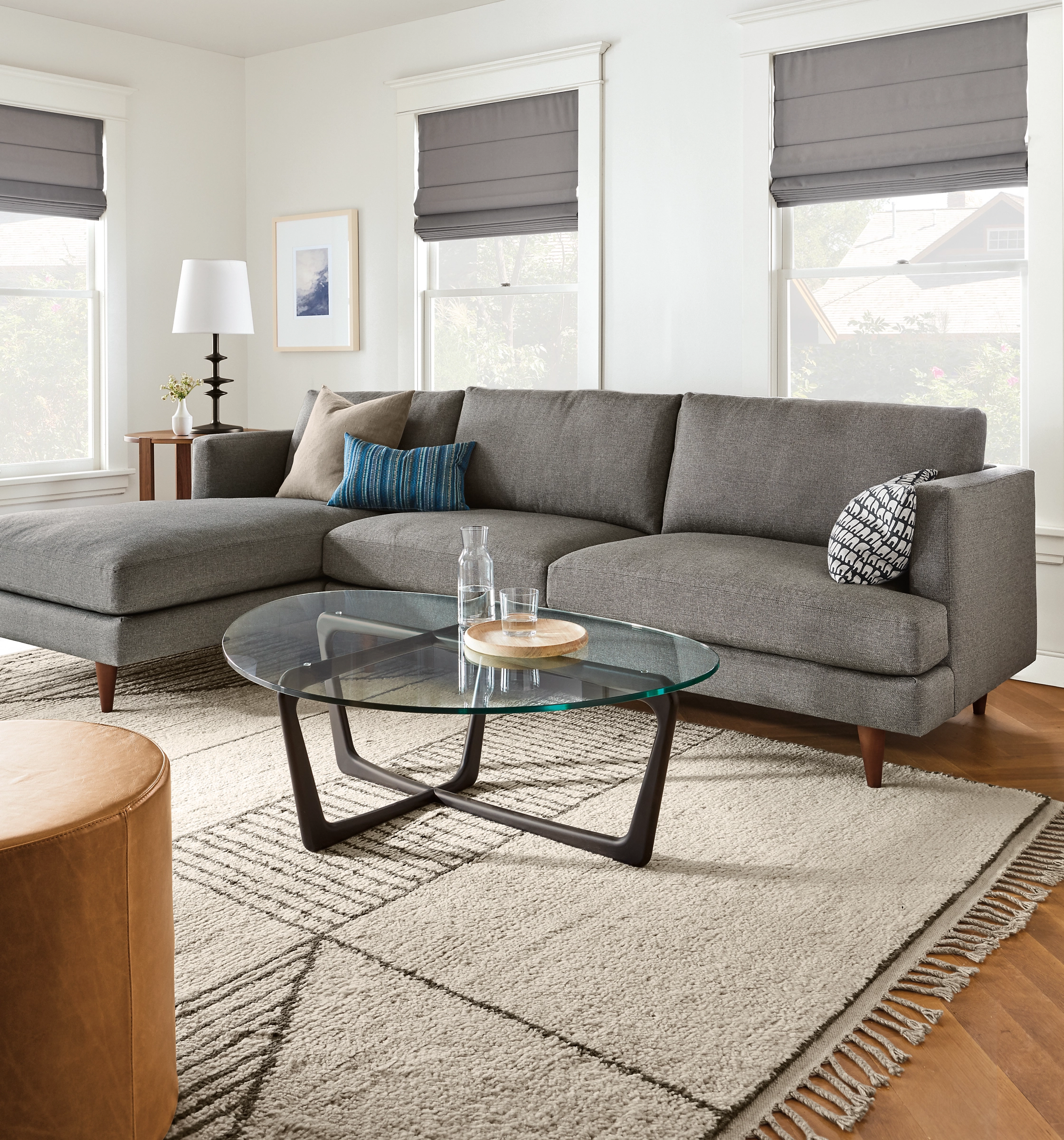Clean lines combined with an organic form lend a softly modern, timeless feel to the Dunn coffee table. Created by skilled Vermont artisans, Dunn features unique joinery that gives the base the illusion of being carved from a single piece of wood. A glass top showcases the distinctive base.