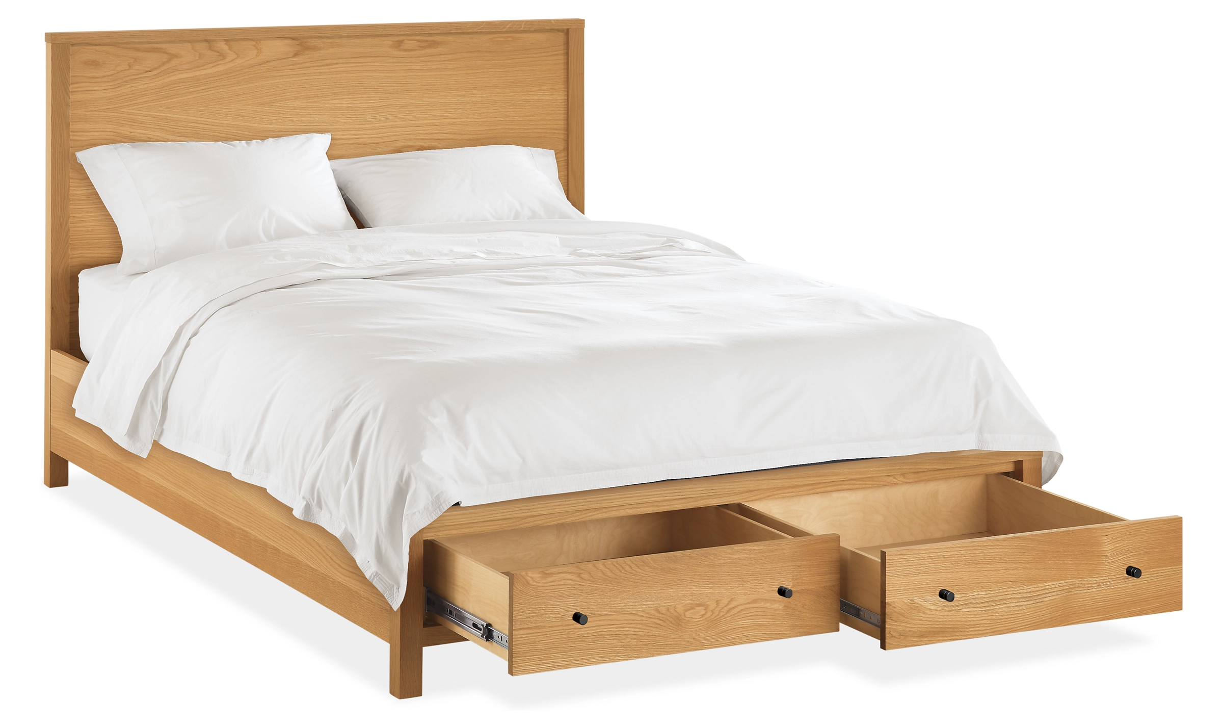 Expertly crafted in the U.S., this bed has a lacquer finish that emphasizes the timeless beauty of sustainable, domestic wood. Emerson’s clean lines and sturdy construction form a classic look that will bring a friendly warmth to any bedroom. Plus, two drawers pull out from the foot of the bed to add storage space.