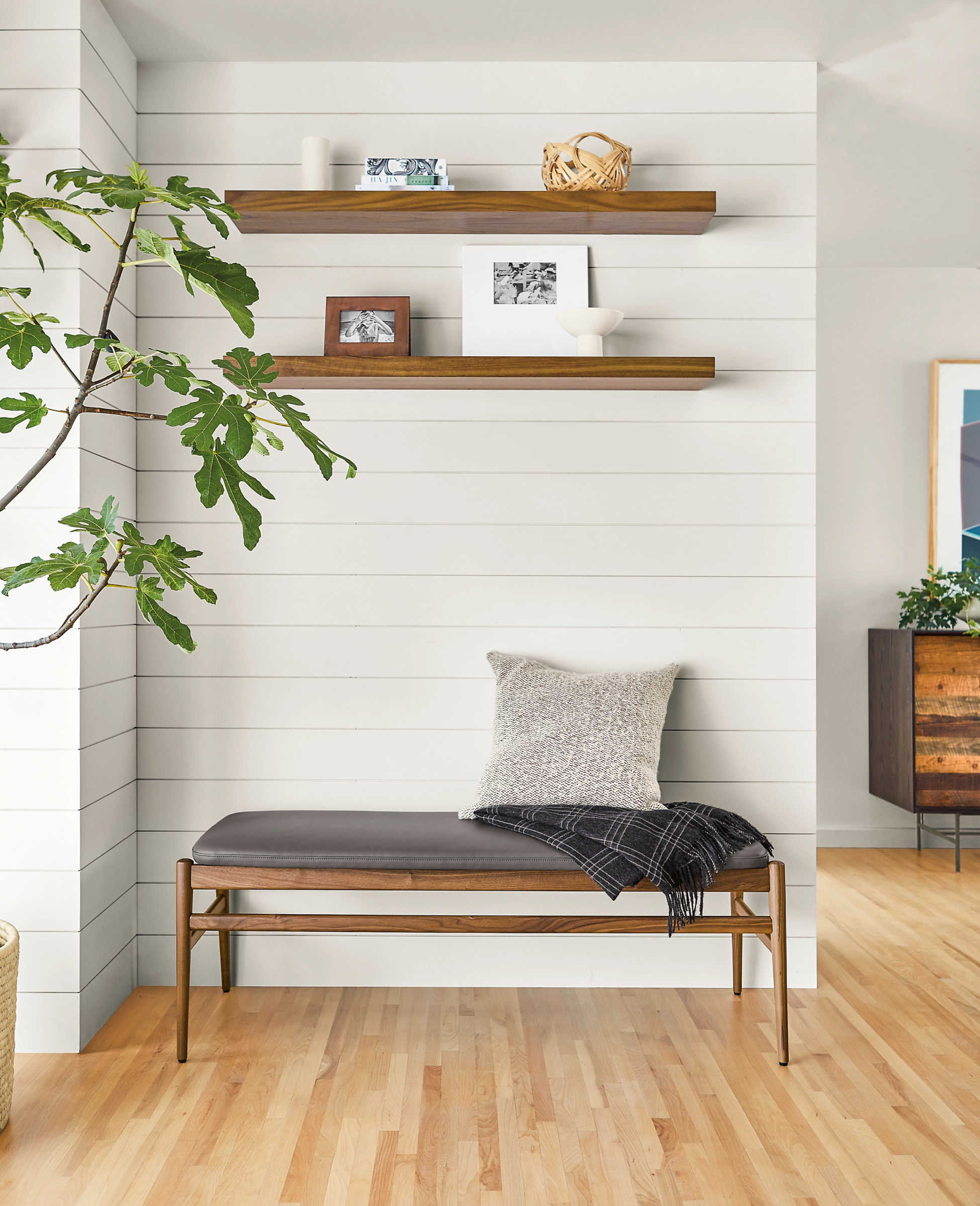 Influenced by Danish design, each leather Evan bench is handcrafted one at a time from solid wood by expert craftspeople in Massachusetts. Showcasing a beautiful mix of materials, Evan is a comfortable bench with an approachable silhouette no matter the angle. Evan’s soft shape mixes effortlessly with a variety of styles and highlights the time-tested beauty and durability of American craftsmanship.