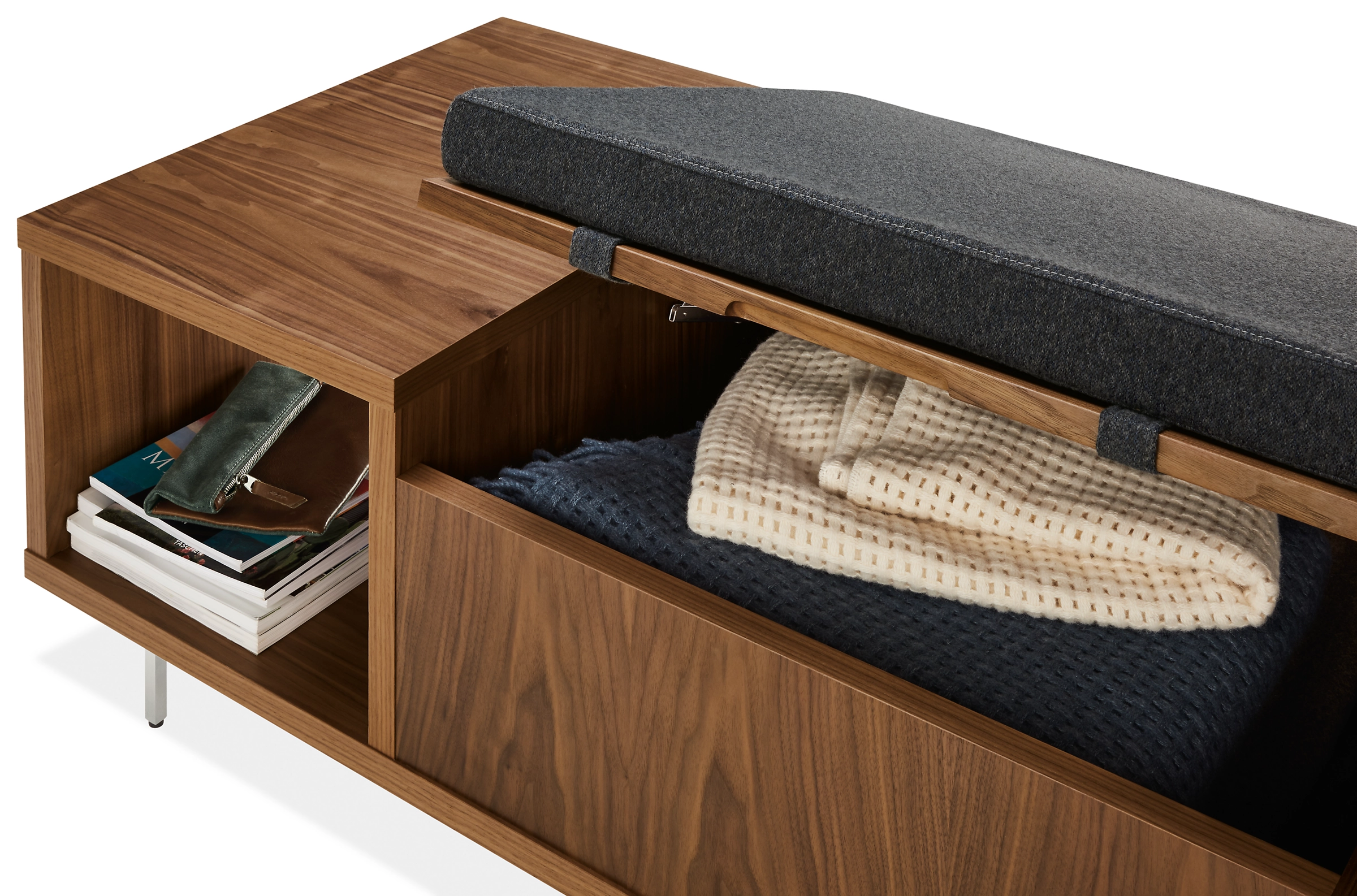Room & Board’s annual design scholarship competition with the Minneapolis College of Art & Design (MCAD) students yields this unique, functional piece designed with small space in mind. The Fleming cocktail table and storage bench combination is both a seating and storage solution, making it a versatile addition to a small space or any room of your home. A mix of wood, fabric and steel gives Fleming a modern and eclectic look, while the bench’s soft-close hinges enhance its safety and durability.