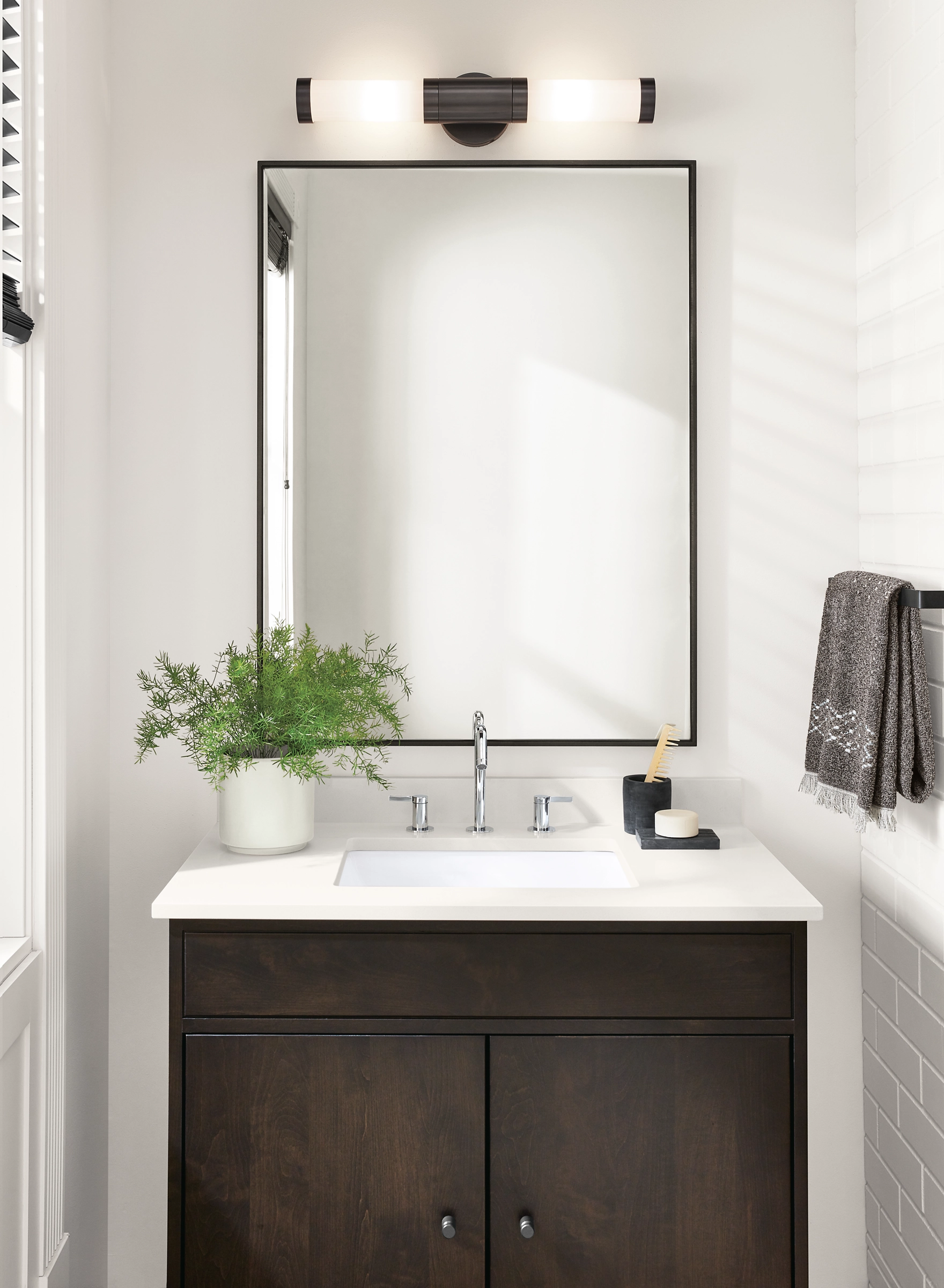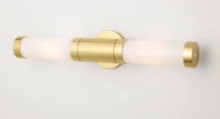 The Forum wall sconces feature steel and frosted glass in a modern cylindrical shape. Perfect for bathrooms or any space in need of style and function, Forum is UL-listed for damp locations and includes dimmable LED bulbs. These sconces can be placed horizontally or vertically, and are available for hardwire installation only.