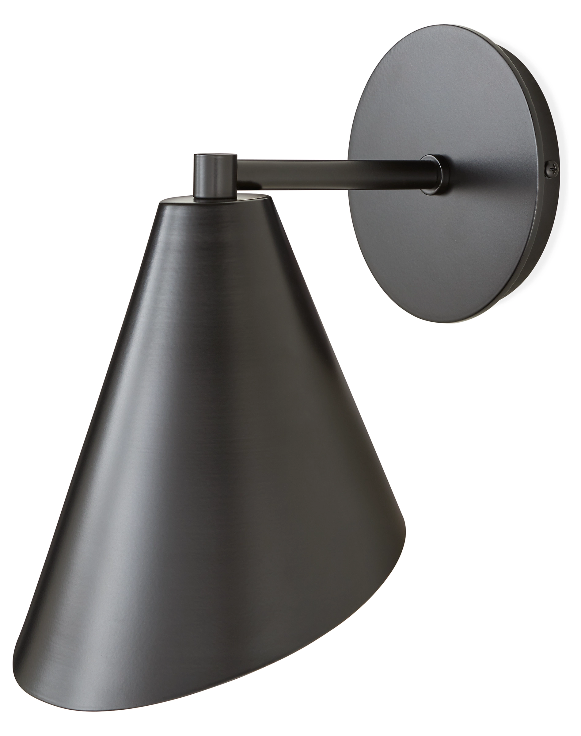 This unique sconce is made from spun aluminum with a durable powder coat. The modern geometric design adds a flair of wit and imagination to any room throughout your home.