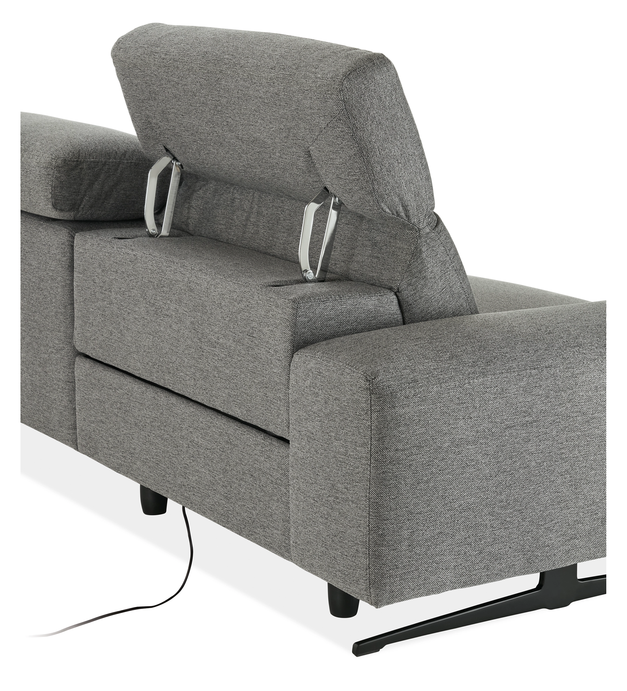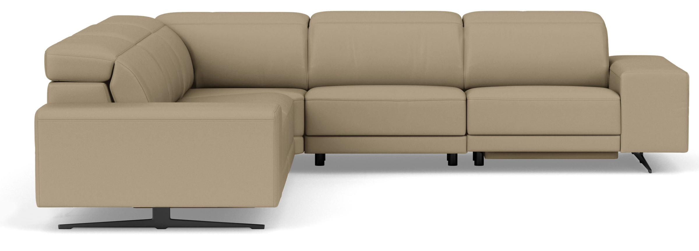 - Features: Left to right: Left-arm chair with powered foot & headrest, armless chair with manual headrest, corner piece with manual headrest, armless chair with manual headrest, right-arm chair with powered foot & headrest.