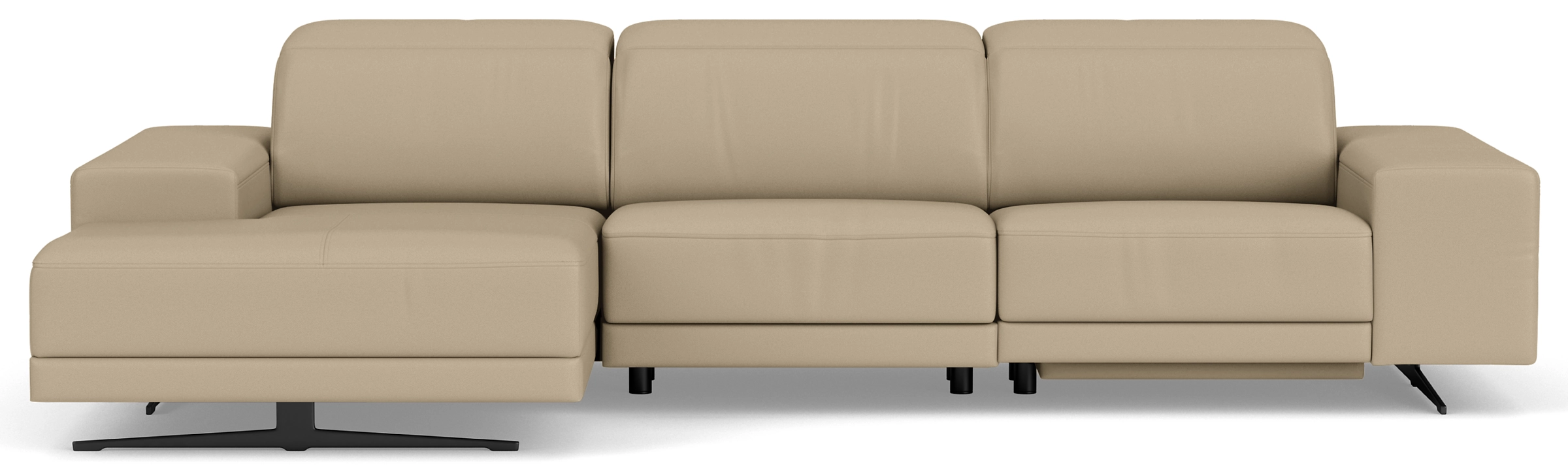 Expertly made in Italy, our Gio leather power-reclining sectional presents cutting-edge design with modern comfort. Touch the recline buttons on the arms to adjust Gio’s headrest and footrest cushions into any position you please. With the supportive cushions and clean European silhouette, Gio offers a luxurious lounging experience.