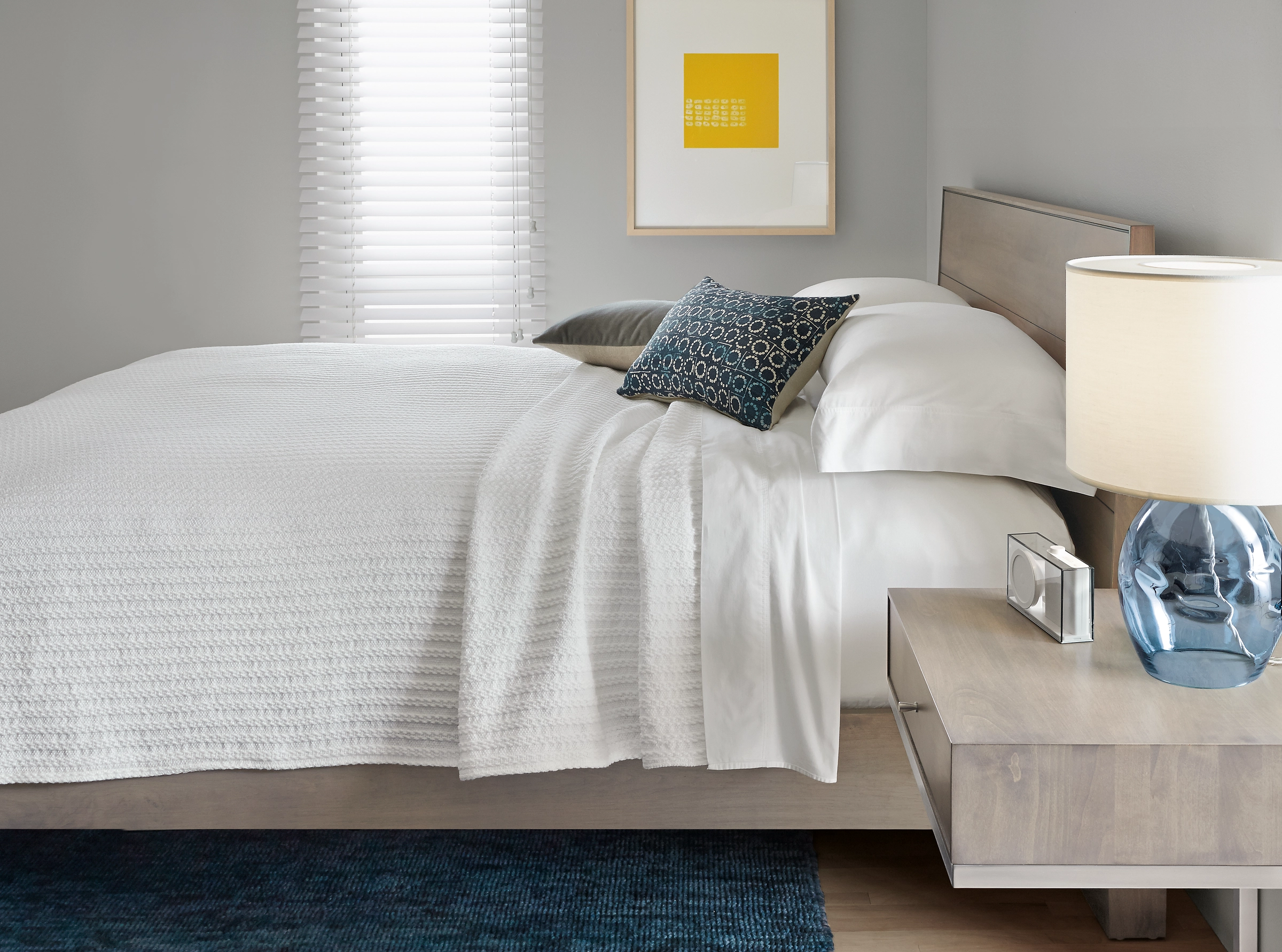Crafted exclusively for us by Hennepin Made, Grace is hand-blown by a glass artist in their northeast Minneapolis studio. A diffuser on top of the crisp cotton shade gives a soft glow.