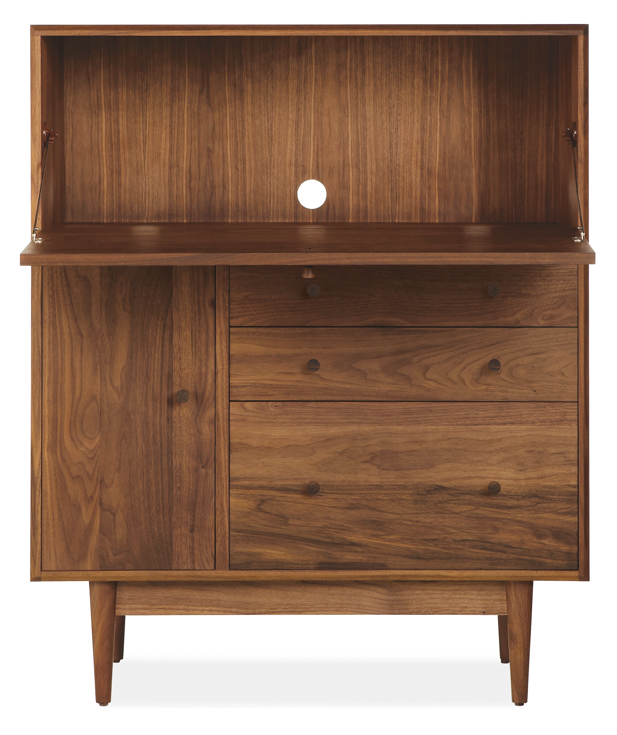 Mid-century details like solid wood, turned and tapered legs and beveled edges lend an air of refinement to the Grove office cabinet. Crafted by Pennsylvania woodworkers, Grove features an oil-and-wax finish that enhances the natural grain pattern of every panel of its solid wood construction.