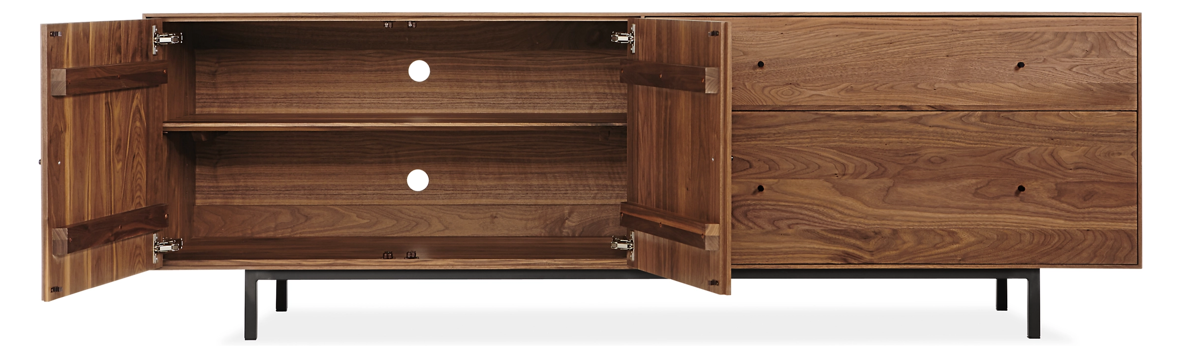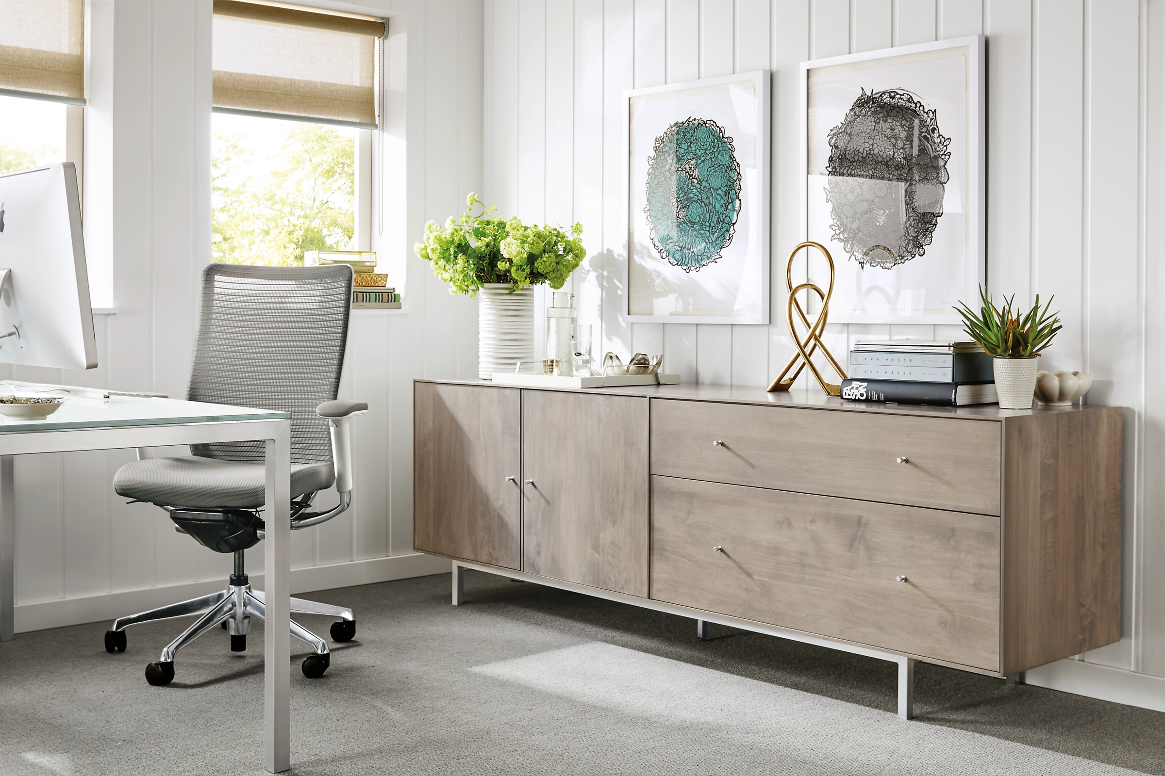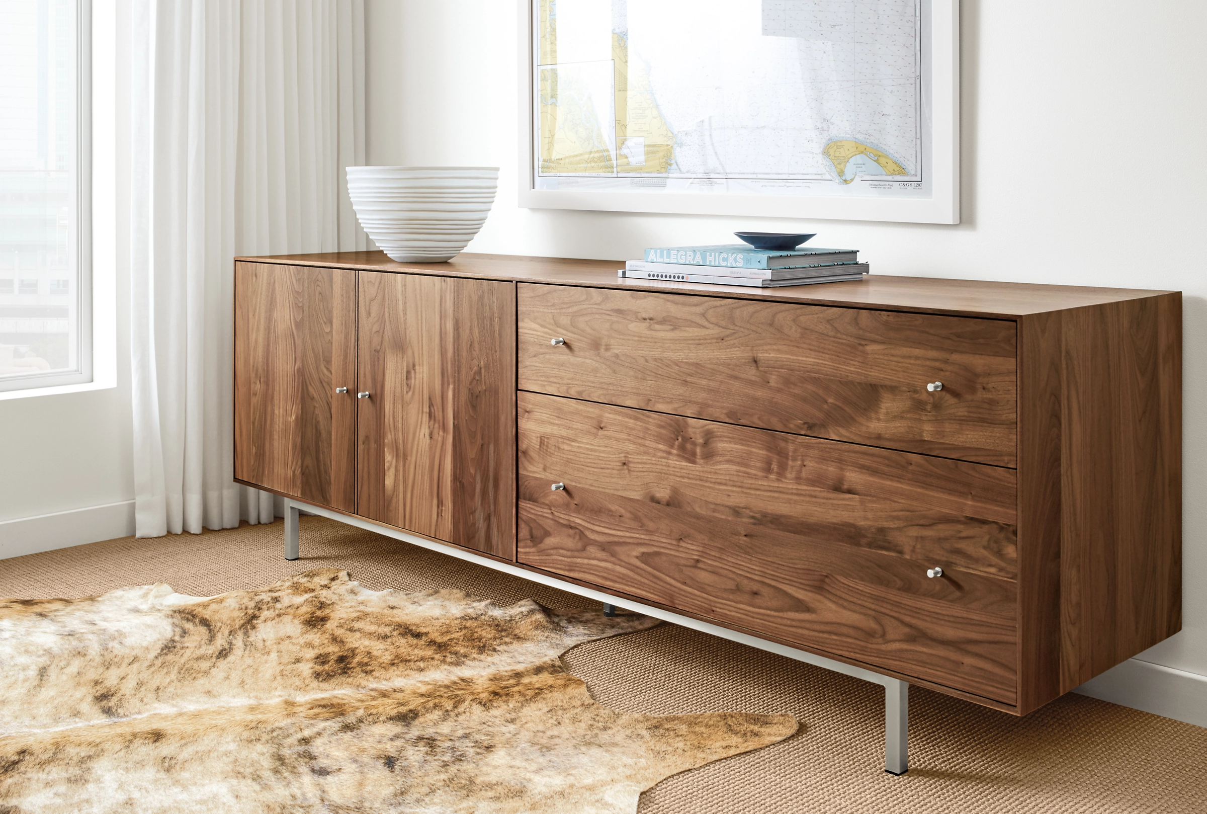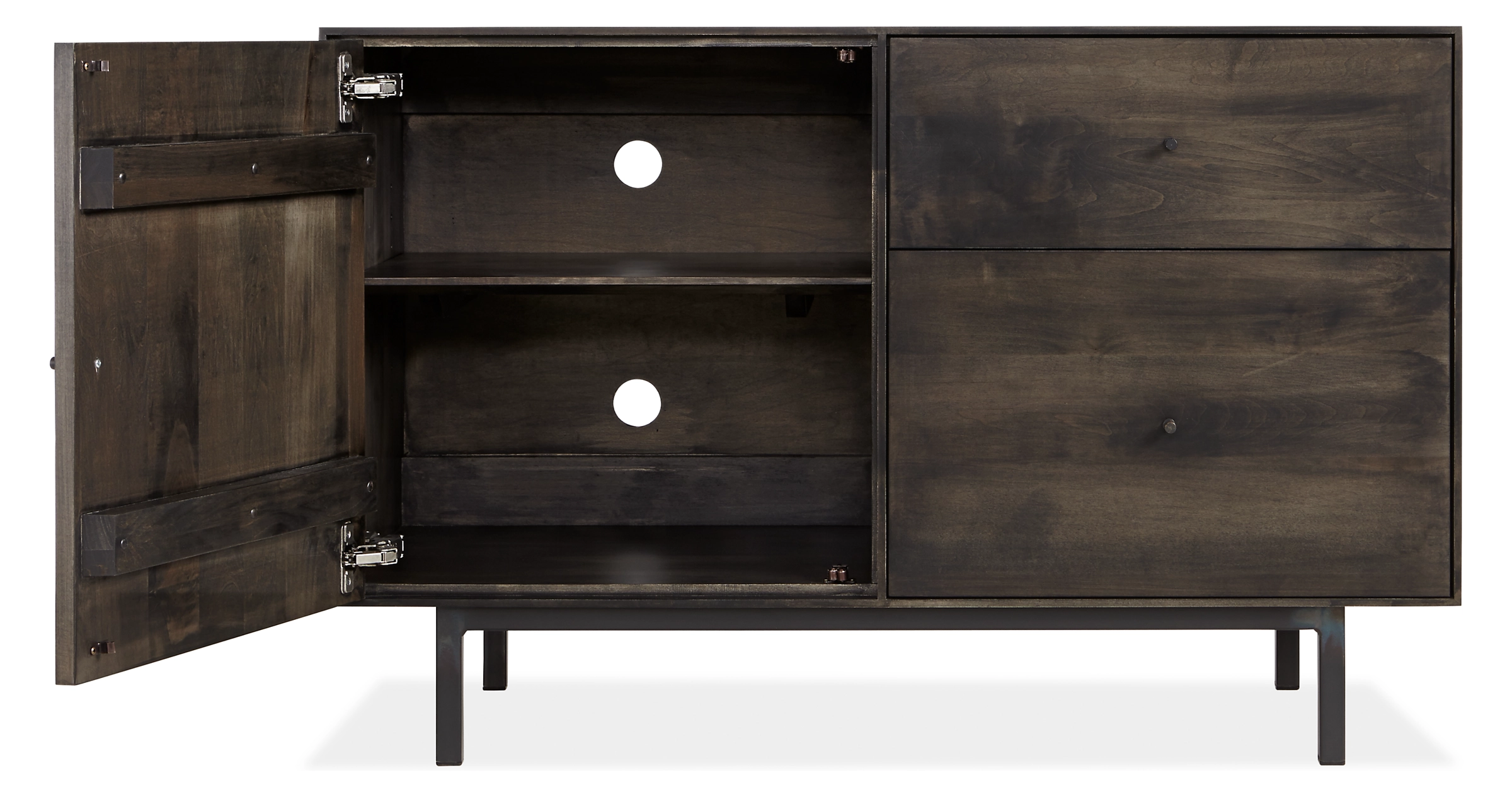 Built to be rock solid, this modern file cabinet with steel base is handcrafted in West Virginia by skilled artisans, who sign the back of each piece. The natural grain of sustainably sourced U.S. solid wood is the perfect backdrop for the sleek, timeless design of this collection.