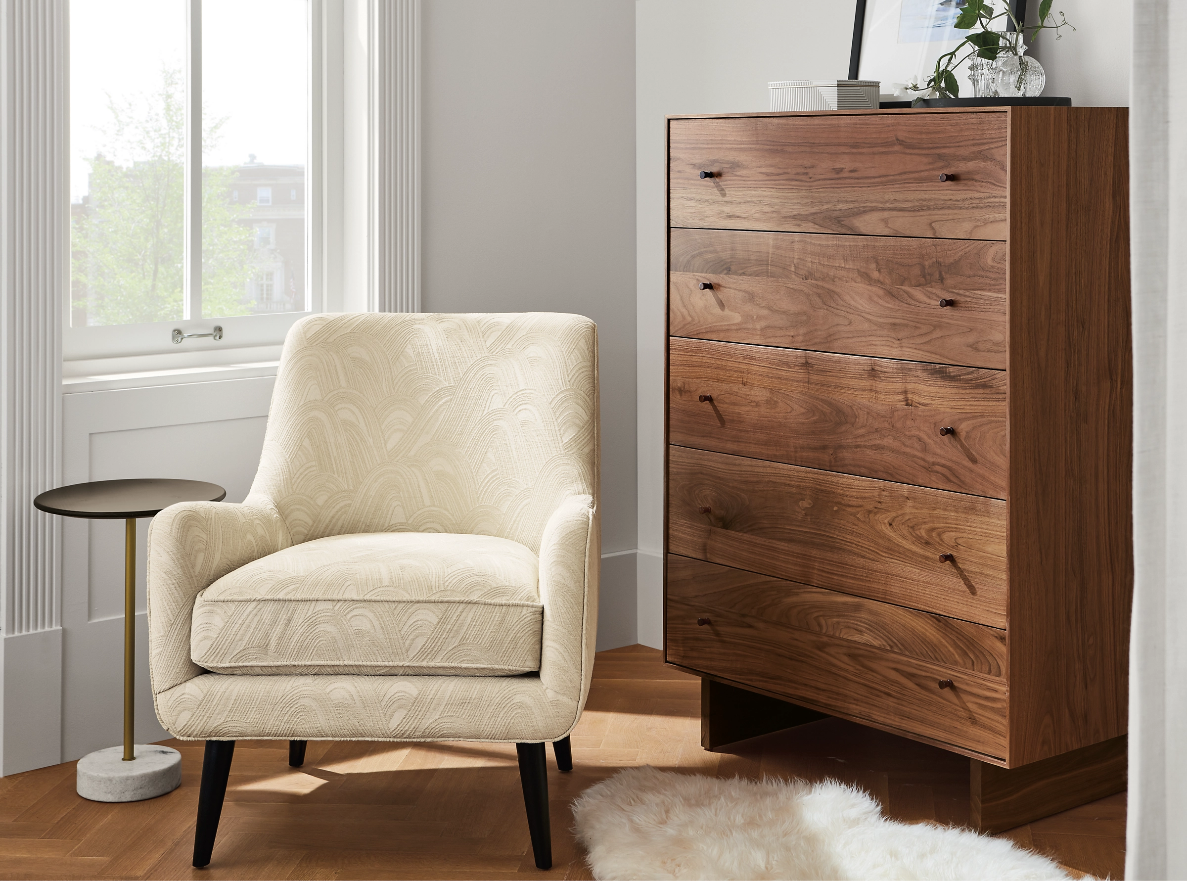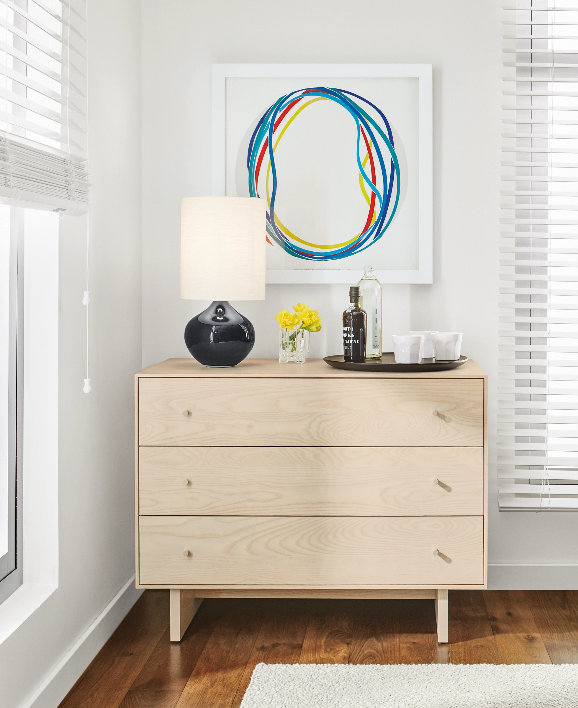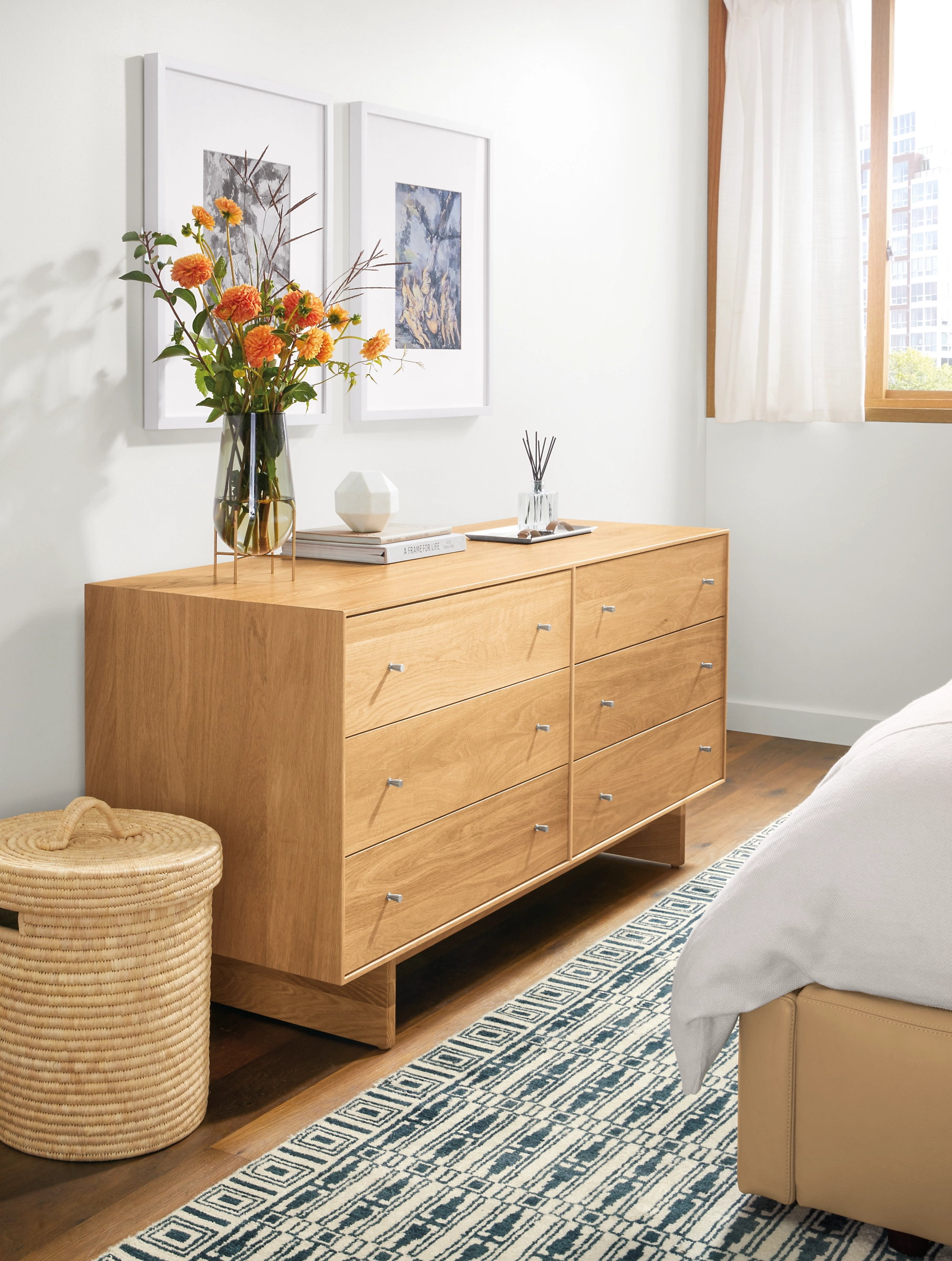 Built to be rock solid, this modern dresser with wood base is handcrafted in West Virginia by skilled artisans, who sign the back of each piece. The natural grain of sustainably sourced U.S. solid wood is the perfect backdrop for the sleek, timeless design of this collection.