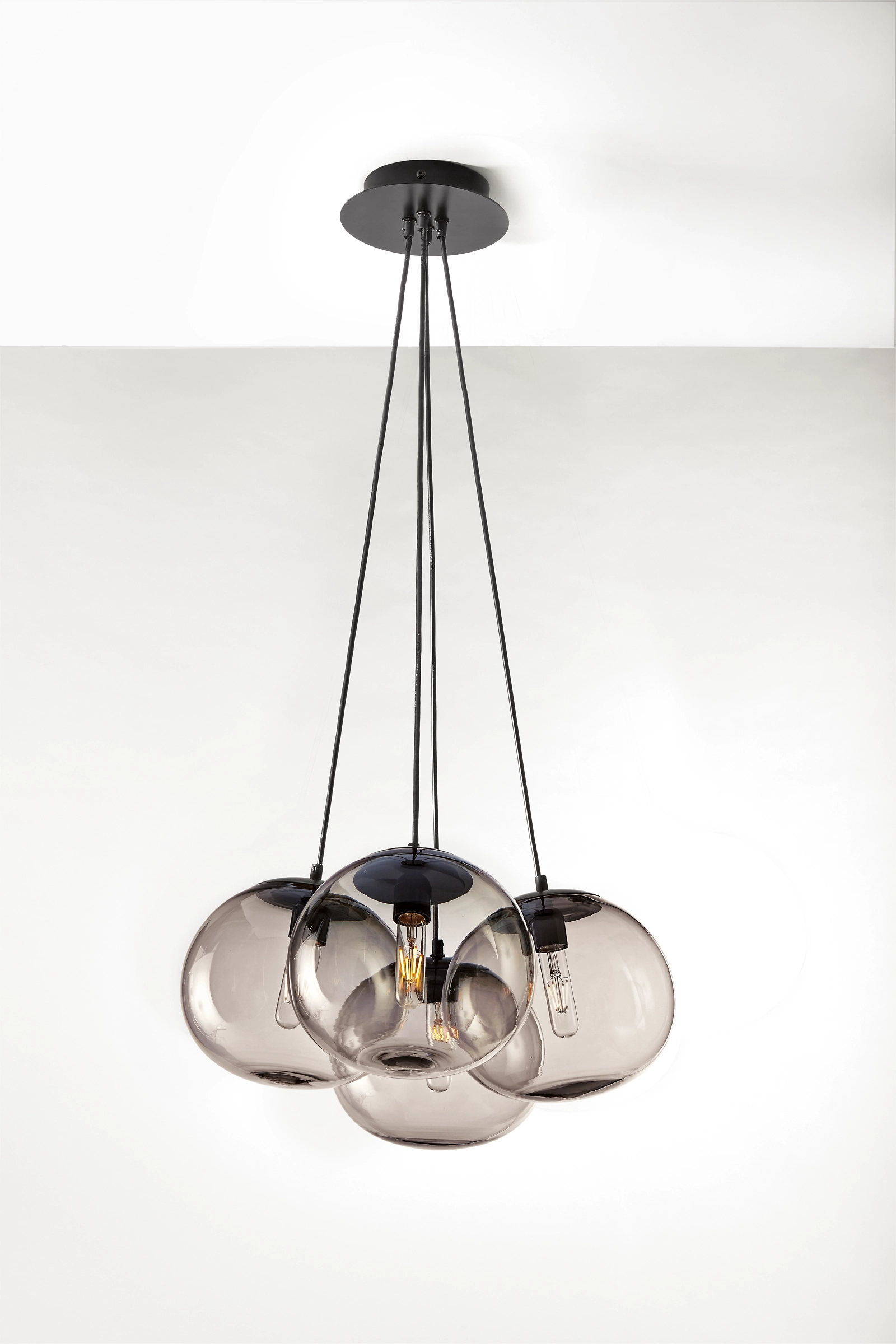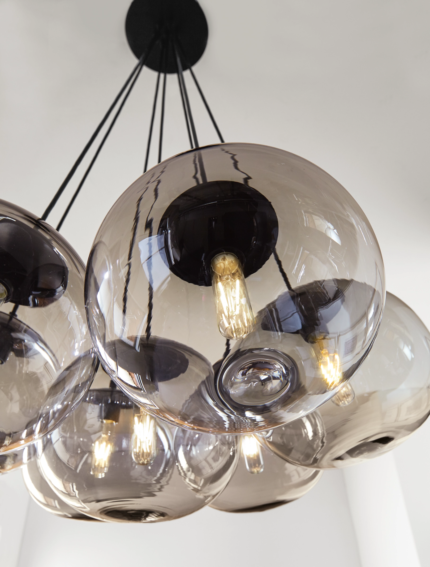 With a cluster of large glass spheres, our Humboldt chandelier brings together modern style and eye-catching drama. Using age-old techniques, the glass artists of Hennepin Made blow the globes one at a time. Available in several configurations, there’s a size to fit kitchens, dining rooms or large entryways. Each set includes a powder-coated steel ceiling canopy and energy-efficient LED bulbs.