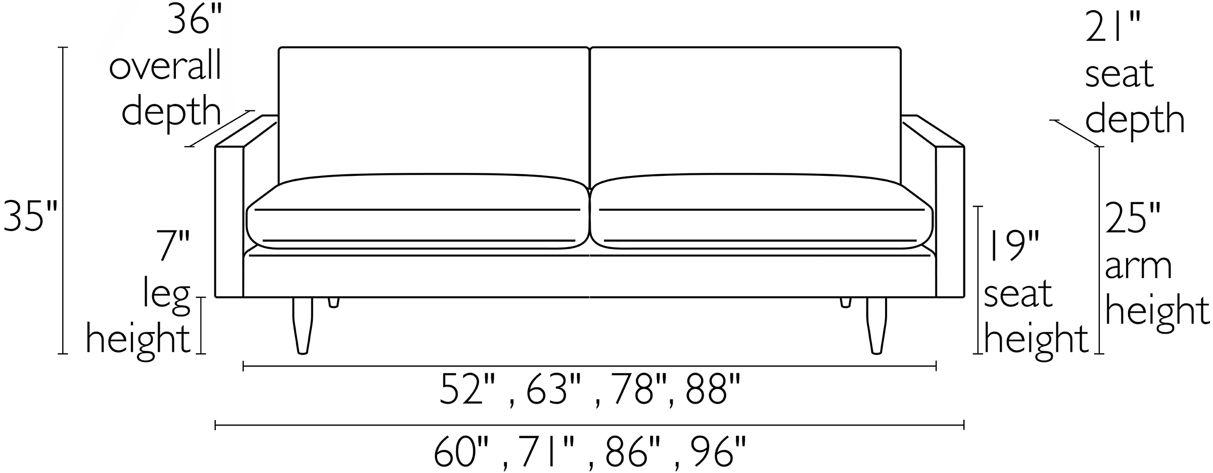 Mid-century styling meets modern comfort in the Jasper sofa. Narrow arms make the most of the seating space, while elegant legs give Jasper a light profile. Plush, blend-down cushions envelop you in comfort and the smaller-scale frame won’t overwhelm your space.