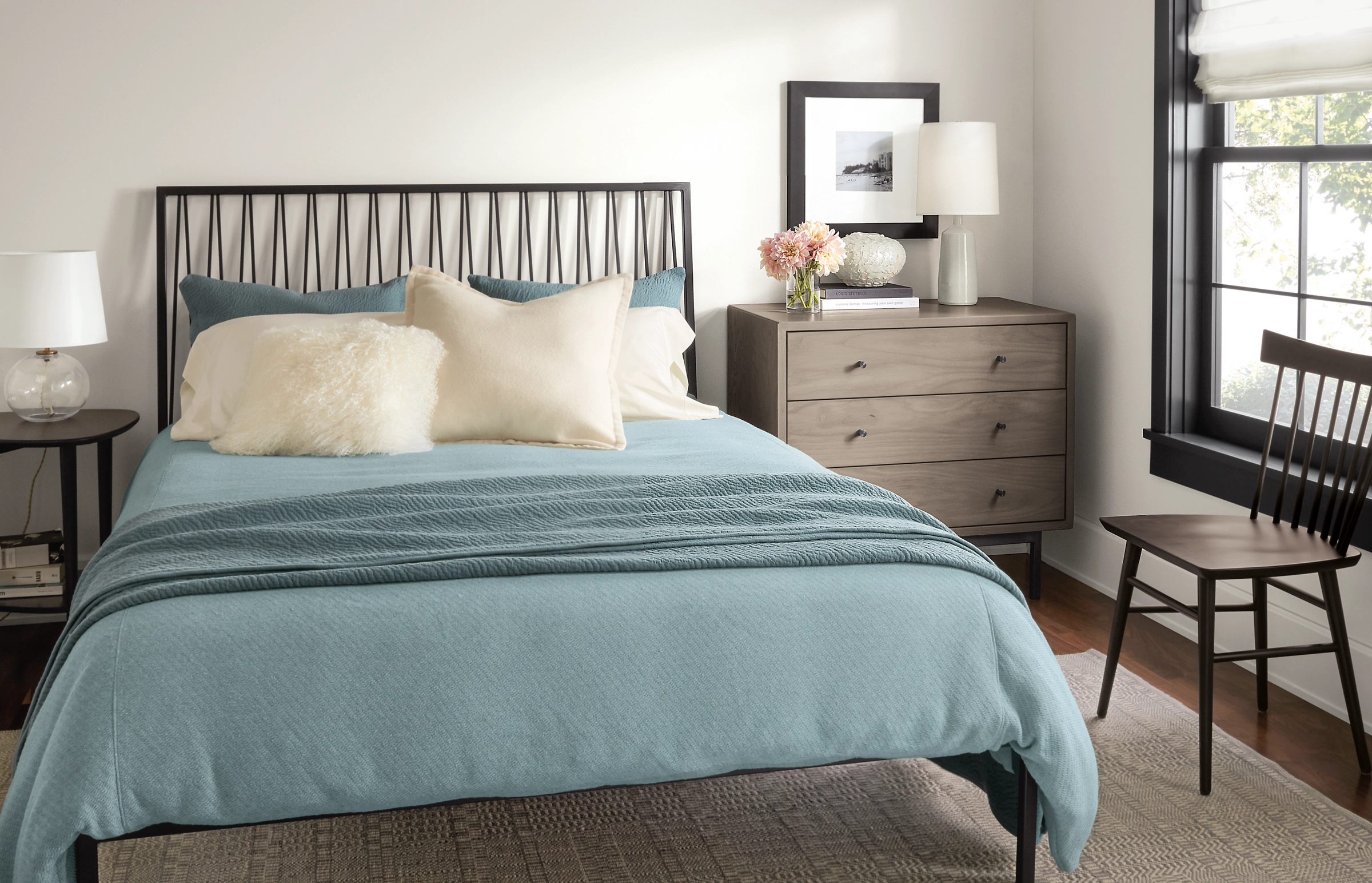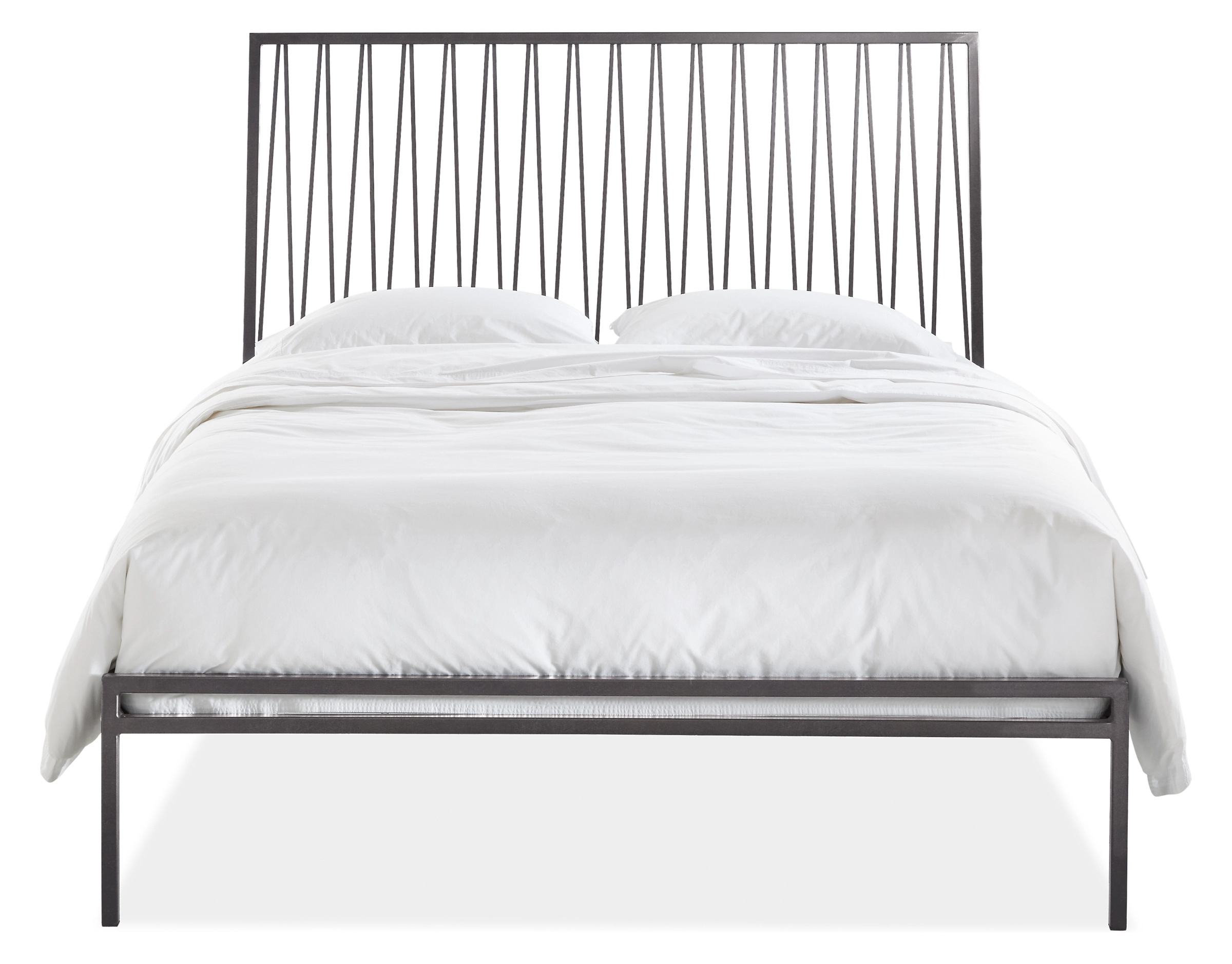 The Minnesota-made Jennings bed is crafted from durable steel with an intricate silhouette that’s inspired by a classic stairwell railing. The headboard is slightly pitched so you’re comfortable sitting and reading in bed, and its tall profile is as much a headboard as it is a work of art. Choose from a variety of colors to make it uniquely yours.