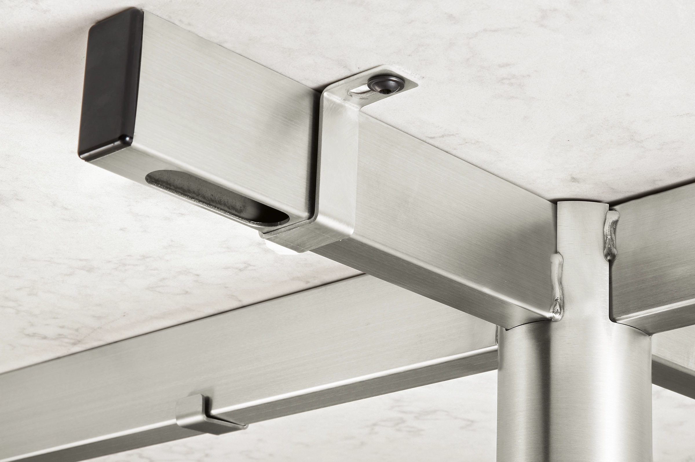 - Considerations: lift table from the base only; disassemble top from base before moving; do not sit or stand on the table surface