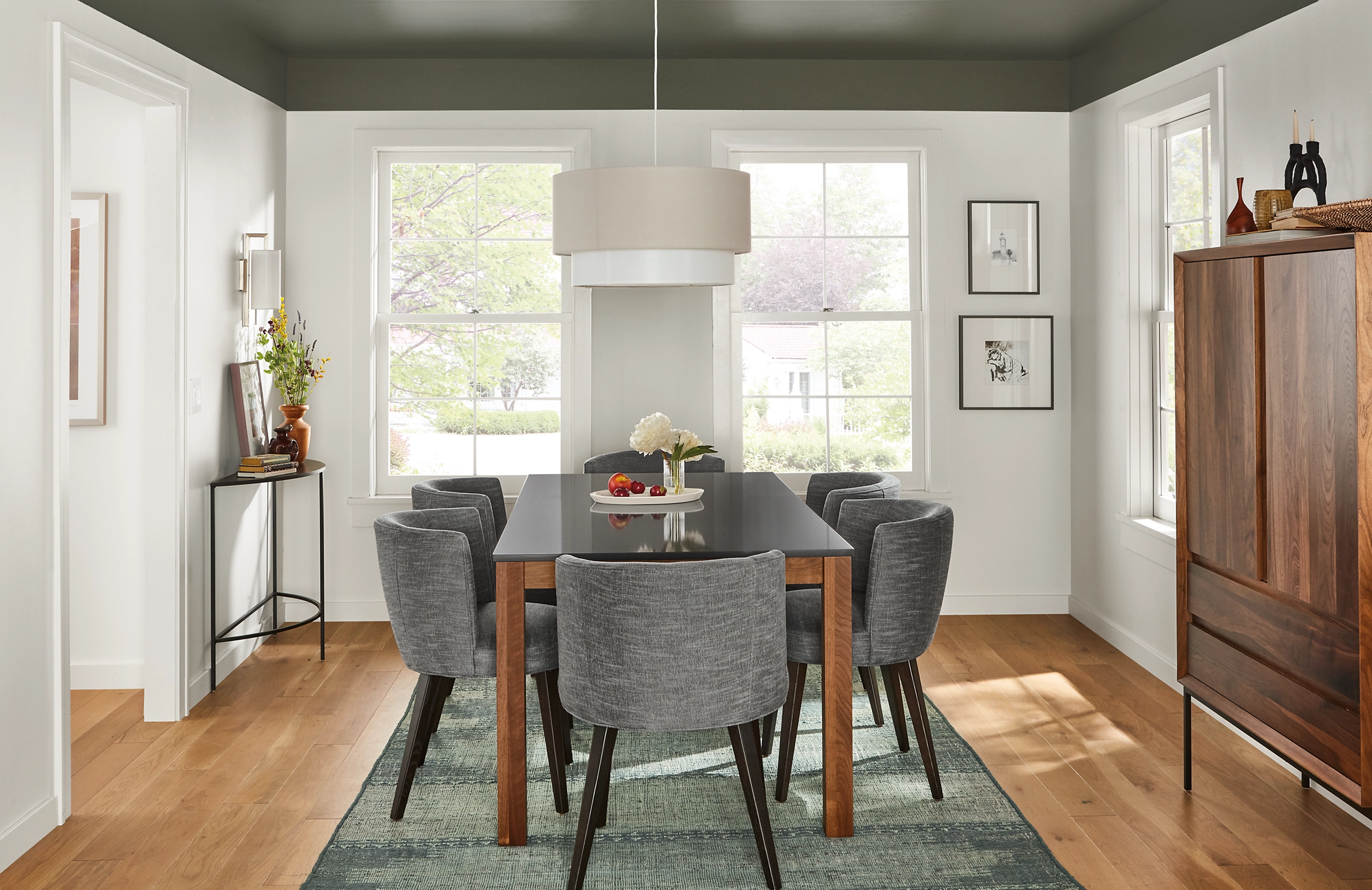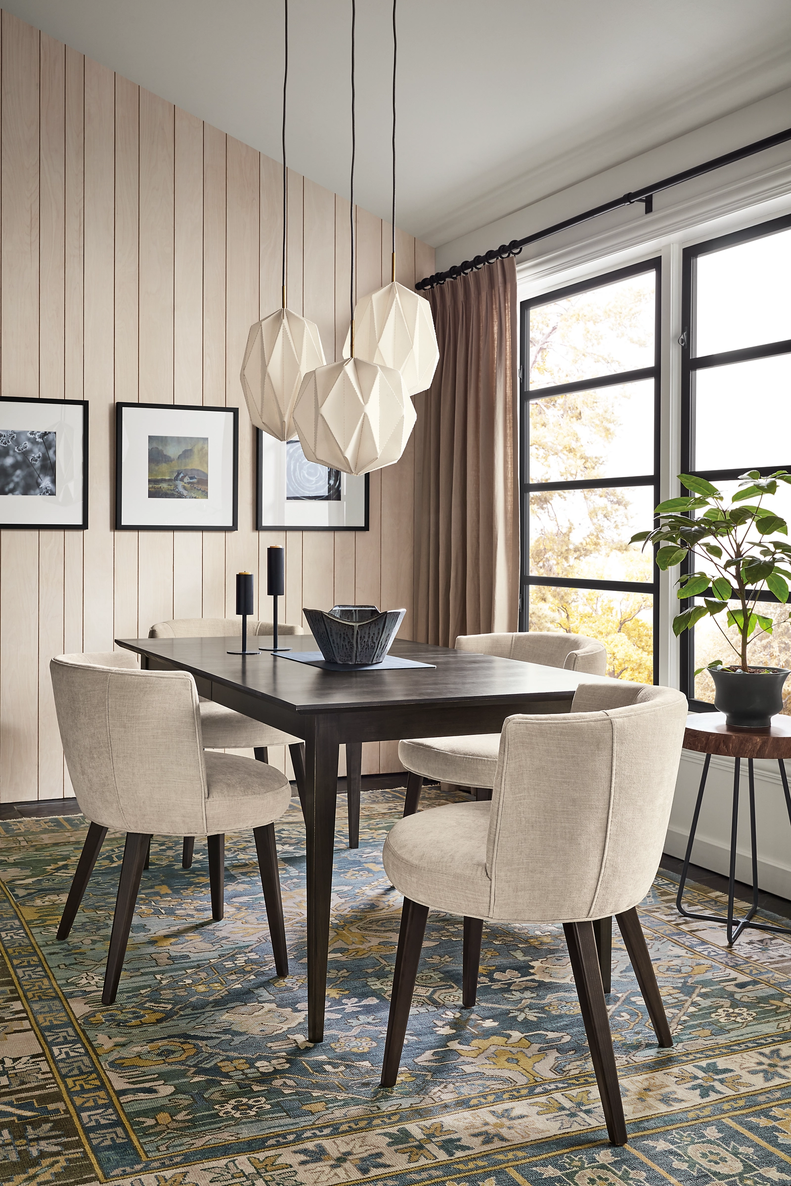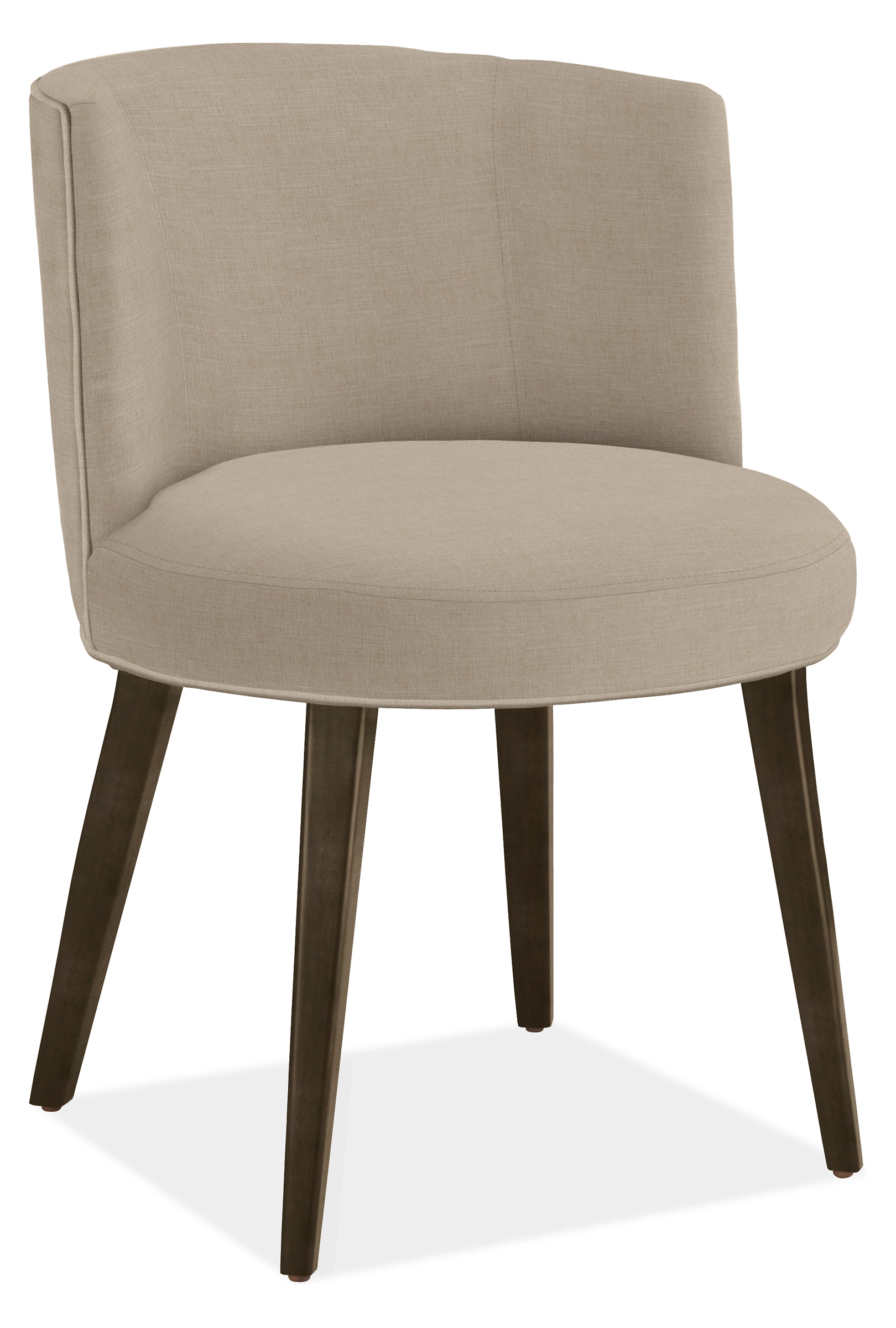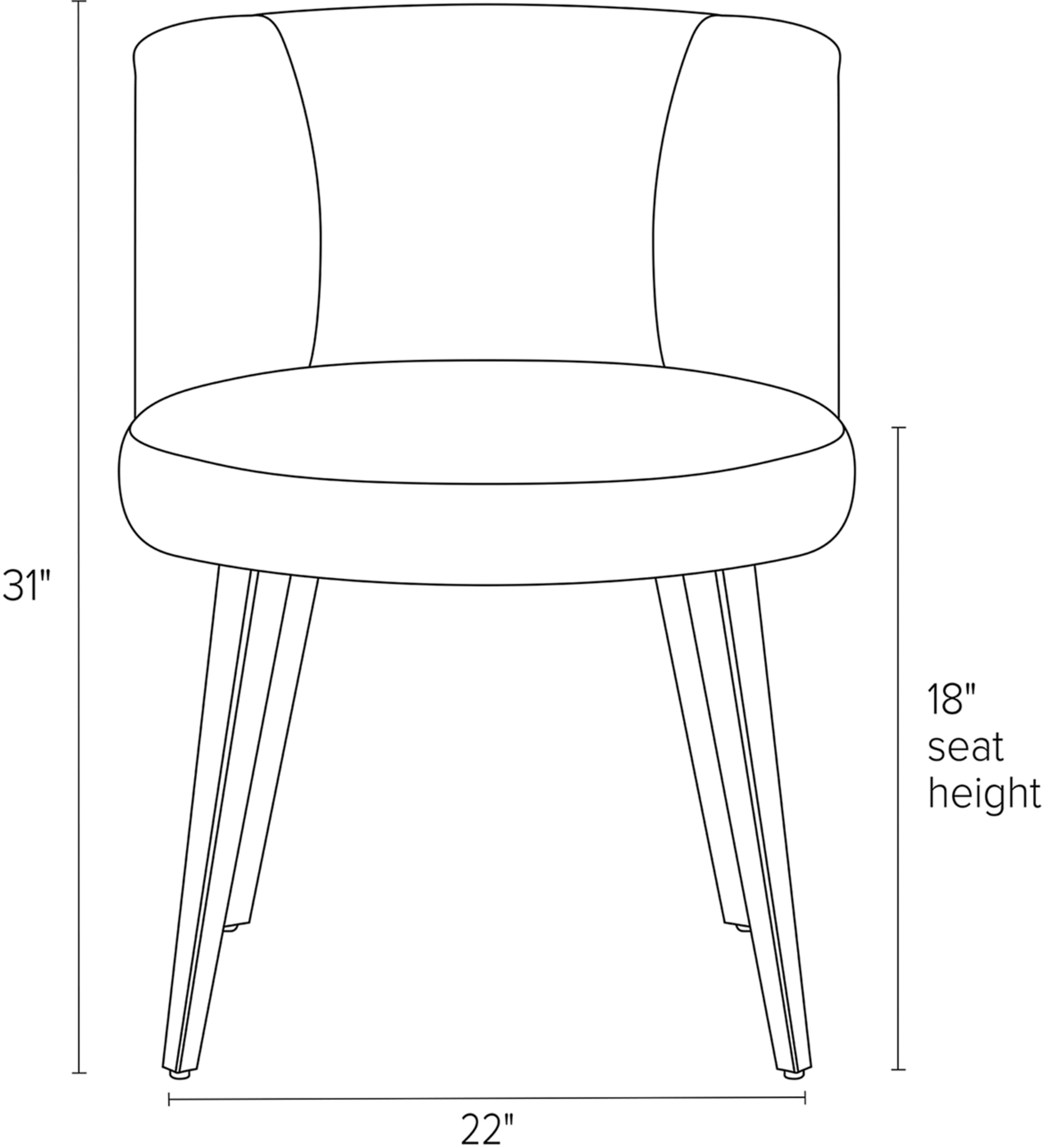 Our June dining chair offers both the fresh aesthetic and luxurious comfort any modern dining room needs. Expertly tailored upholstery and tapered legs, along with a rounded back, provide the style and comfort necessary to sit back and linger after dinner.
