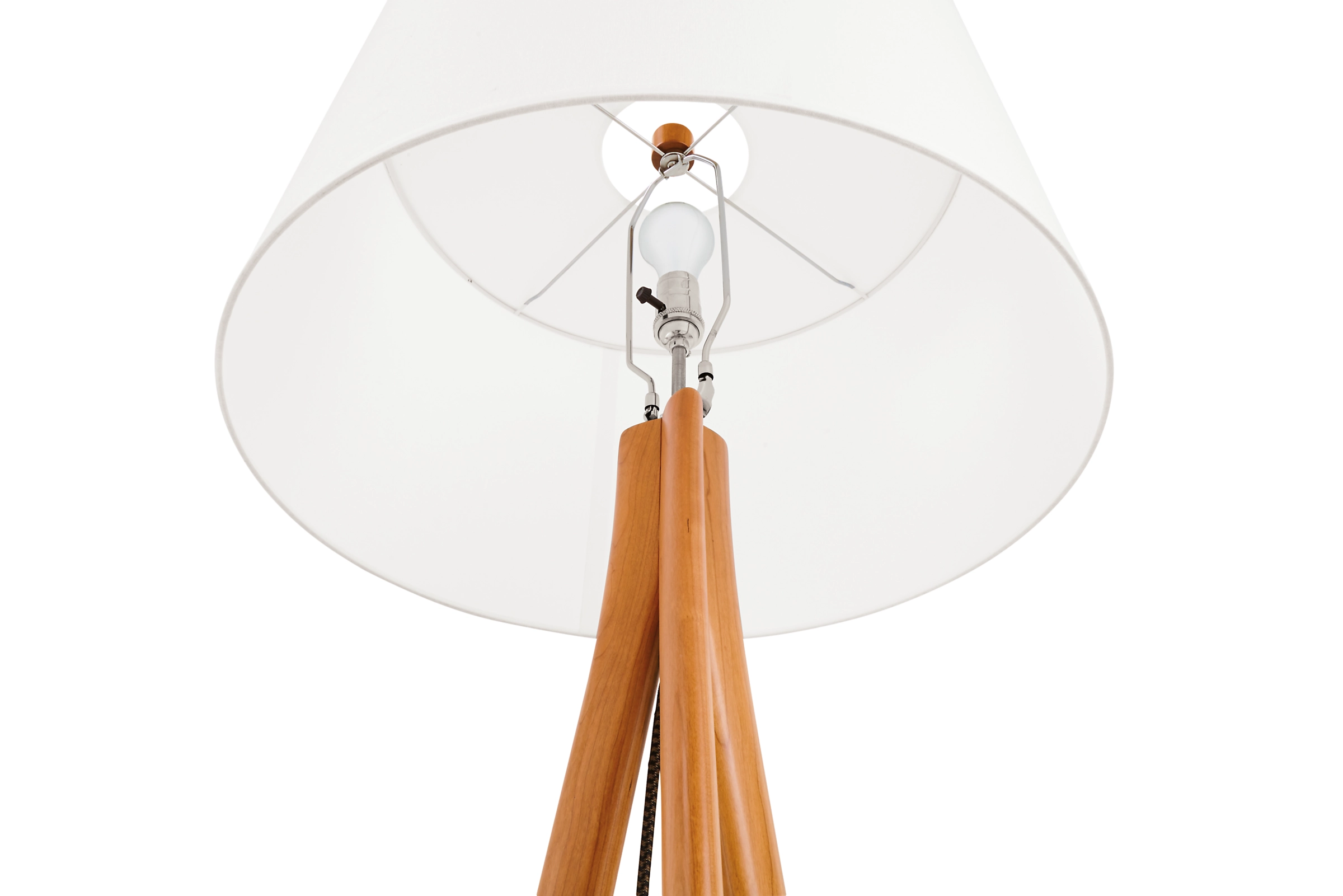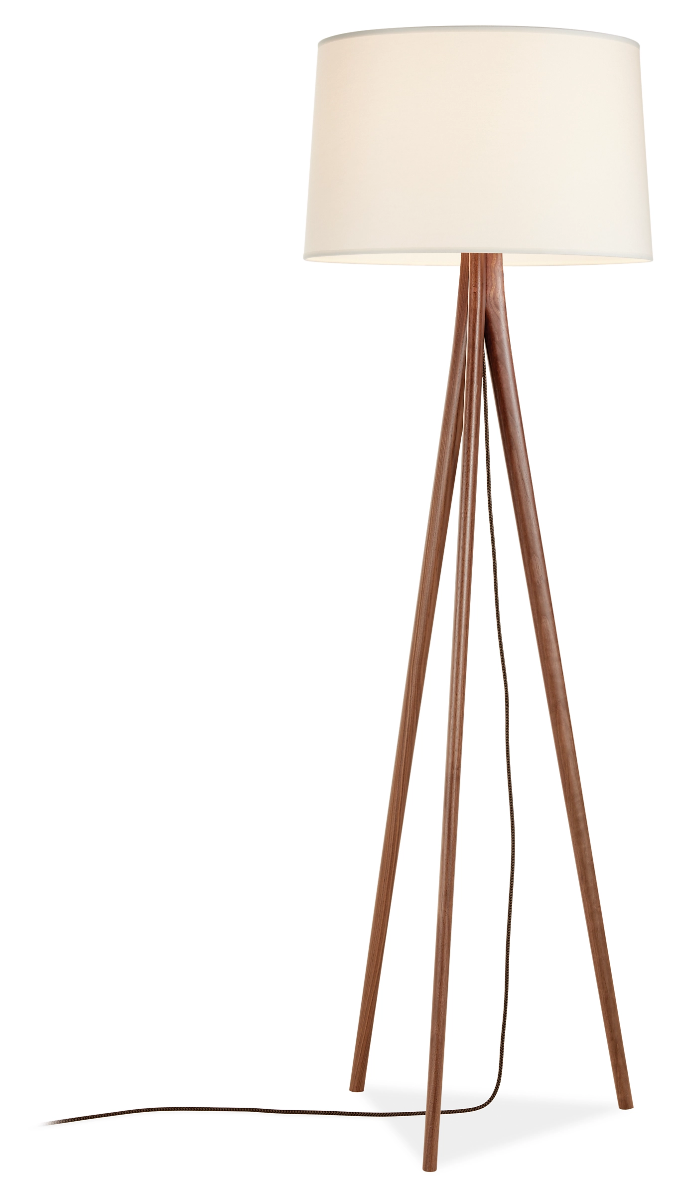 With its solid wood, tripod base, our Lane floor lamp brings architectural character to any room. The shade allows diffused light to glow through, and a fabric-covered cord adds a unique finishing touch.