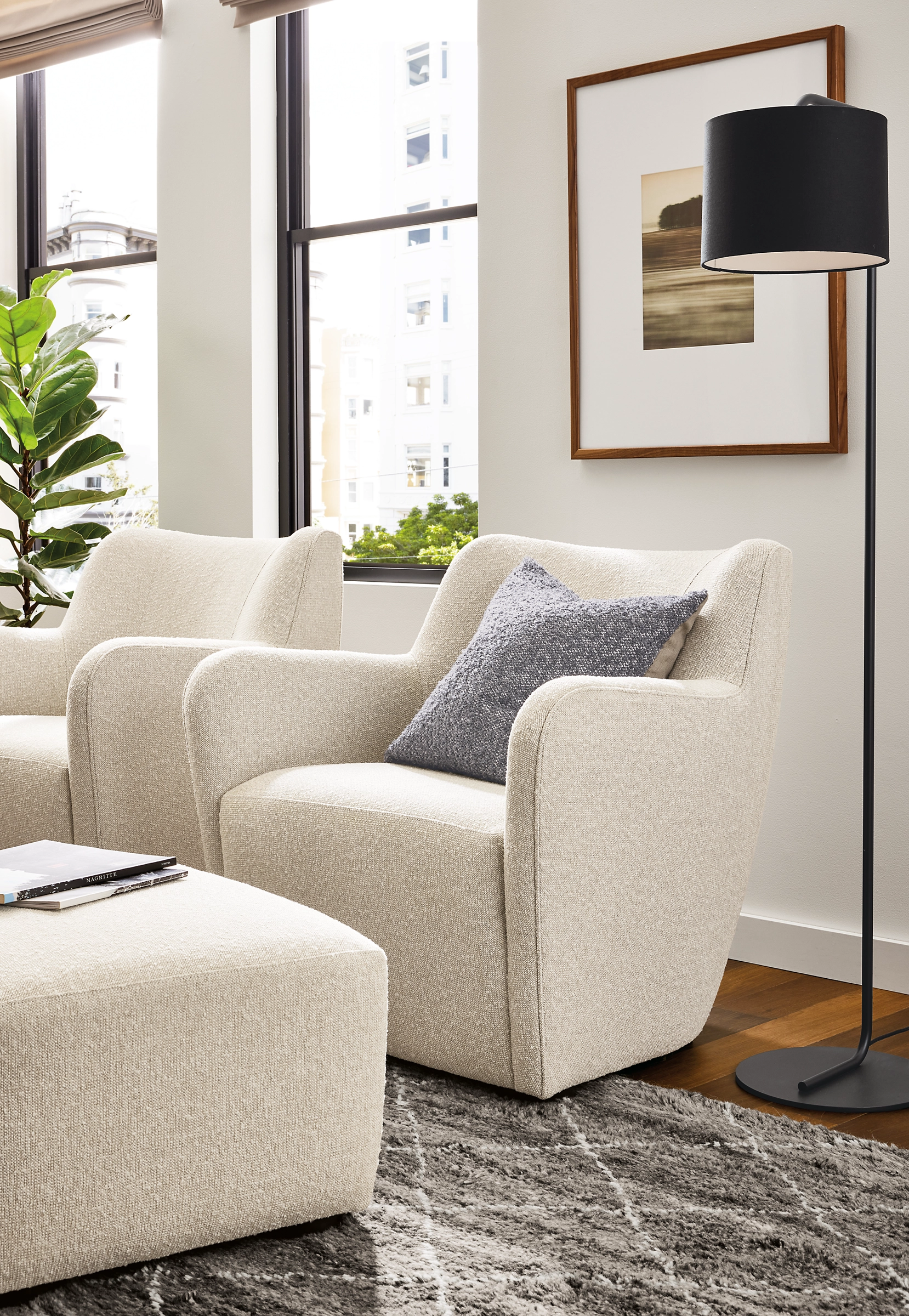 Settle in with Lily, a modern ottoman featuring a beautiful rounded shape. Made in the U.S., Lily has soft yet supportive cushioning and a variety of elegant fabric choices.