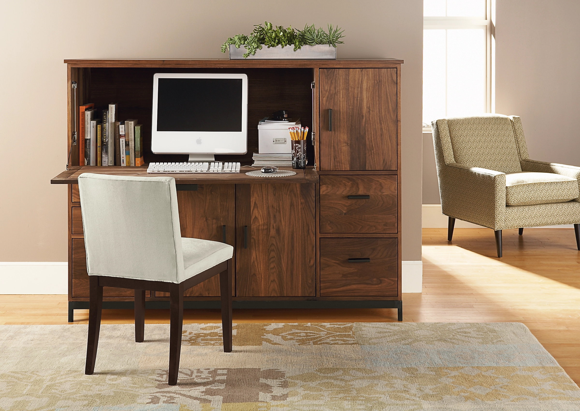 The Linear office armoire is built in a small woodworking shop in northern Wisconsin. Its refined yet durable design is perfect for any office setting. The Linear collection combines craftsmanship, functionality and timeless design, which has made it a Room & Board cornerstone since 1990.