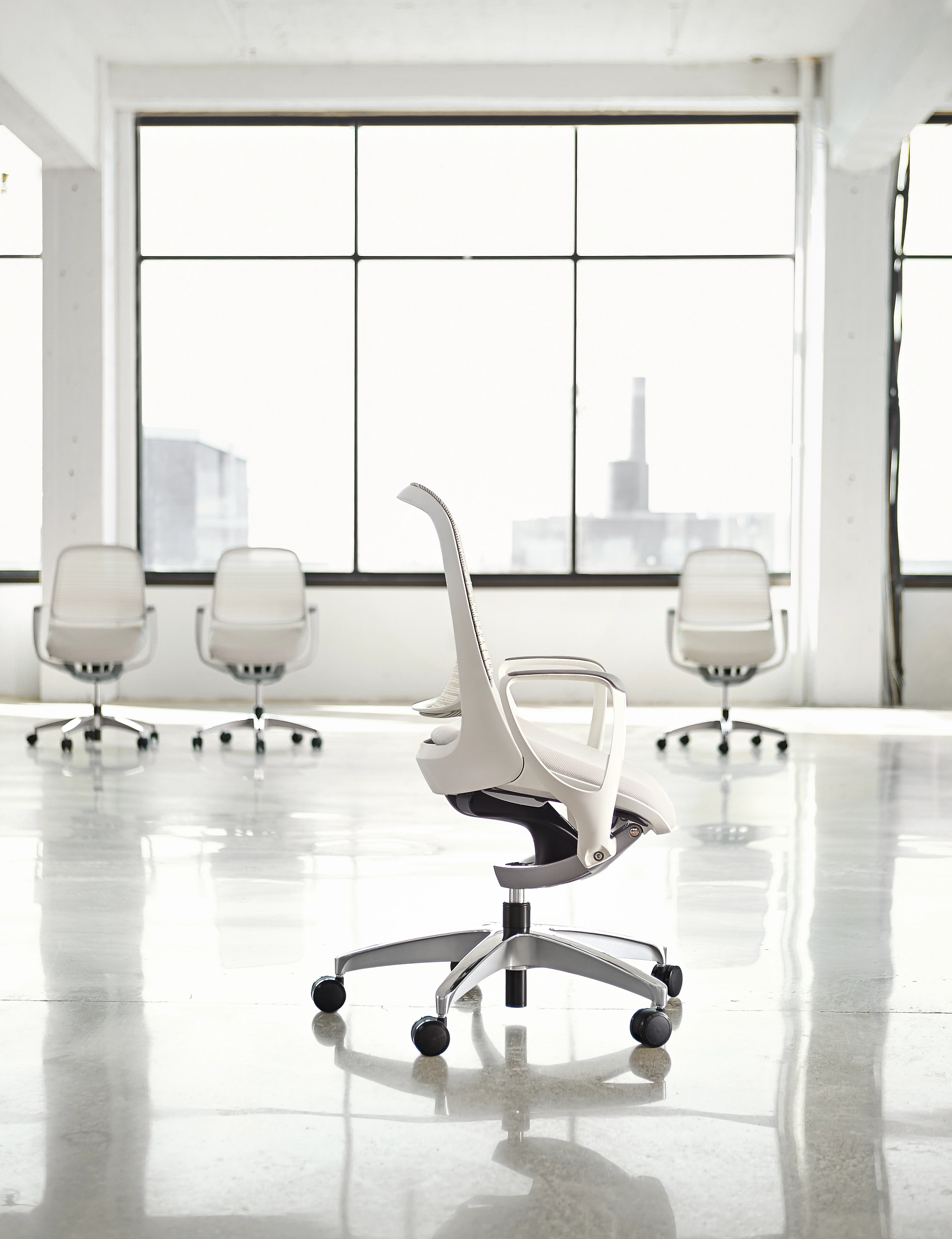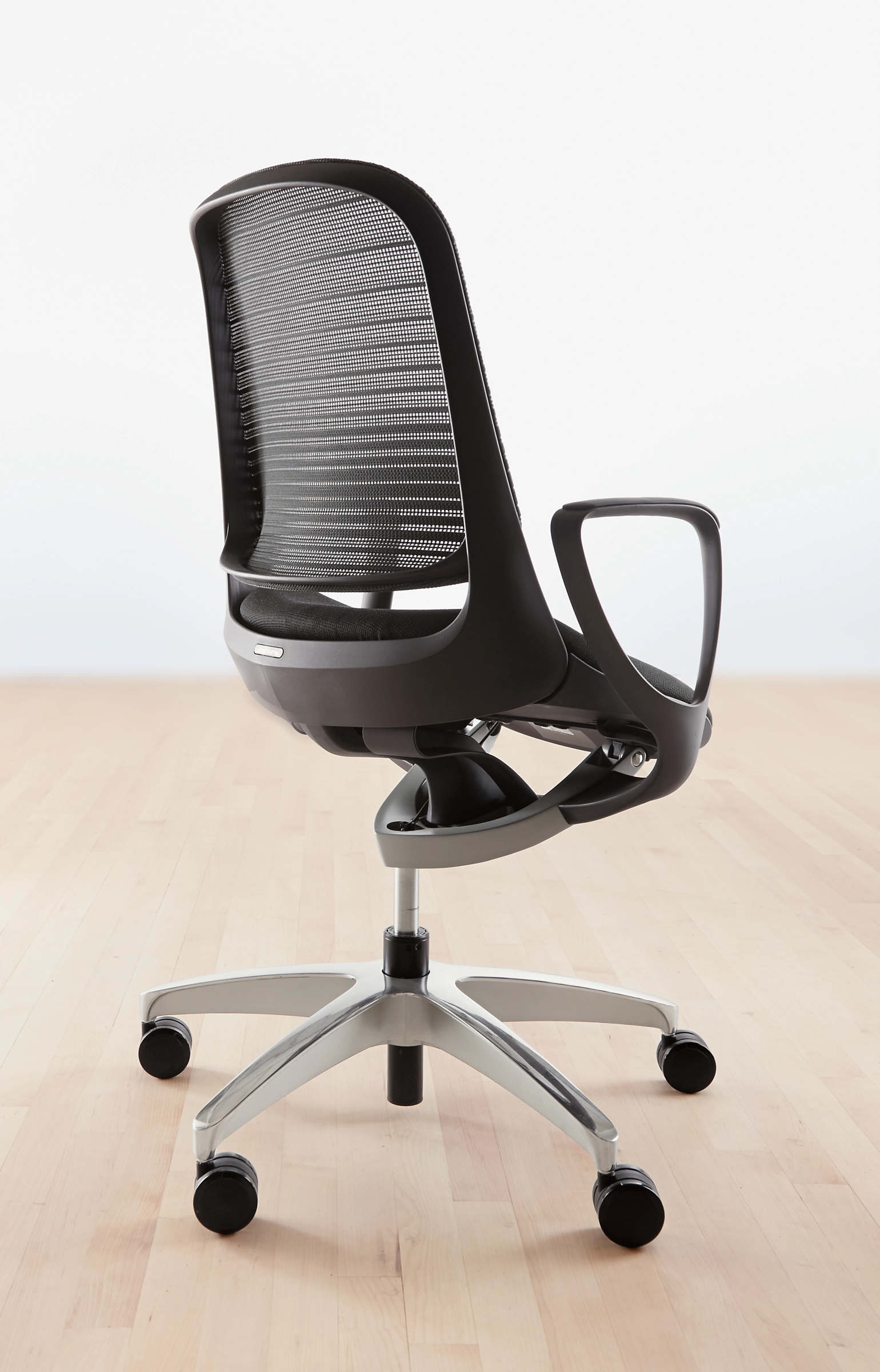 Our Luce modern office chair features a forward-leaning seat that absorbs impact for easy transitions between sitting and standing. Developed by Okamura in collaboration with OKI, a company that specializes in robot technology, Luce has self-adjusting reclining tension and high-density mesh that provides firm lumbar support.