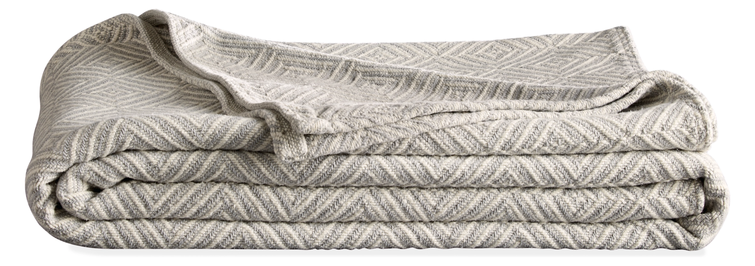 One of our U.S. textile mill partners developed this two-tone diamond pattern and colors exclusively for Room & Board. Artisans weave the beautiful design on jacquard looms and sew the blankets in their Maine workshop. Made from preshrunk, 100% cotton yarns, the blankets feel substantial, soft and cozy. They’re easy care, too: simply machine wash.