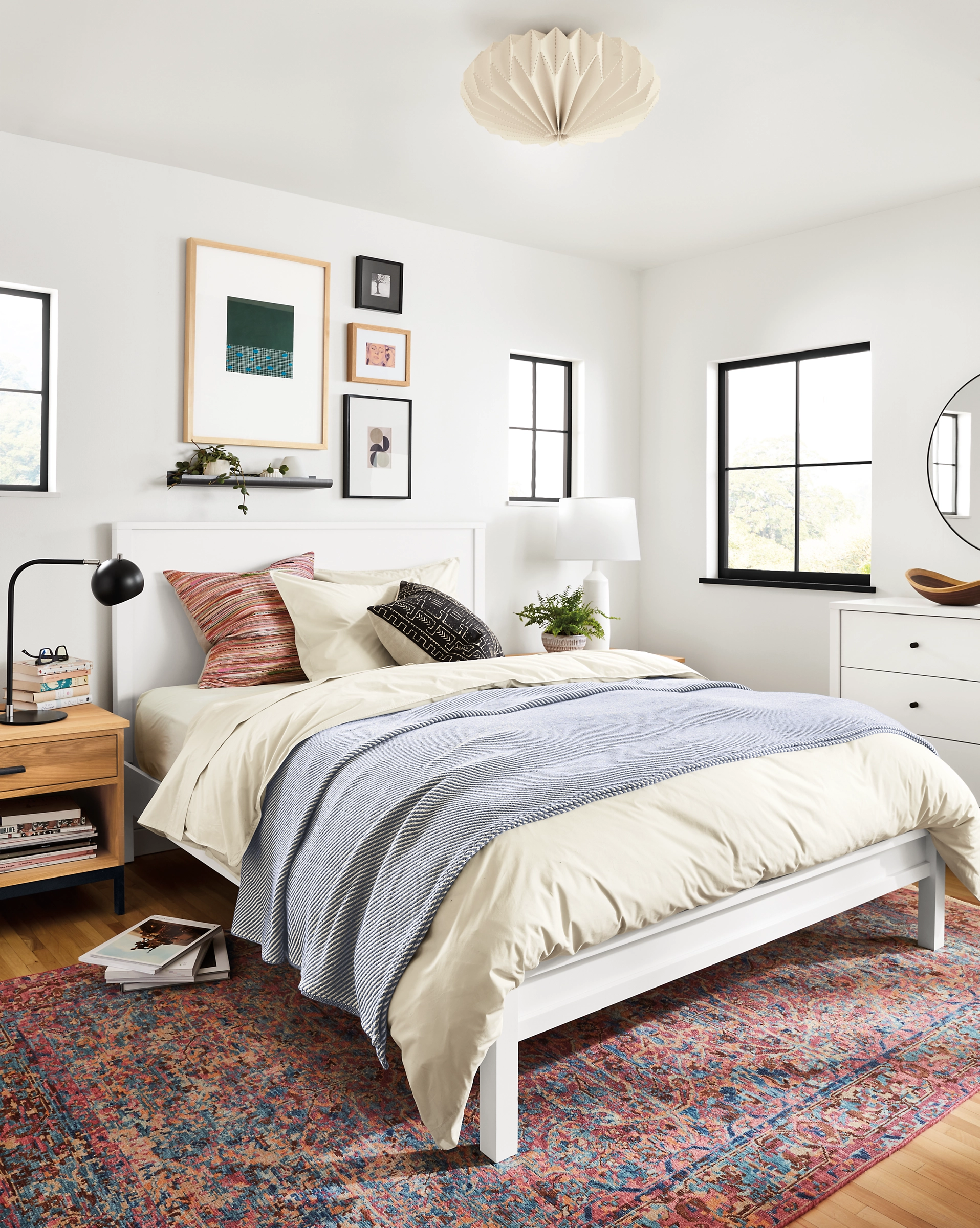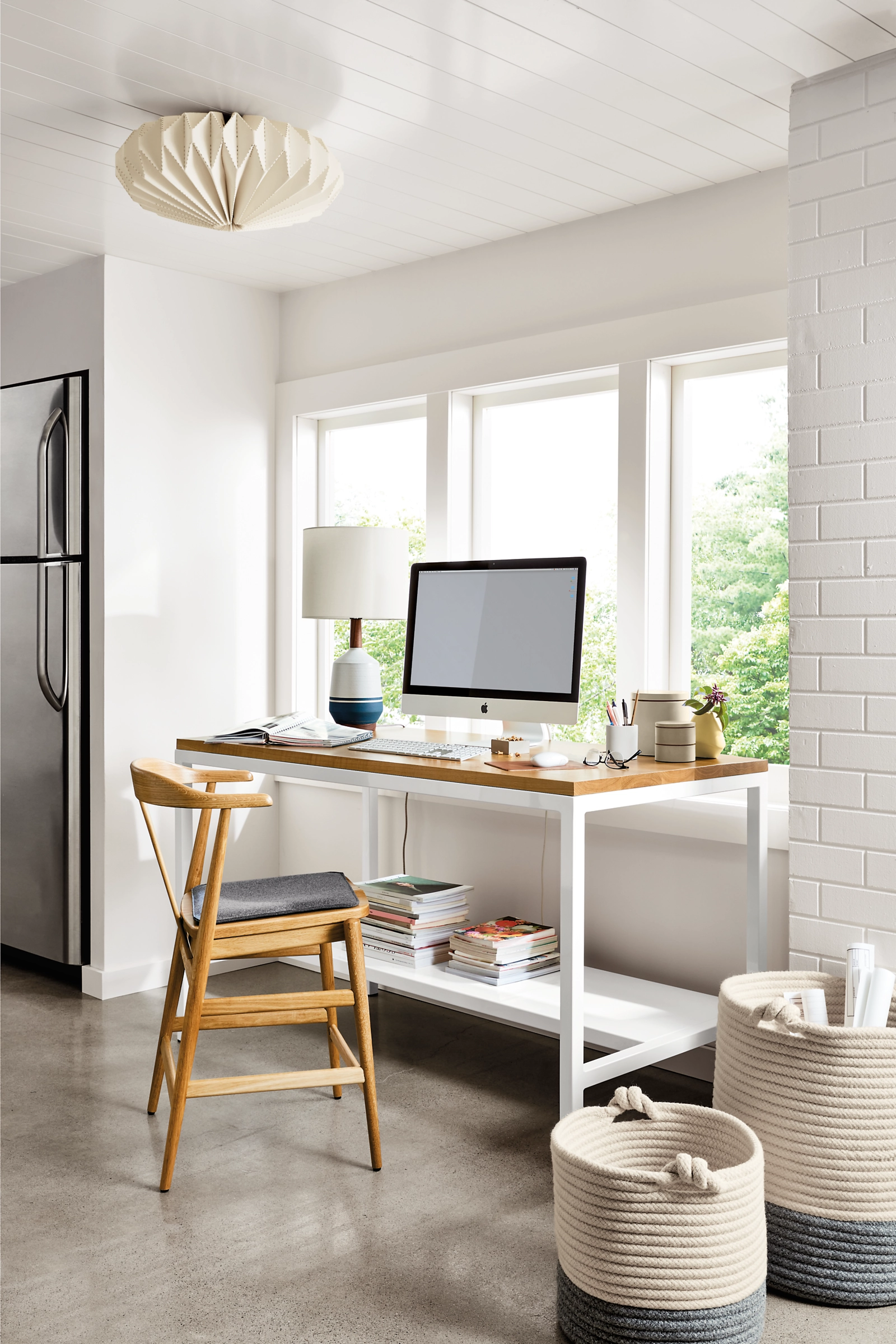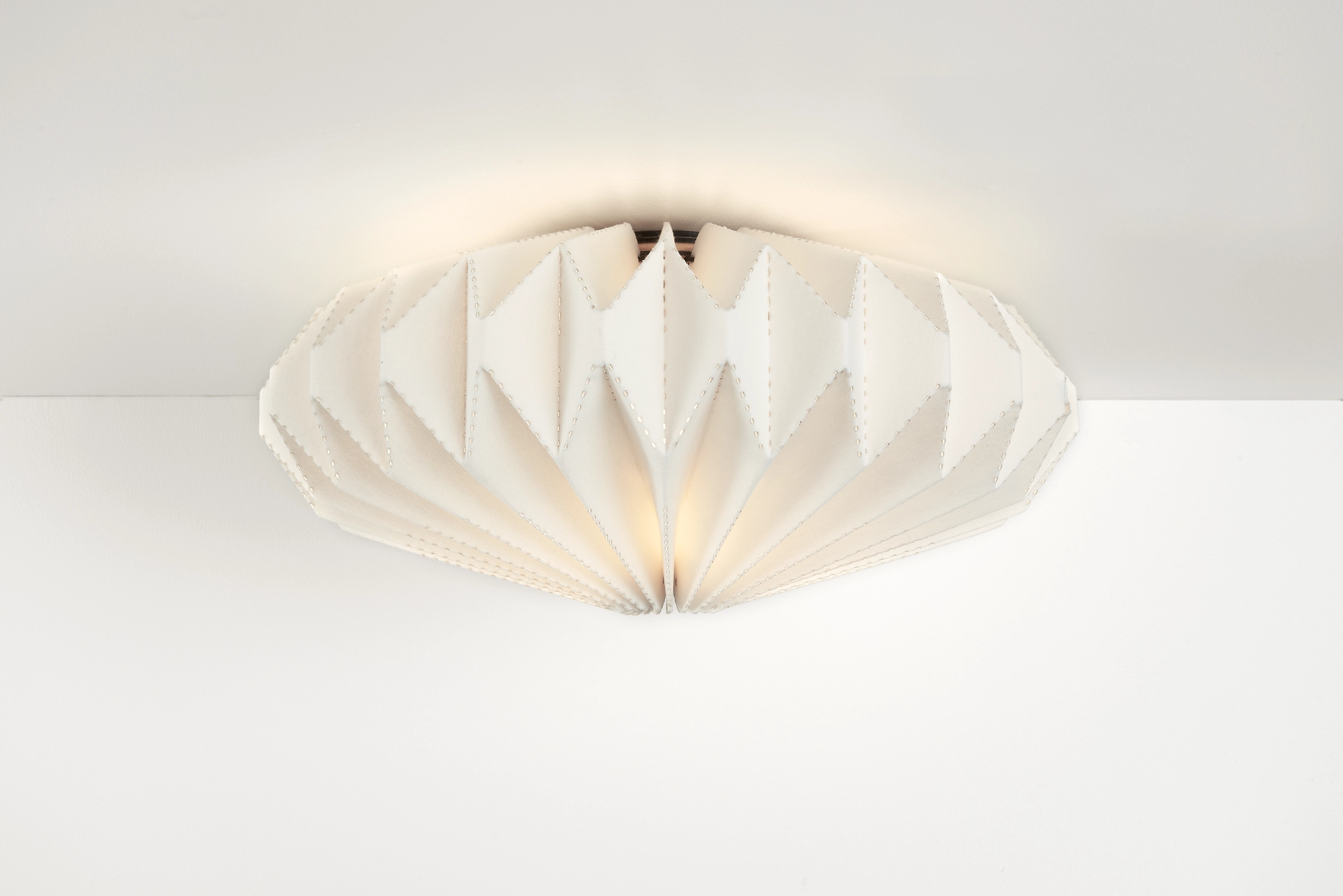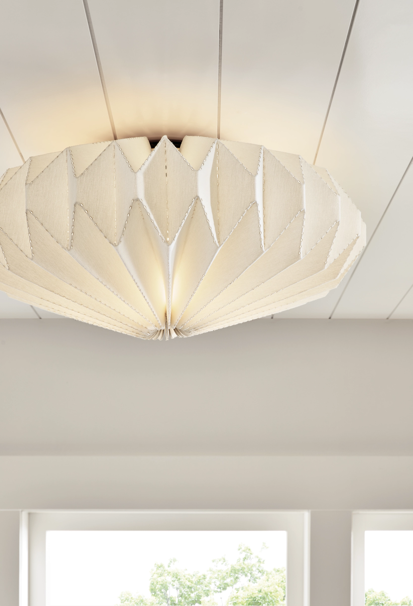 Developed in California, these origami-inspired flush-mount ceiling lights add eye-catching drama to your home. Beautiful material is laser-cut and then carefully folded and stitched together, creating functional works of art. Light glows through both the shade and the laser-cut folds, creating an interesting pattern on the ceiling and walls. You can only find these pendants at Room & Board.