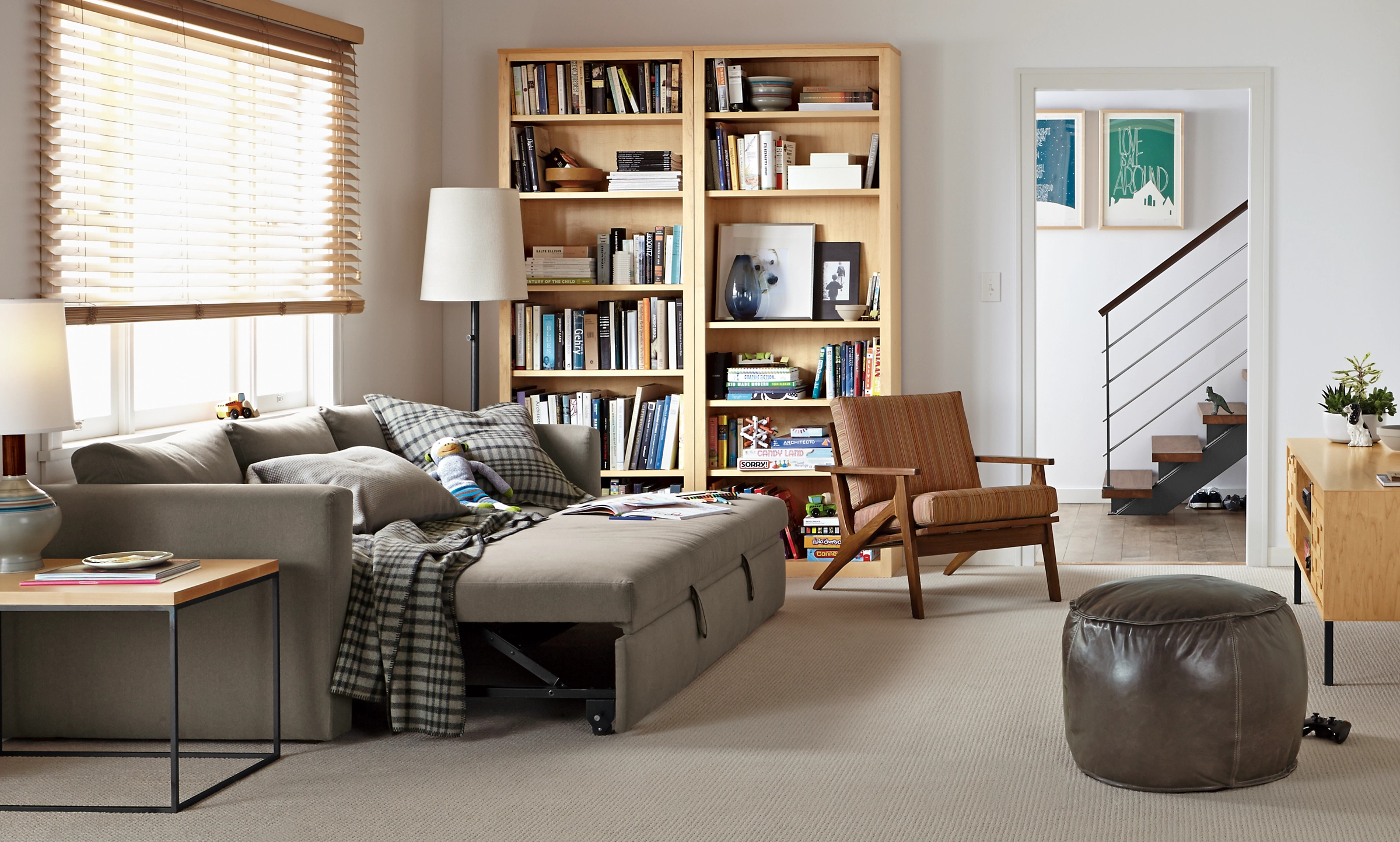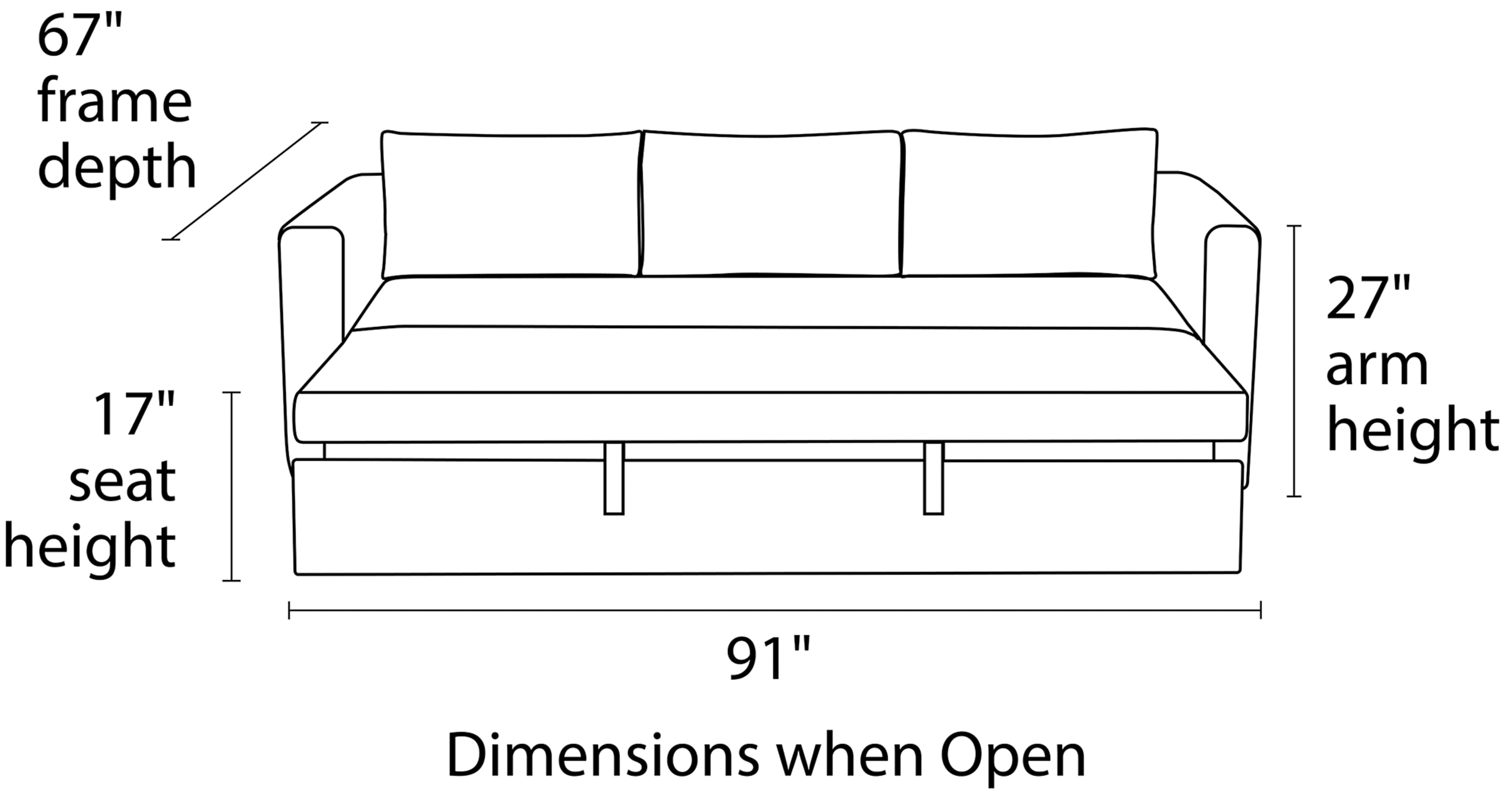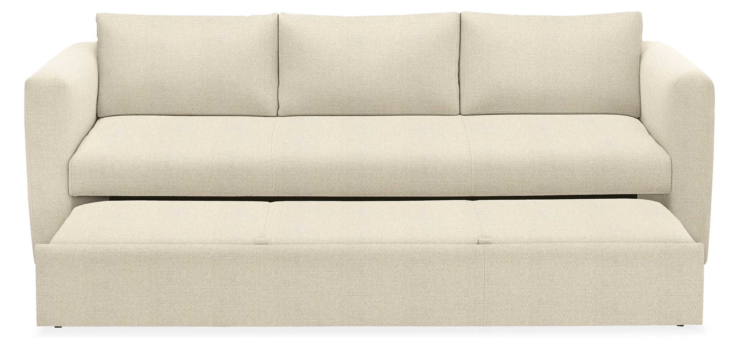 The Oxford Pop-up Platform sleeper sofa has clean modern styling you’ll love in any room, plus you can use it as a sofa, two twin beds, one queen bed or an oversized chaise lounge. Simply roll out the sofa’s front rail, and a counterbalanced mechanism lets you easily lift up the sleep surface.
