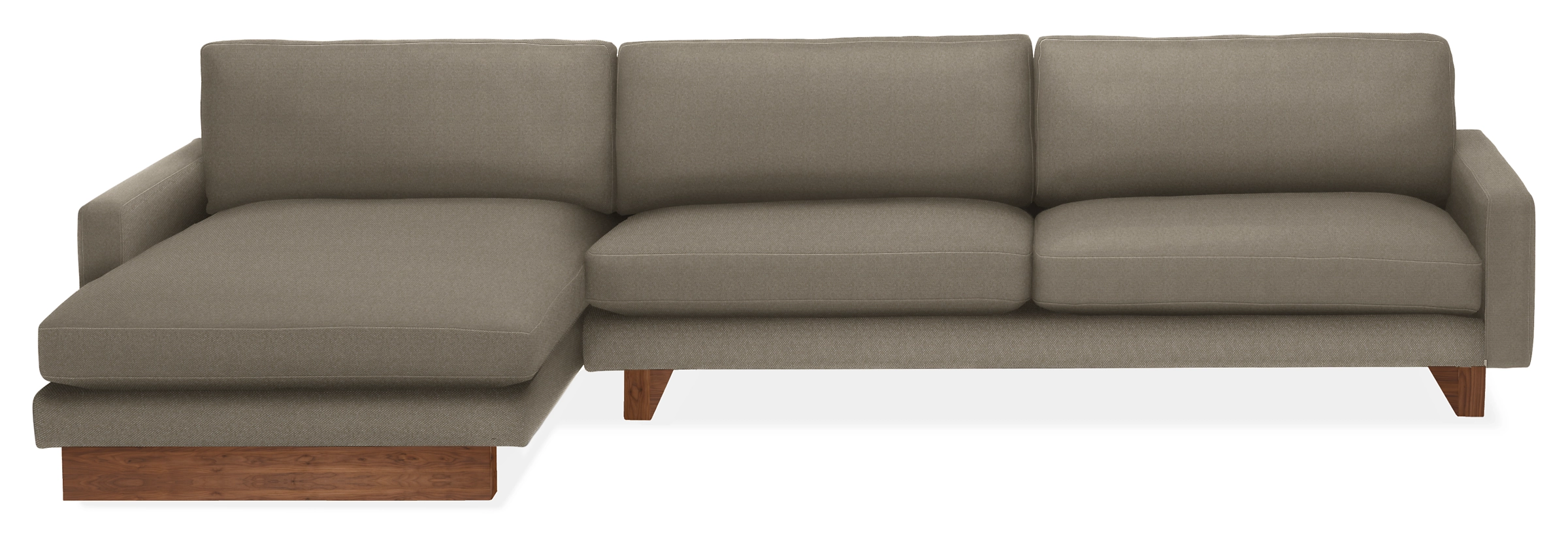 If you love modern lines but seek true comfort, the Pierson sofa with chaise is the ideal place for you to unwind. The down-blend cushions and seat depth provide generous room for relaxing, but the thin profile keeps things modern. In addition to the fabric options, you can personalize the base.