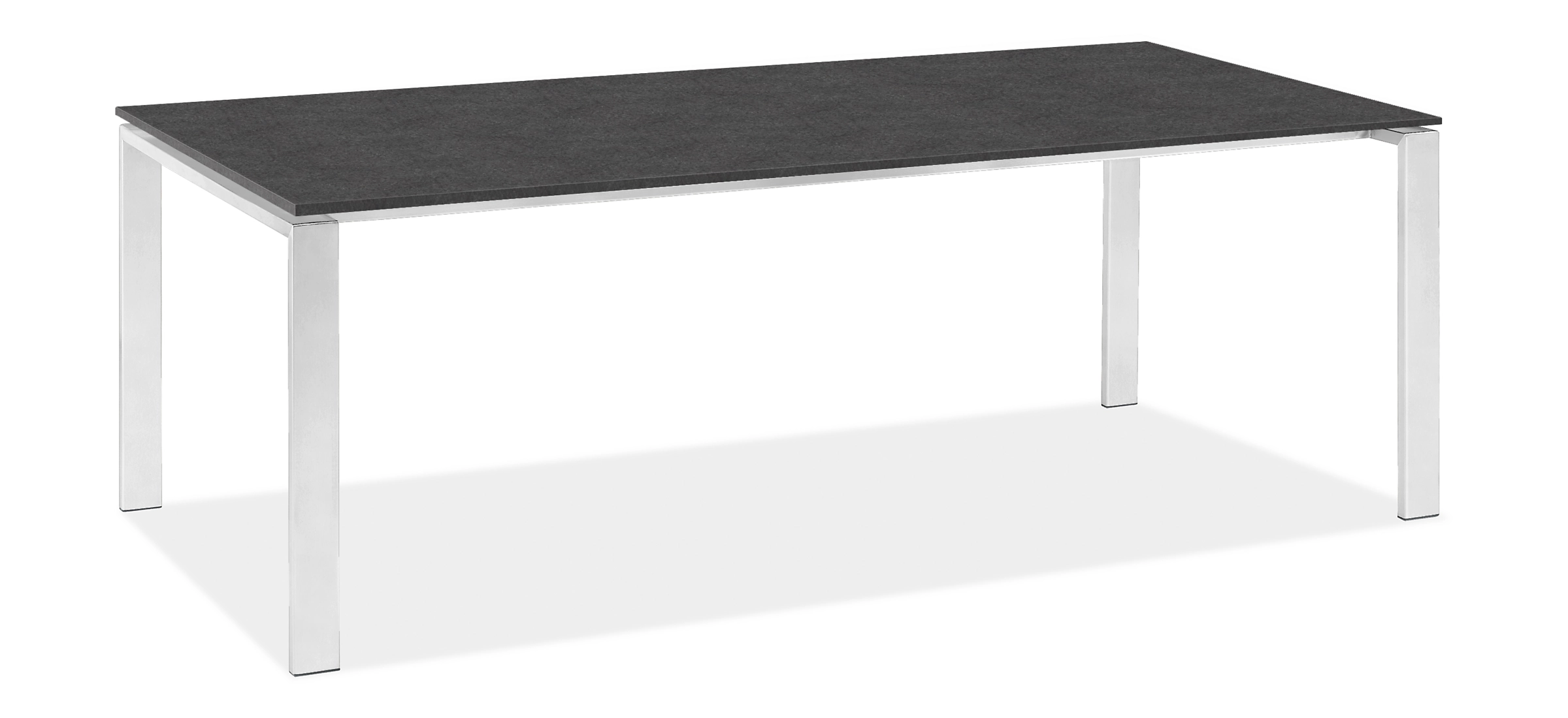 Our Rand table features a unique architectural design that provides the illusion of a floating top. The larger size makes this modern conference table ideal for meetings, while the top and base options provide customizability. The durable steel base has sleek corner-set legs to maximize seating.