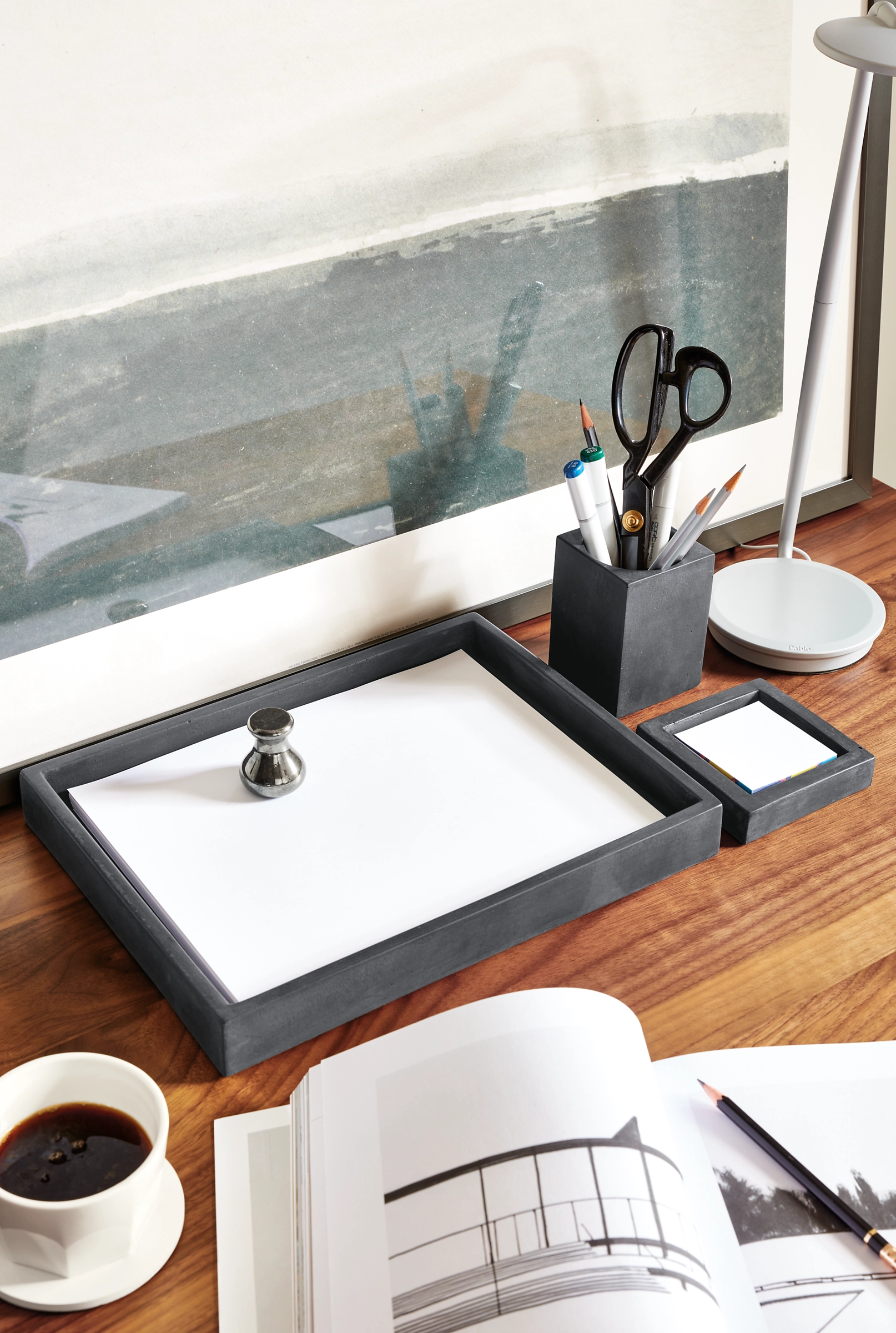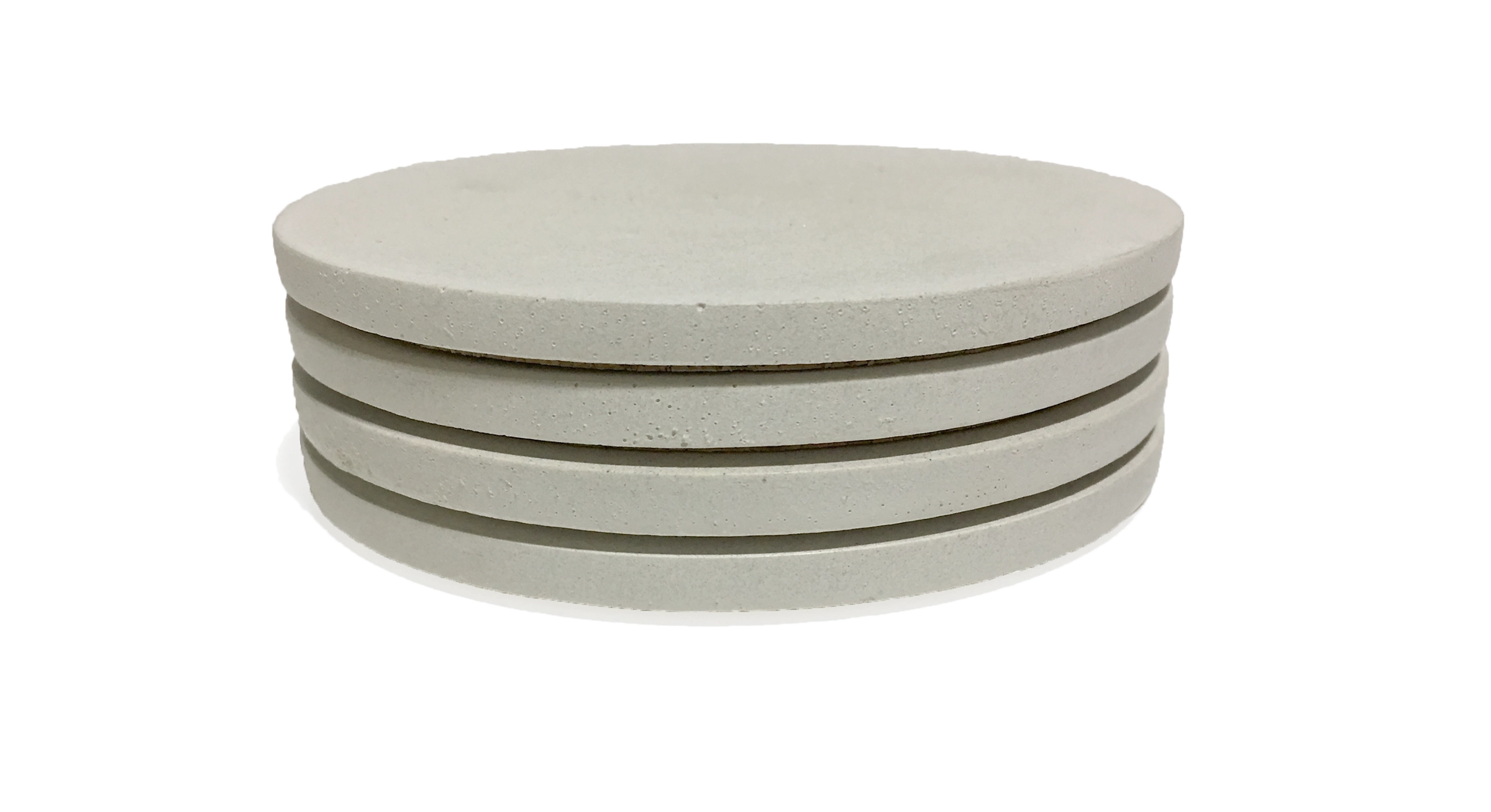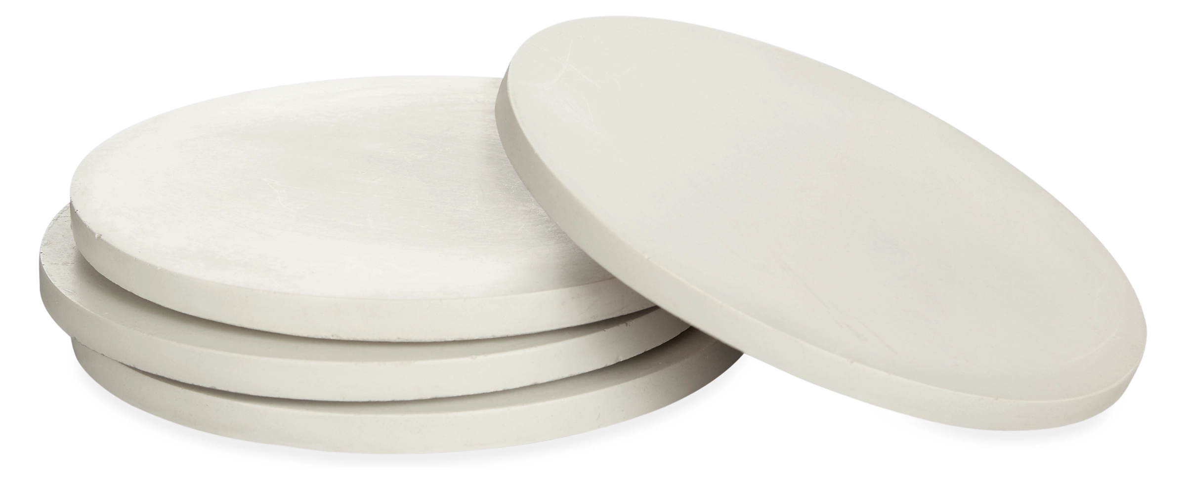 This modern coaster set is made from a special concrete formula that feels uniquely smooth. The proprietary recipe, developed by a family-run company in South Carolina, includes recycled stone dust to help keep waste out of landfills. Each coaster is hand-burnished with a sealer to protect the finish and has a cork bottom.