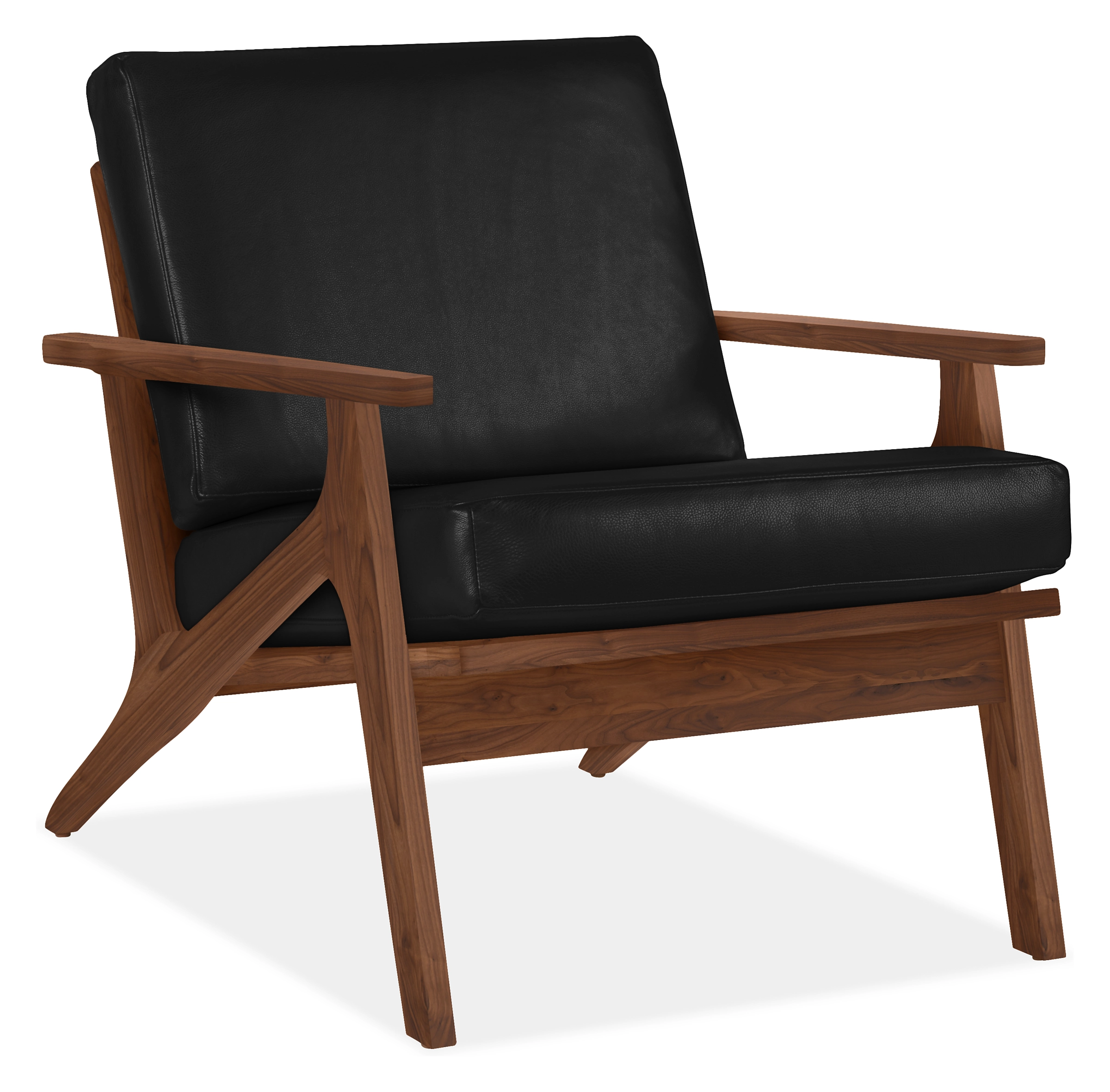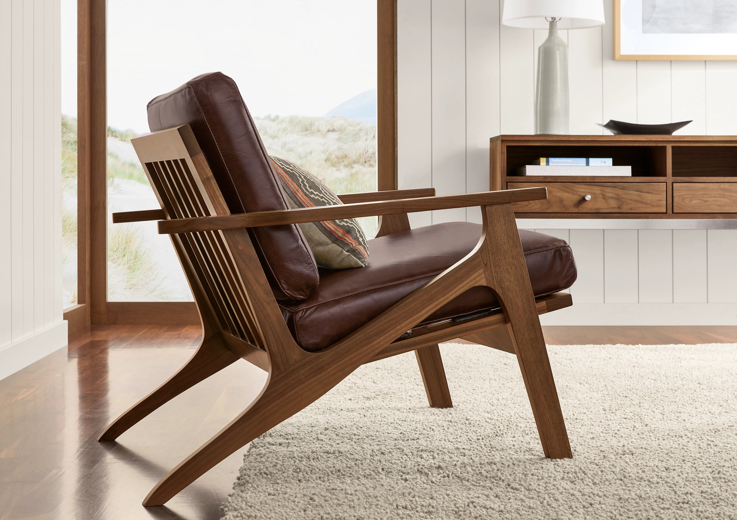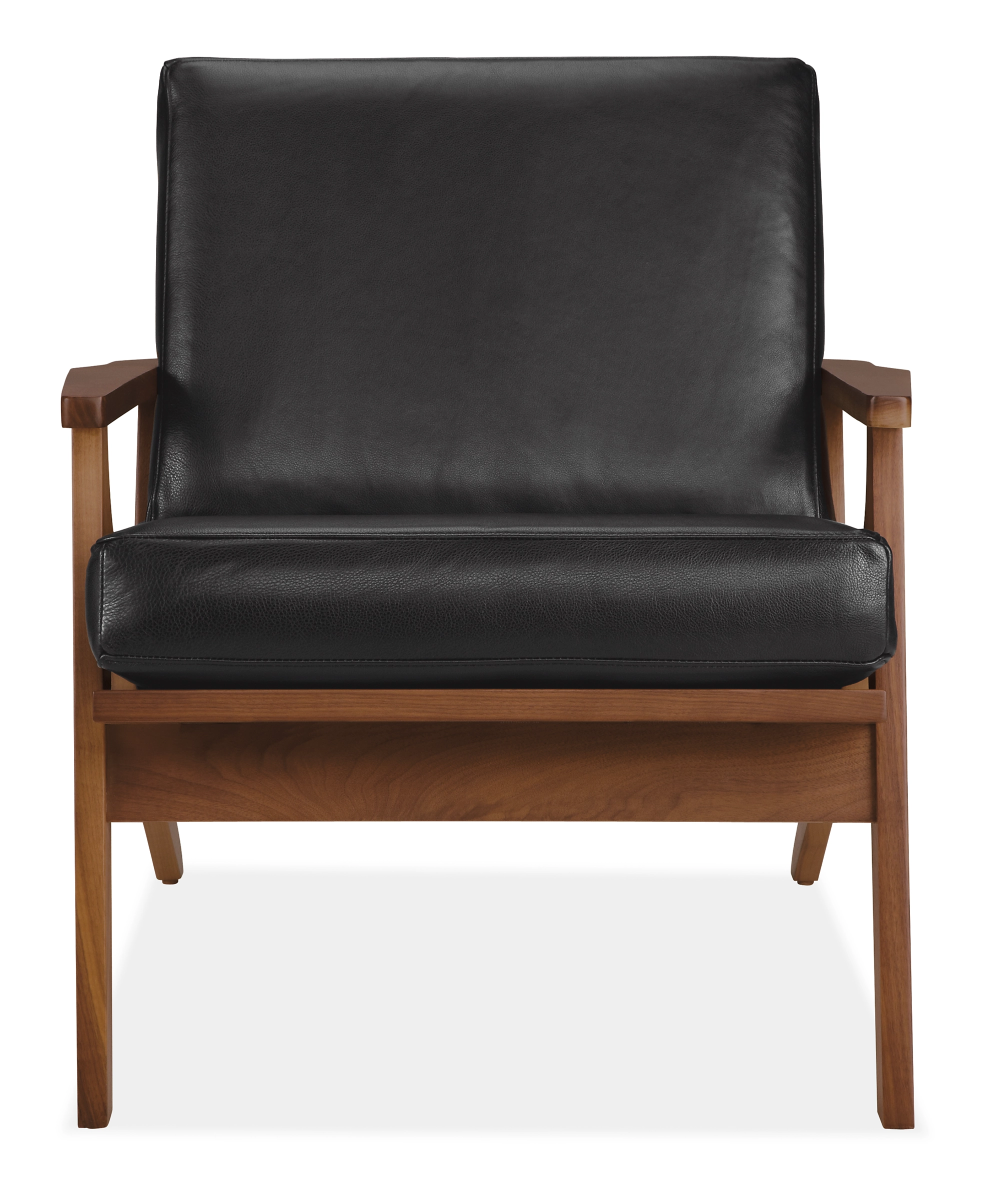 Featuring a solid wood frame with elegant angles and a loose back cushion, the Sanna leather chair evokes a mid-century feel. We updated the design to highlight a classic mix of materials.