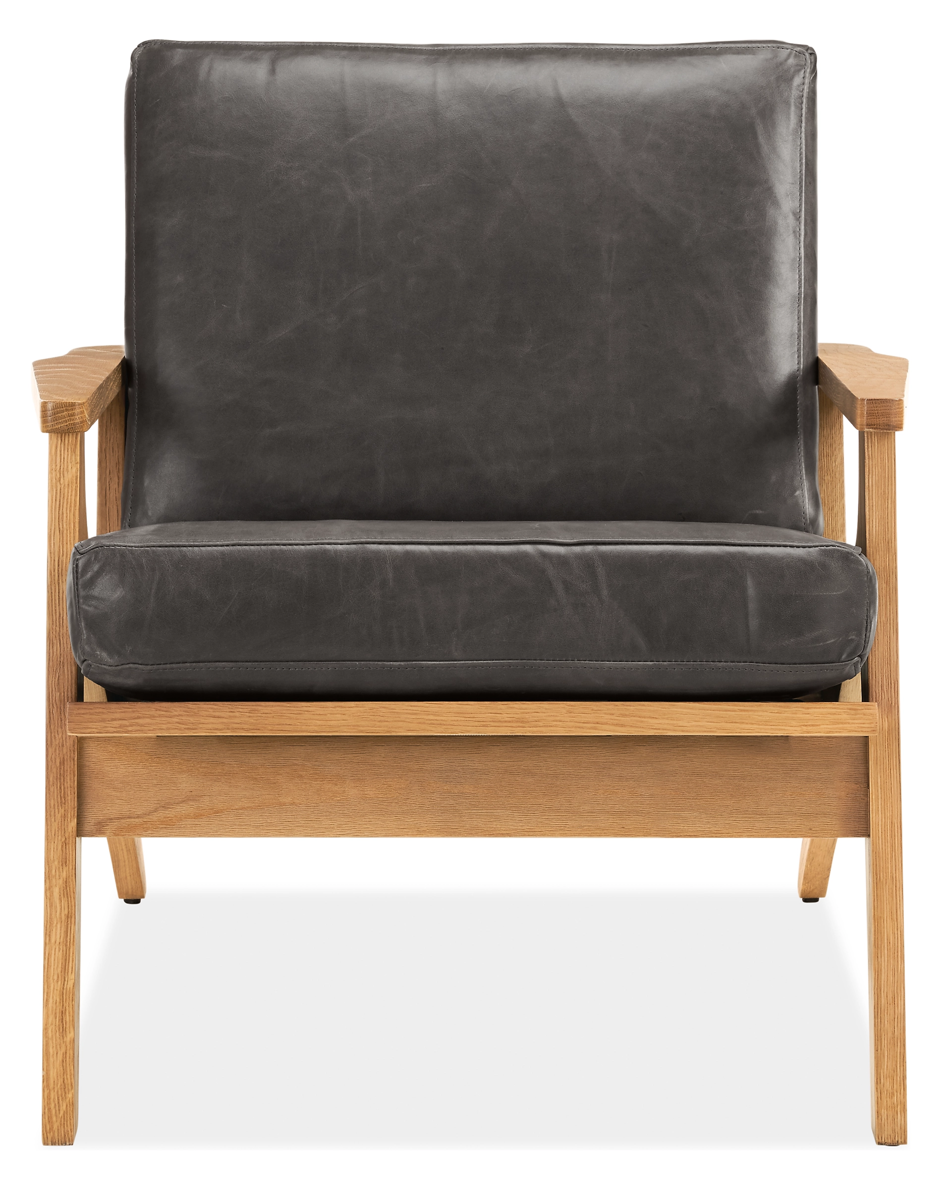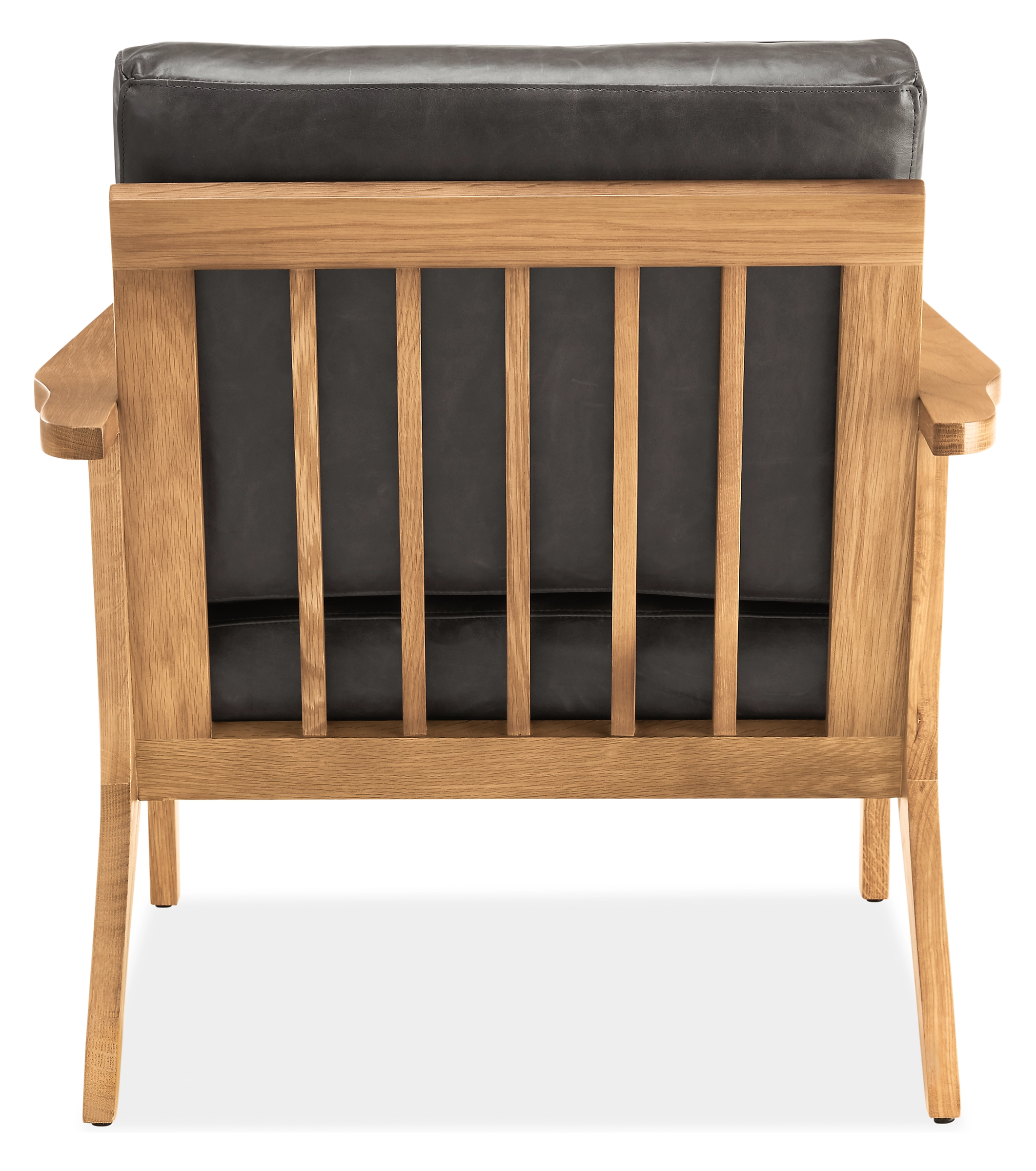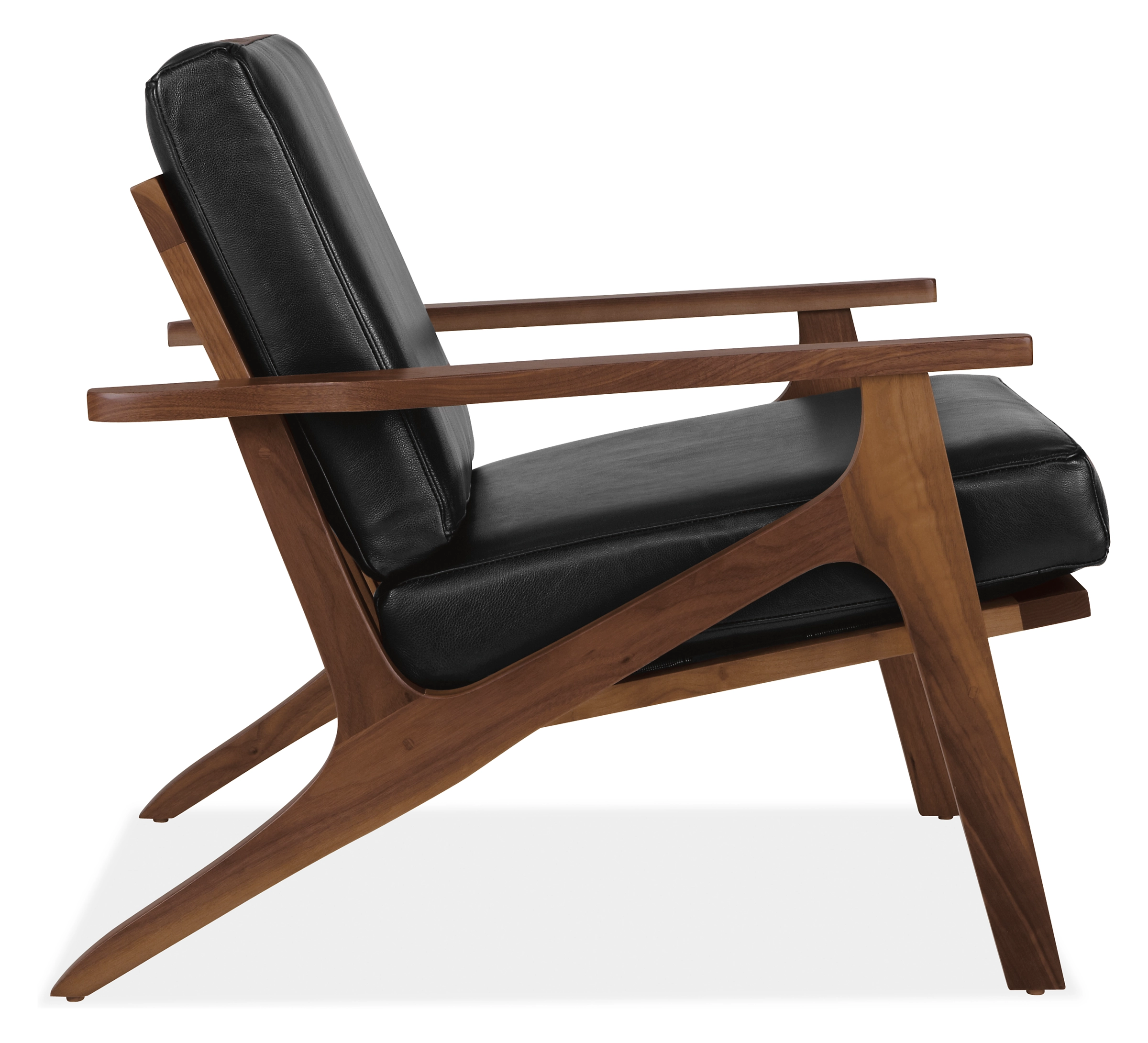 Featuring a solid wood frame with elegant angles and a loose back cushion, the Sanna leather chair evokes a mid-century feel. We updated the design to highlight a classic mix of materials.