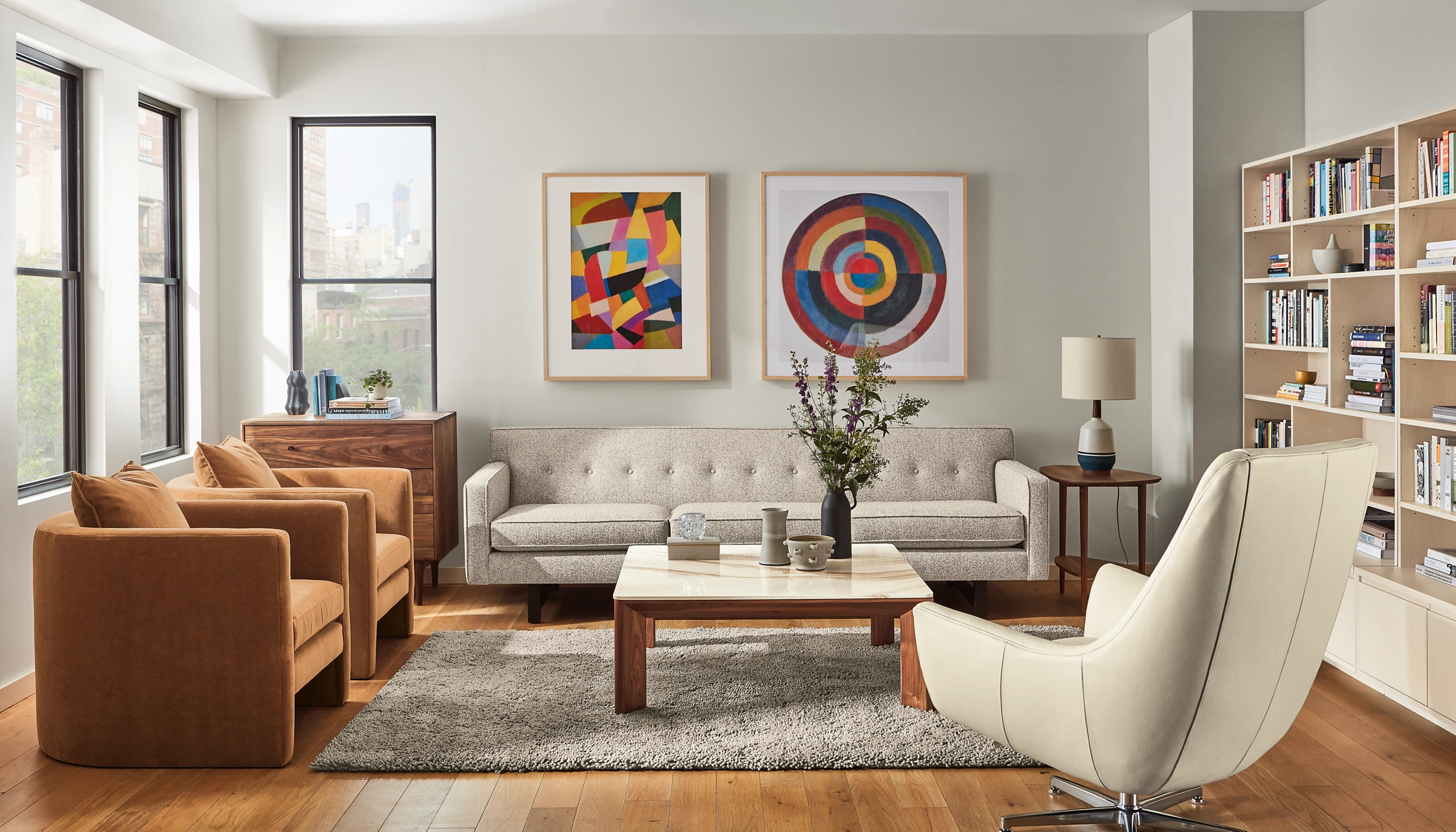- Cushion Characteristics: supportive comfort with a tailored appearance; will soften with use but designed to retain shape