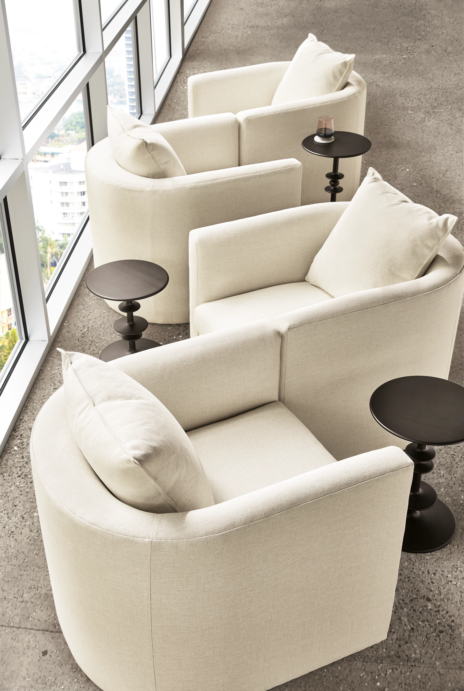 Ever cool and classic, Silva is a sleek modern chair for sophisticated spaces. The curved low back and stylish minimalist design dress up any space and invite you to sit back with a cool drink. Supportive seat cushioning and a soft, loose back cushion provide durable comfort.