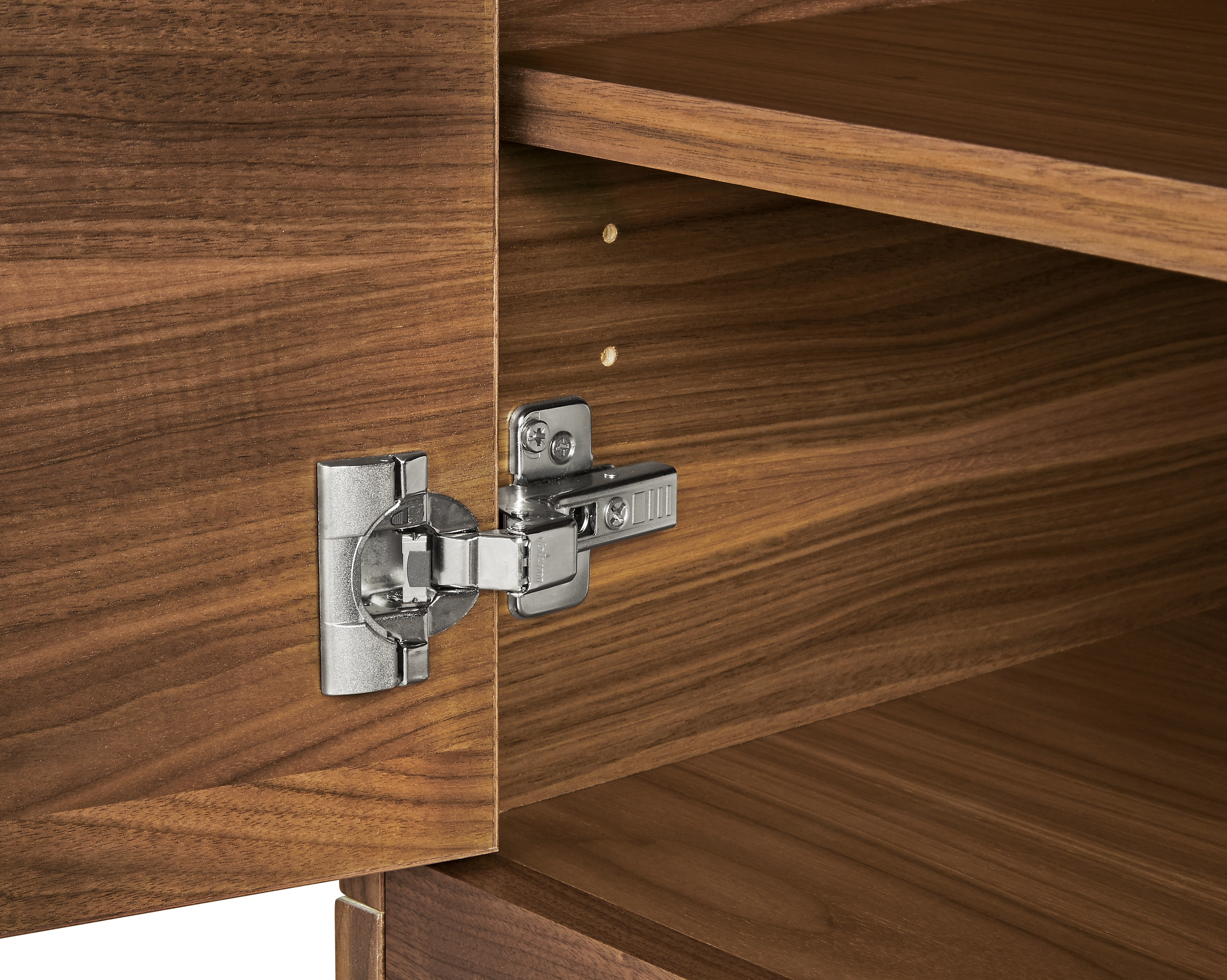 - Door Details: push-to-open; drop-down opens 90 degrees; door opens 110 degrees; fully adjustable hinges